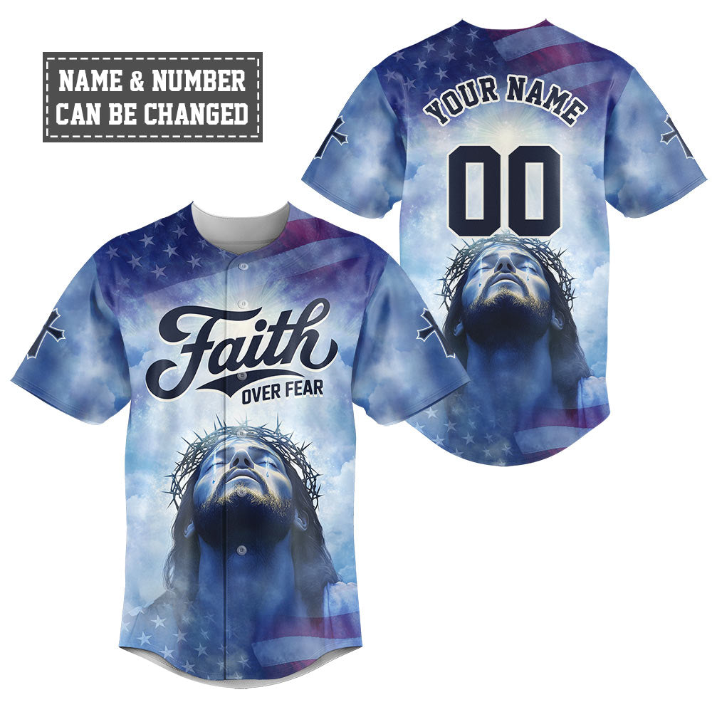 Jesus Faith Over Fear Baseball Jersey Declare your unwavering belief with the Jesus Faith Over...