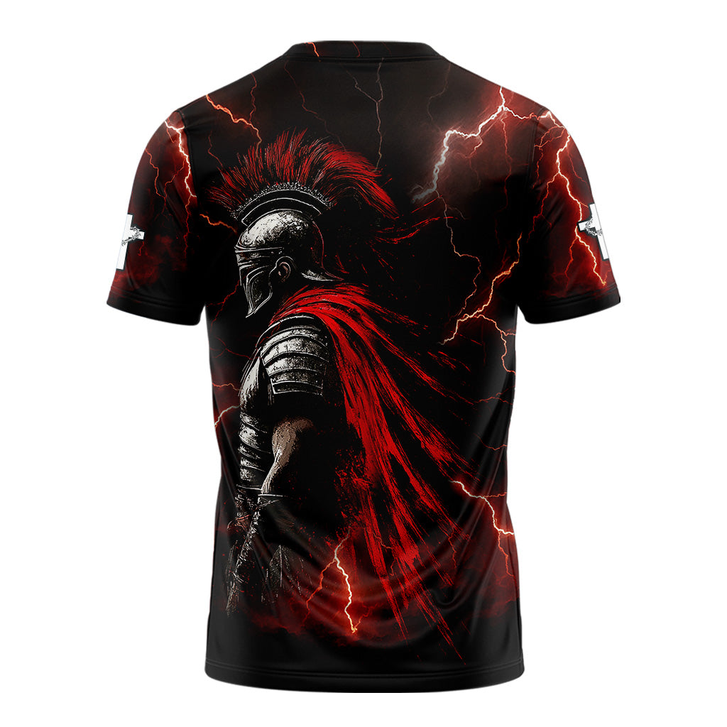 Declare your identity with power and purpose in the A Child of God, A Man of Faith, A Warrior of Christ T-shirt. Featuring a bold design of a Roman warrior in full armor, set against a background of red lightning, this shirt is a striking reminder of the strength and courage that comes from walking in faith.