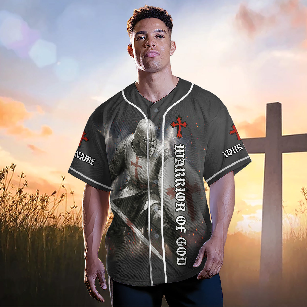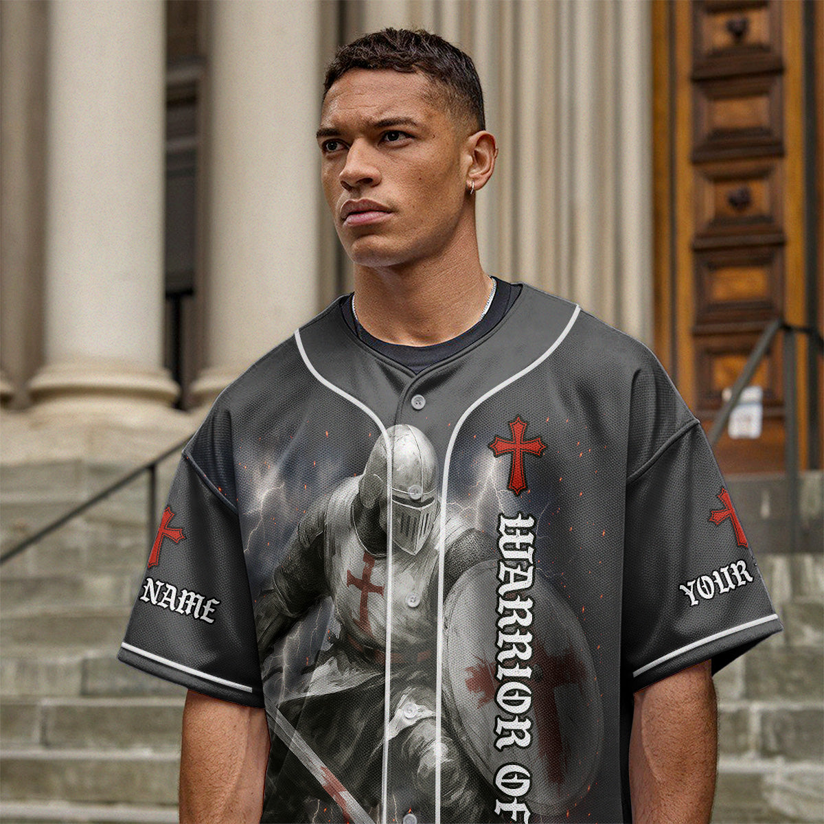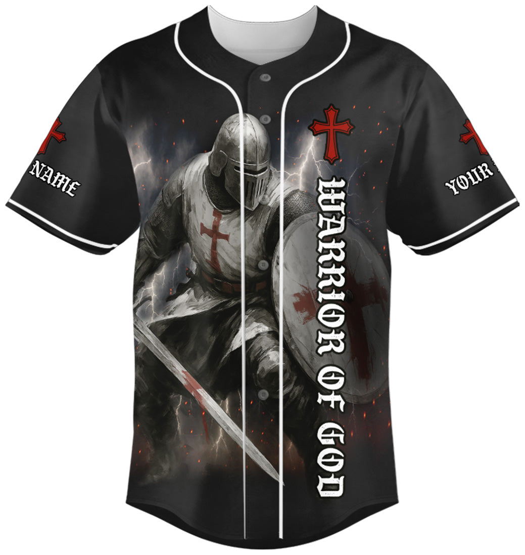 Stand strong in your faith with the “A Warrior Of Christ” Custom Baseball Jersey — a powerful design for the men of God who are ready to fight the good fight. Featuring bold artwork of a medieval Christian knight in armor with a sword and shield, this jersey represents spiritual strength, devotion, and unwavering faith.