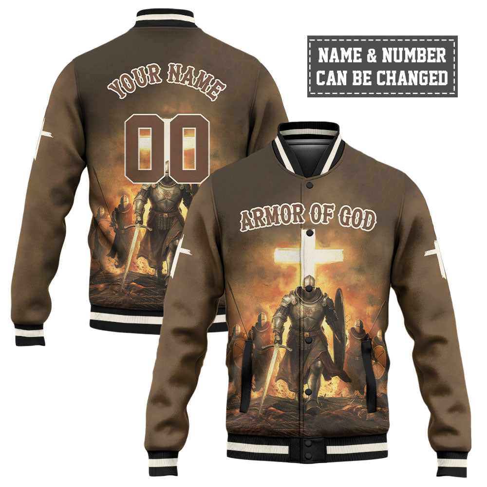 Armor of God Warrior Baseball Jacket - Custom Name & Number