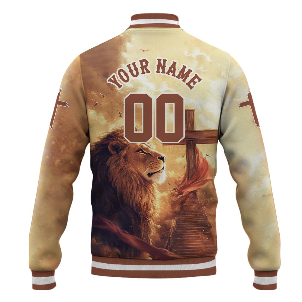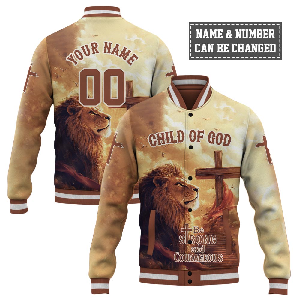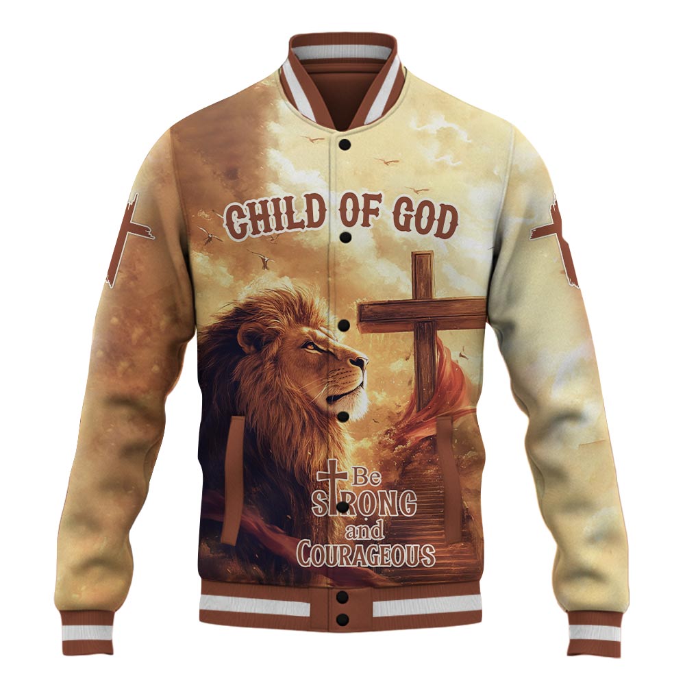 Walk boldly in faith with the Be Strong and Courageous Baseball Jacket, a powerful symbol of strength and devotion. Featuring a majestic lion standing beside the cross, this jacket represents courage, resilience, and unwavering trust in God's plan. The "Be Strong and Courageous" message serves as a reminder to stand firm in faith, no matter the challenge.