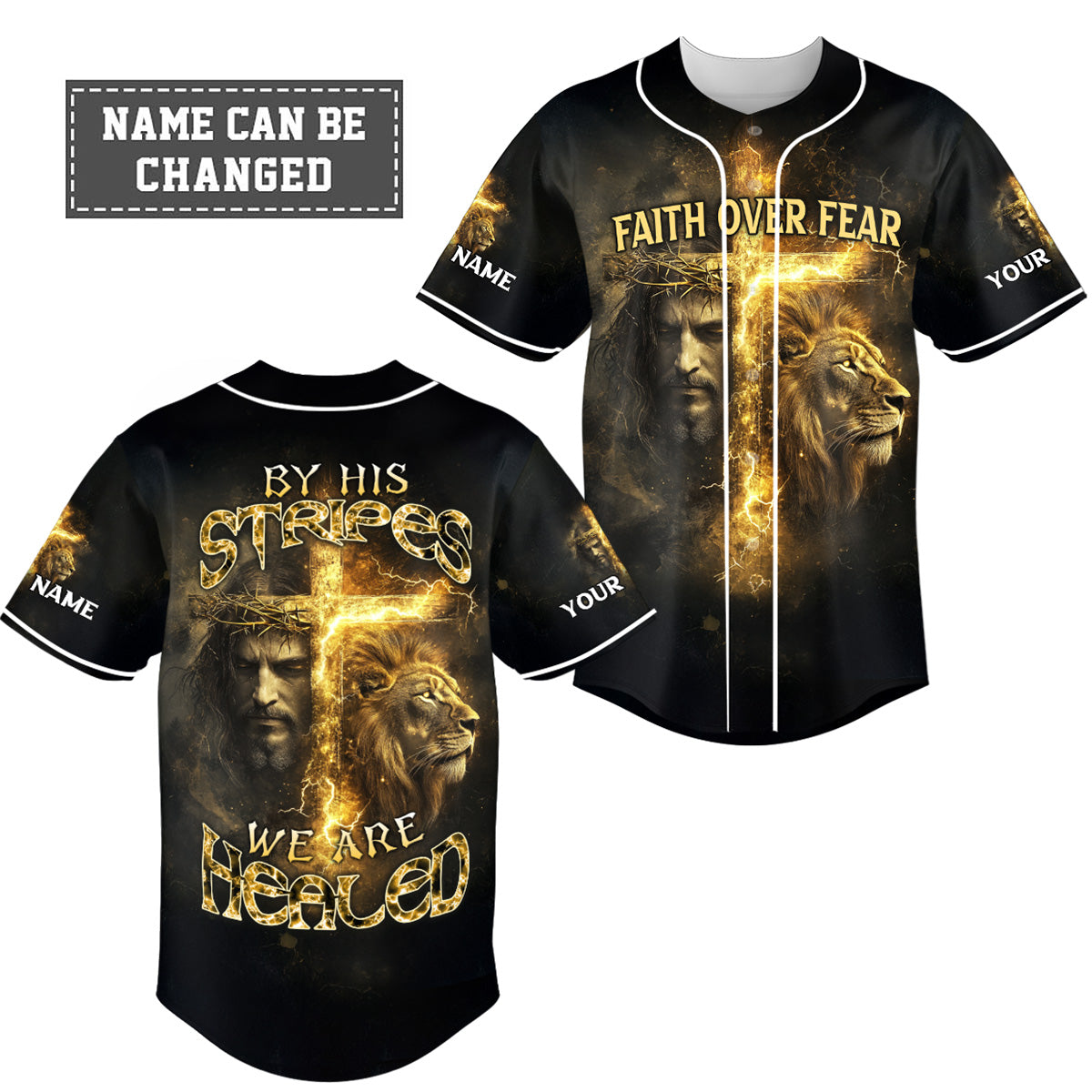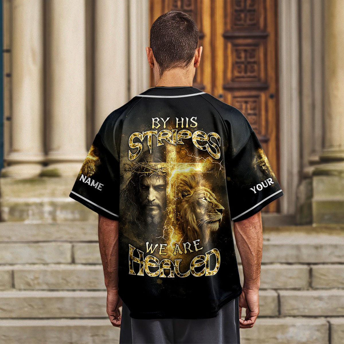 By His Stripes We Are Healed Lion Custom Name Baseball Jersey
