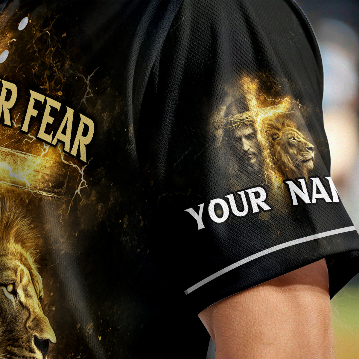 Both sleeves are customizable with your name, making it a personal testimony of your faith.