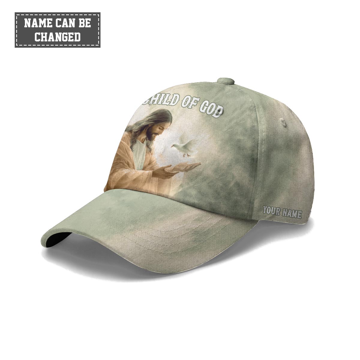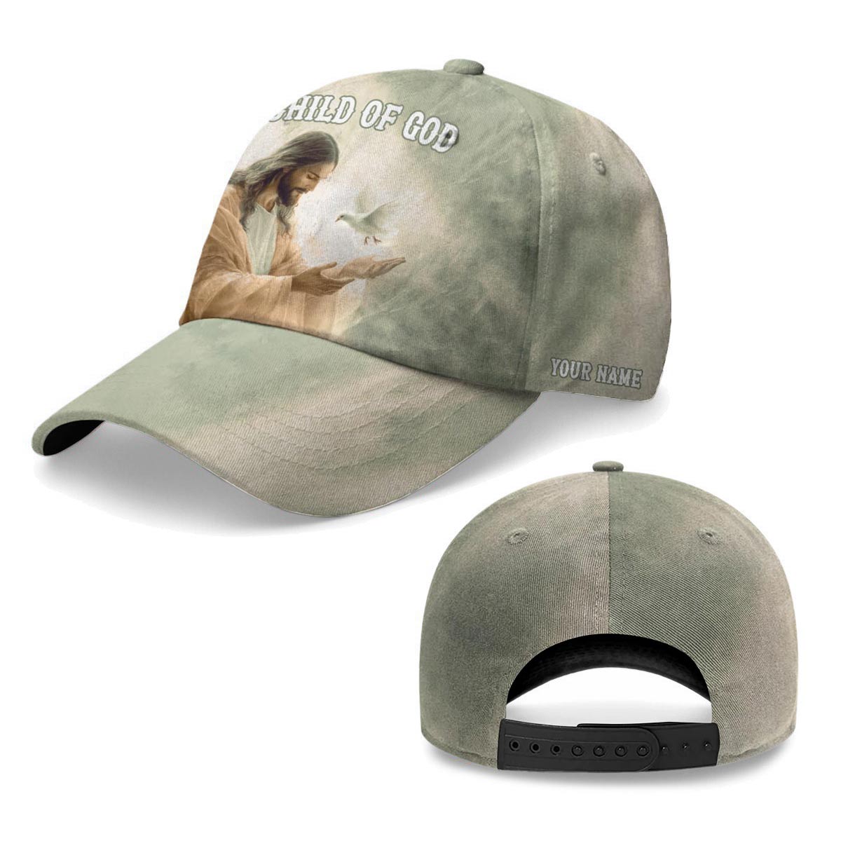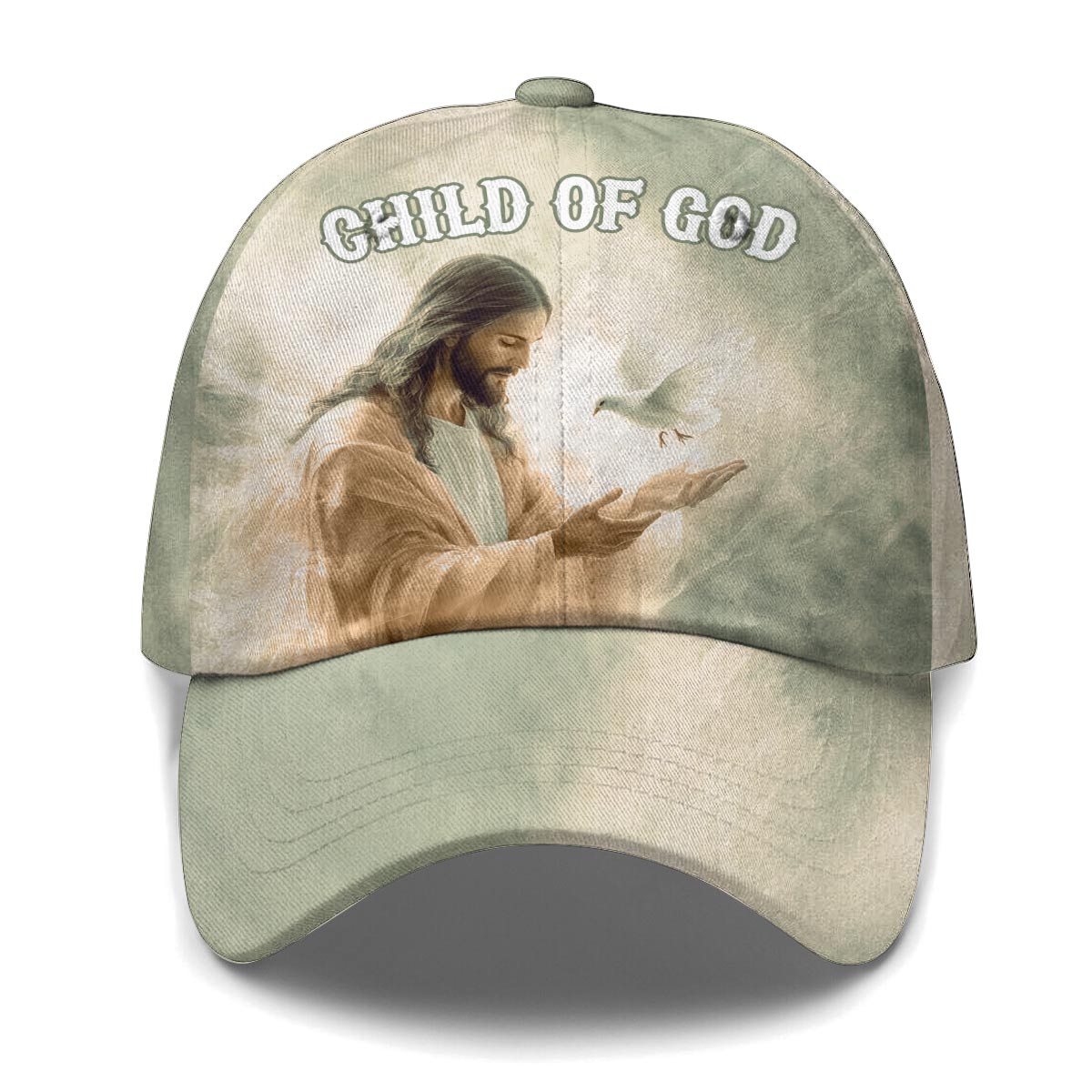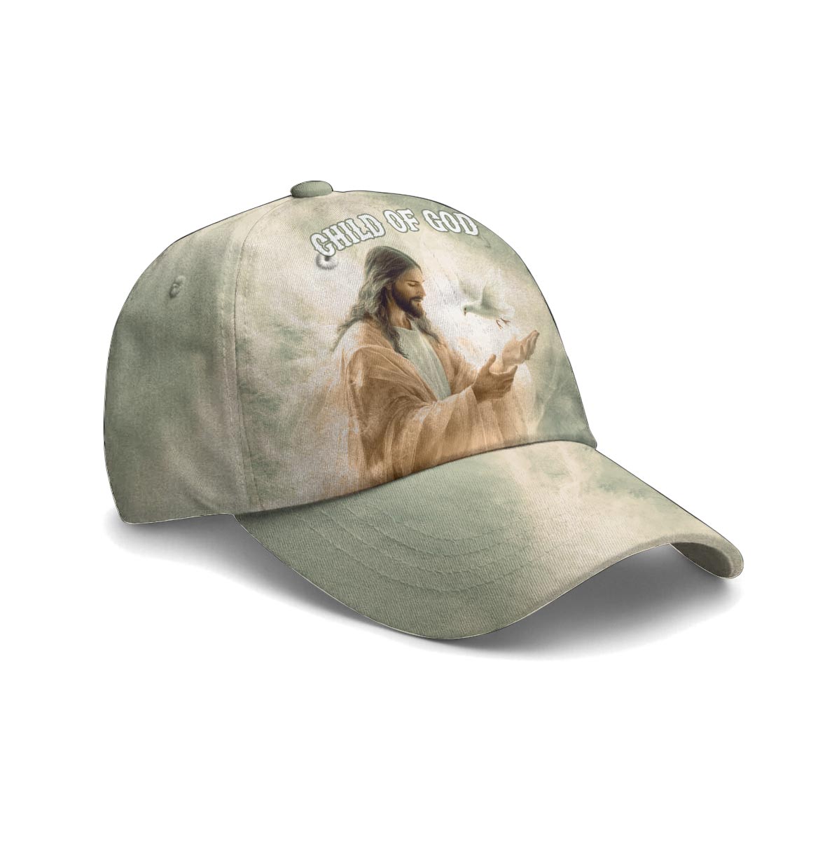 Carry your faith with grace and simplicity in the Child of God Baseball Cap — a soft, elegant reminder of who you are in Christ. Featuring a peaceful image of Jesus gently releasing a white dove, this cap radiates hope, purity, and divine love. The calm green tones and the words “Child of God” make it a beautiful daily expression of faith.