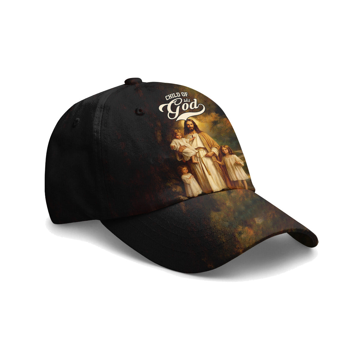 Celebrate your faith with the Child of God – Divine Embrace Baseball Cap. Featuring a heartwarming image of Jesus surrounded by children, this design beautifully represents His unconditional love and protection. The warm, artistic background enhances the sacred imagery, making it a meaningful accessory for believers.