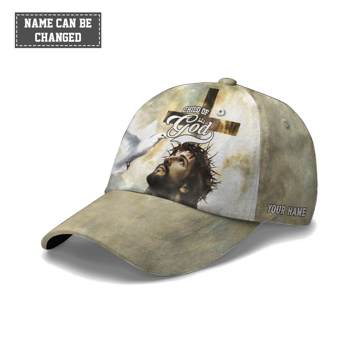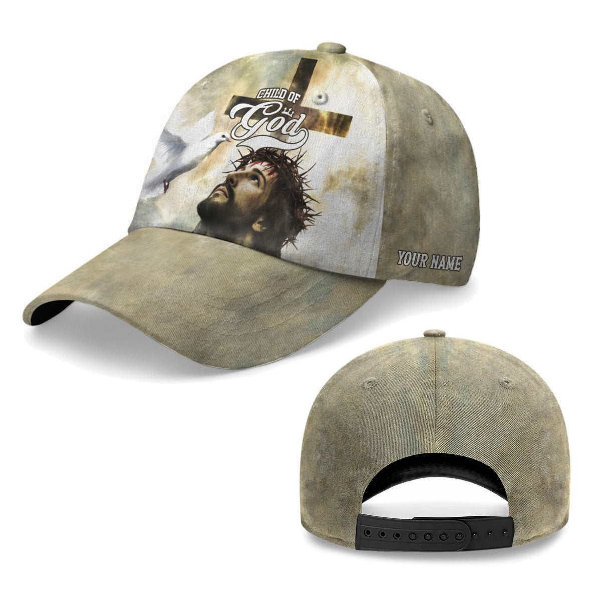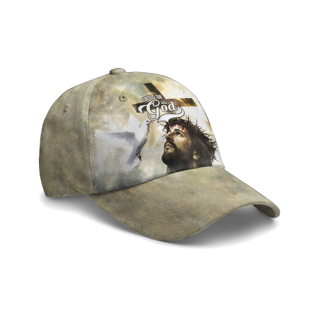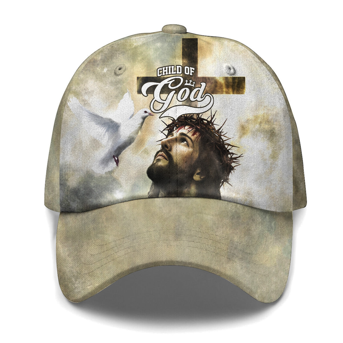 Embrace the grace of faith with the Child of God – Divine Grace Jesus Baseball Cap. This powerful design features Jesus wearing a crown of thorns, looking toward the heavens, with a cross and a dove symbolizing peace, sacrifice, and divine love. The earthy tones create a humble yet striking look, perfect for those devoted to their faith.