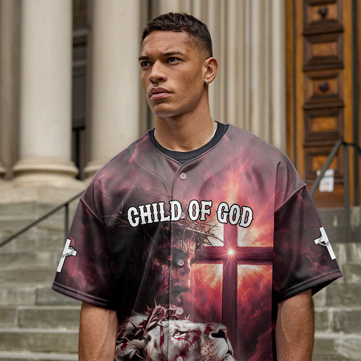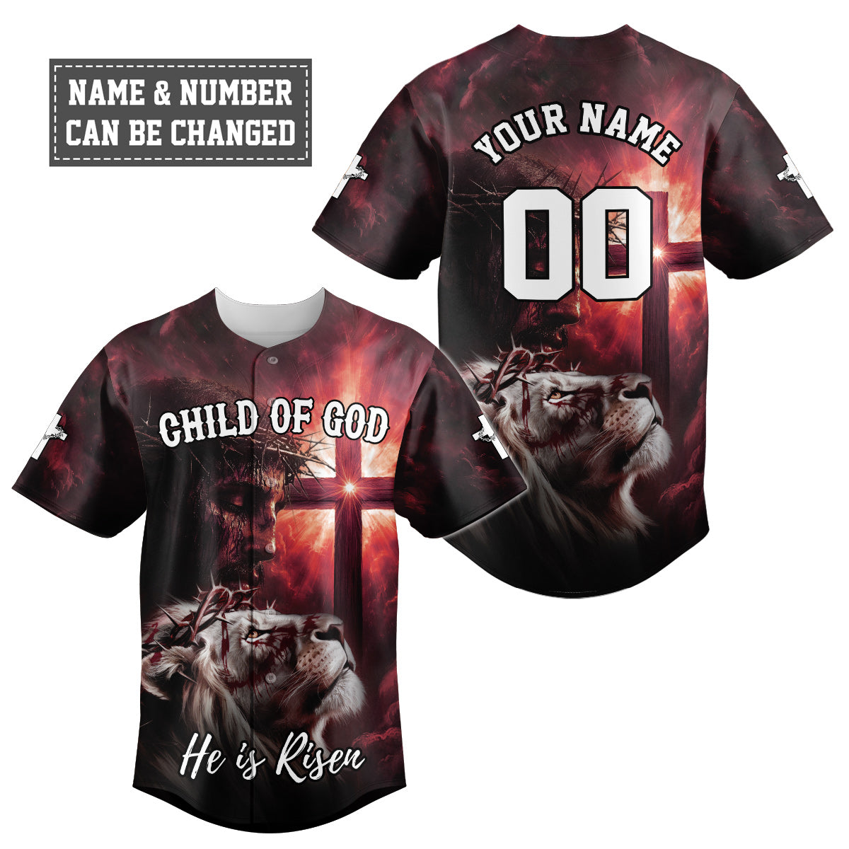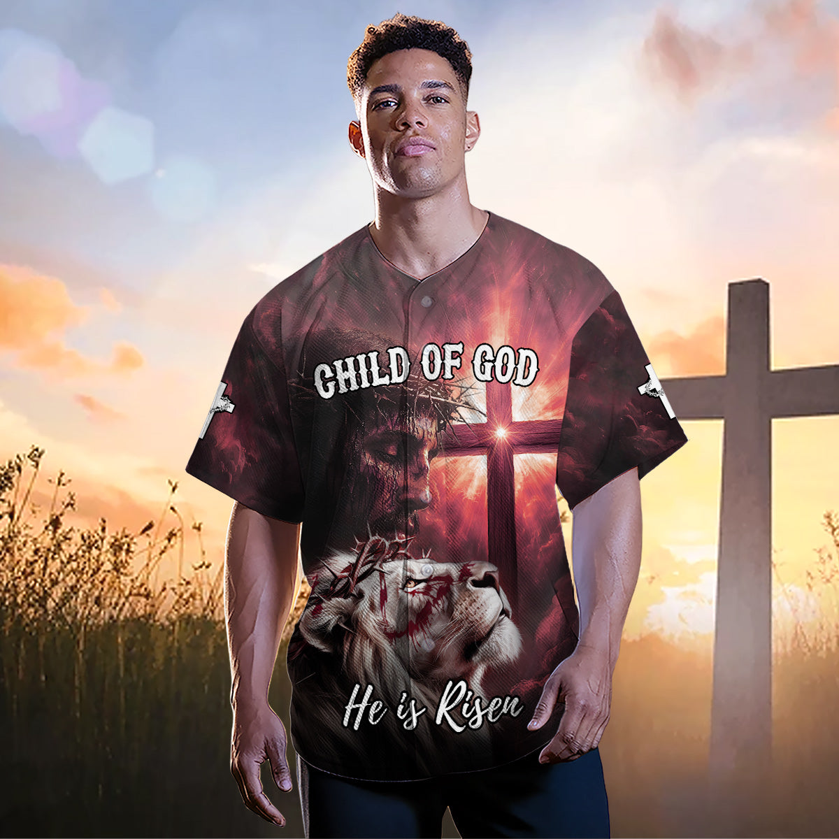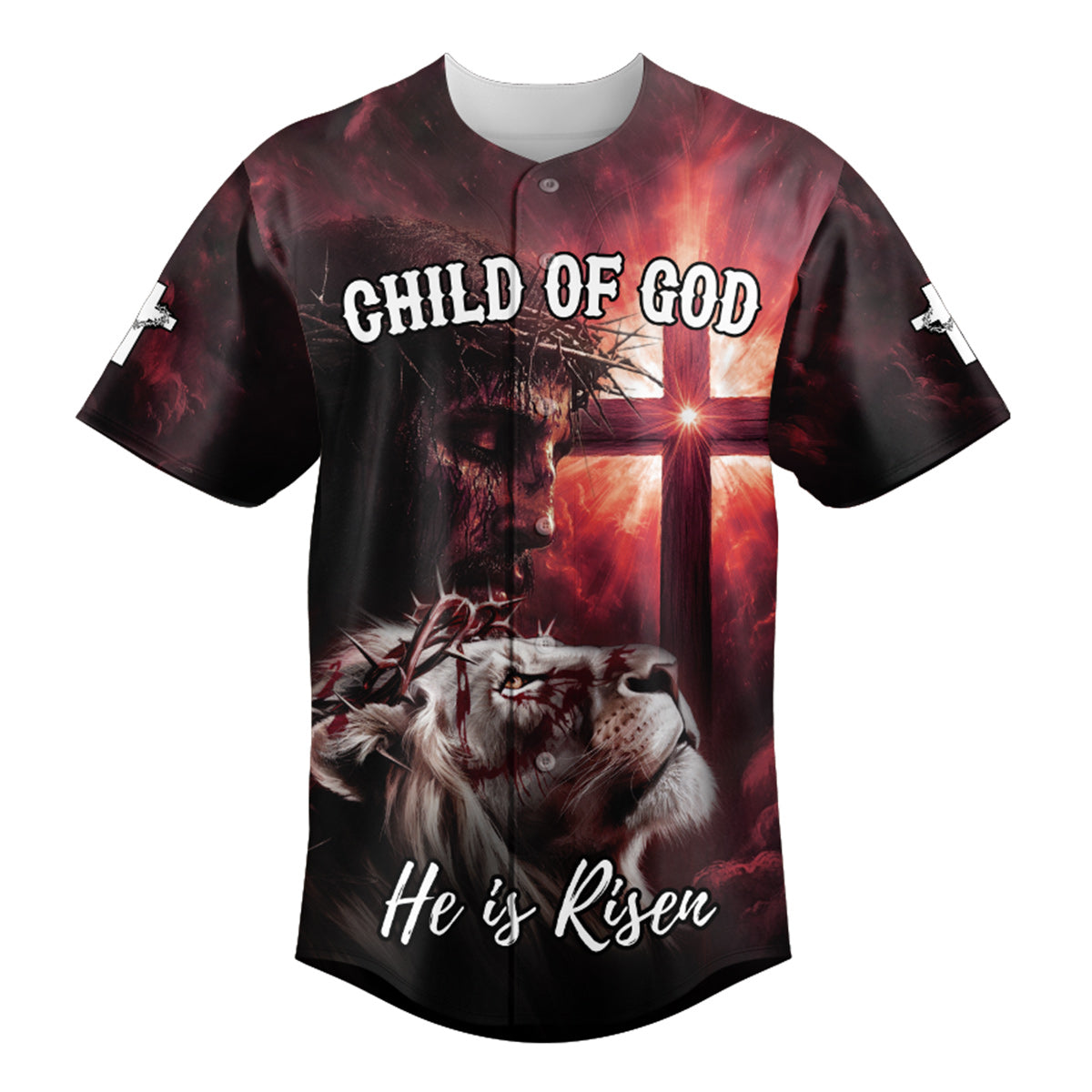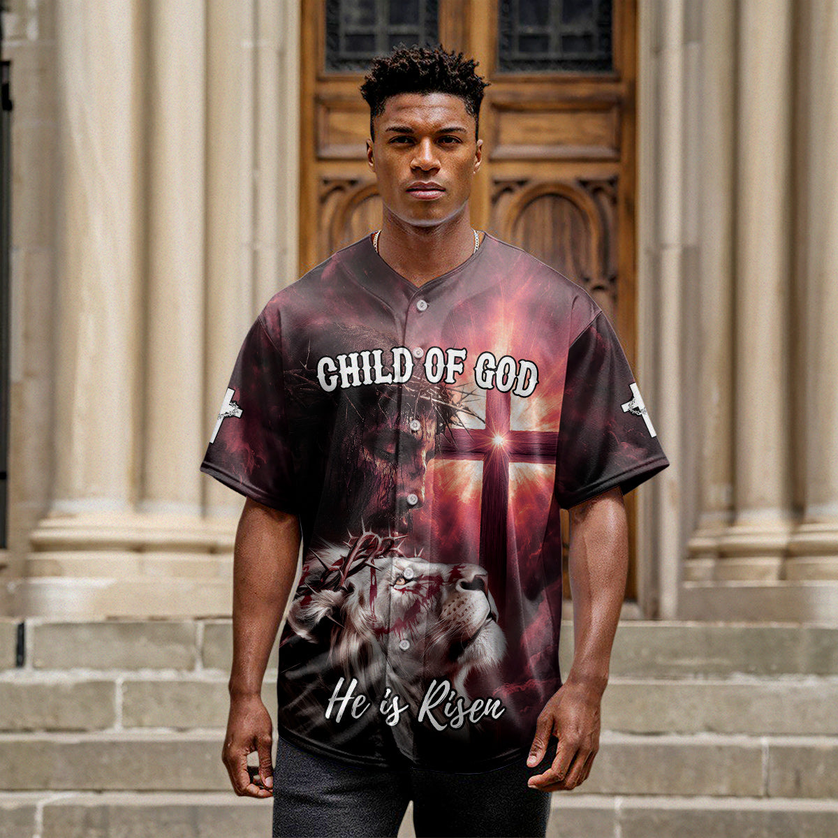 Stand tall in your identity with the Child Of God Risen Warrior Baseball Jersey. Featuring a powerful design that blends the image of Jesus crowned with thorns, a glowing cross, and the fierce face of a lion, this jersey represents the resurrection, strength, and unshakable identity we have in Christ. The phrase “He is Risen” and “Child of God” boldly declare who you are — redeemed, risen, and ready to live with purpose.