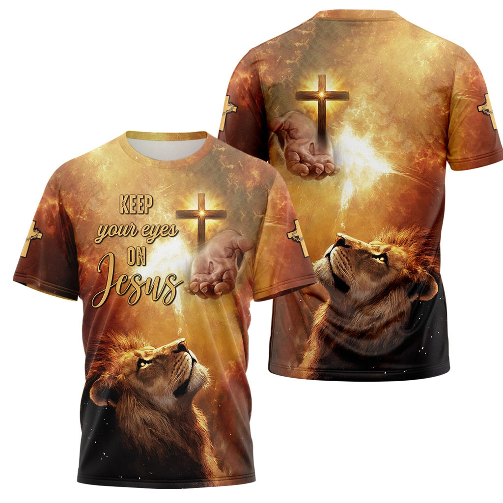 Wear your faith with confidence and remind yourself daily to stay focused on Jesus. This Christian-themed t-shirt also makes a perfect gift for believers who cherish their spiritual journey. ✝️🦁