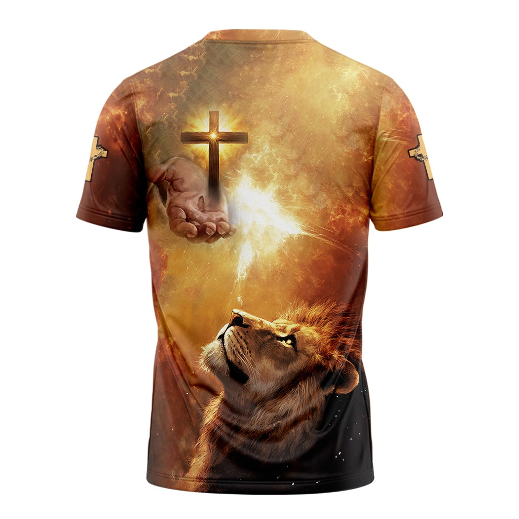 Stay inspired and rooted in faith with the Child Of God T-Shirt. This powerful design features a majestic lion gazing toward a glowing cross, symbolizing unwavering devotion and strength in Jesus. The divine hand reaching out from the heavens reinforces the message of God's guidance and love.
