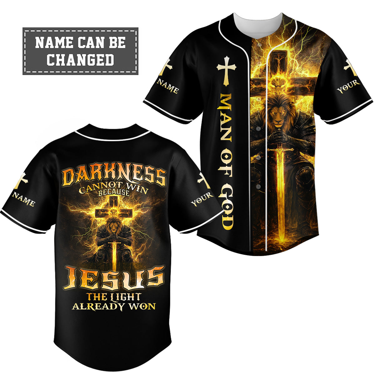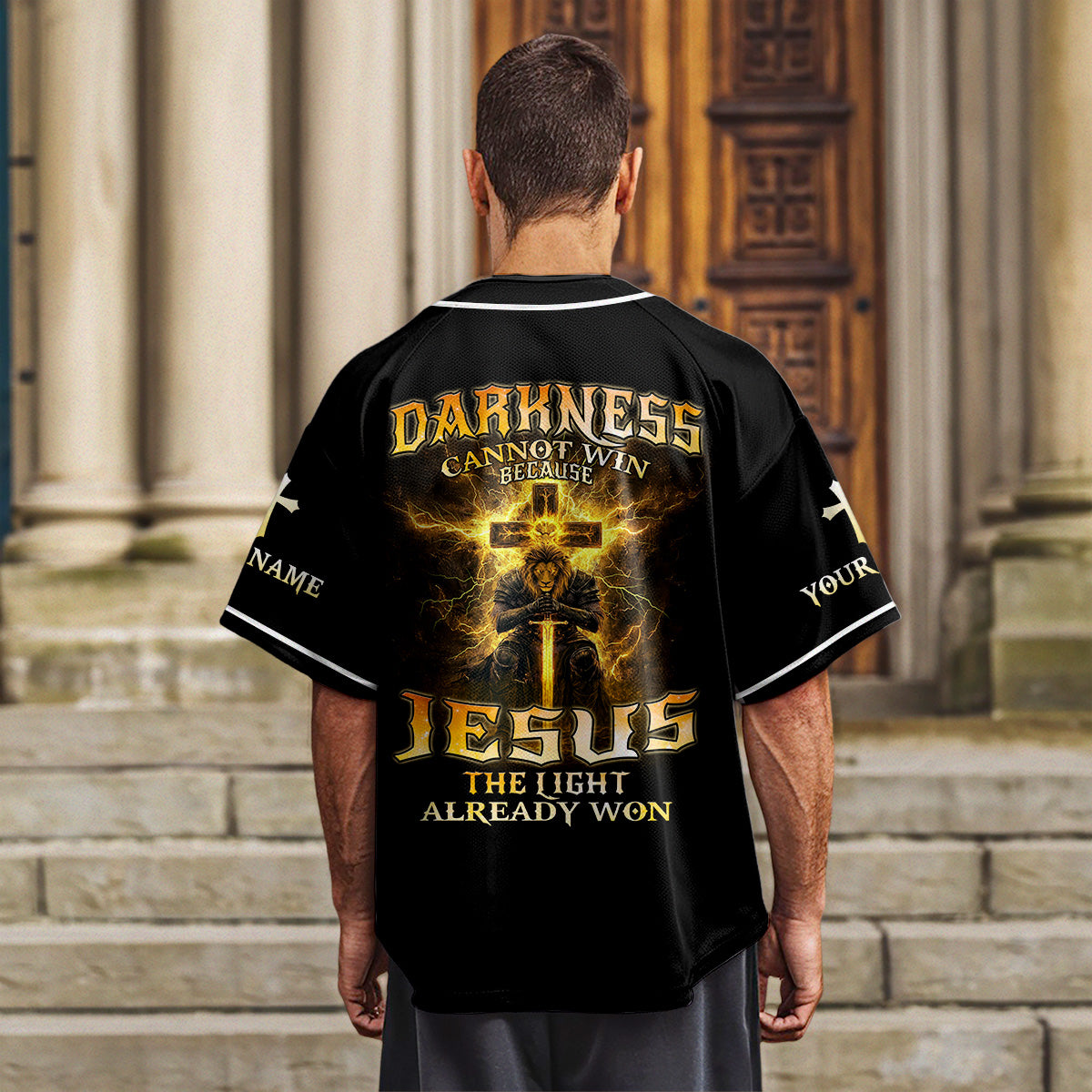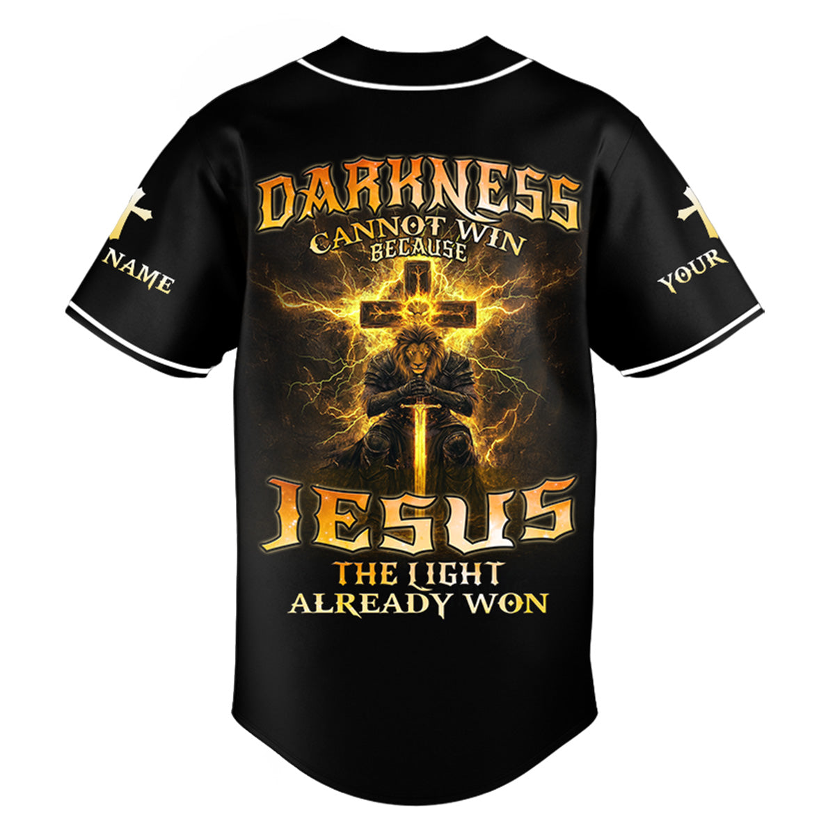 Step into spiritual battle with the “Darkness Cannot Win” Custom Baseball Jersey — a powerful expression of faith for men who walk boldly with Christ and fear no evil.