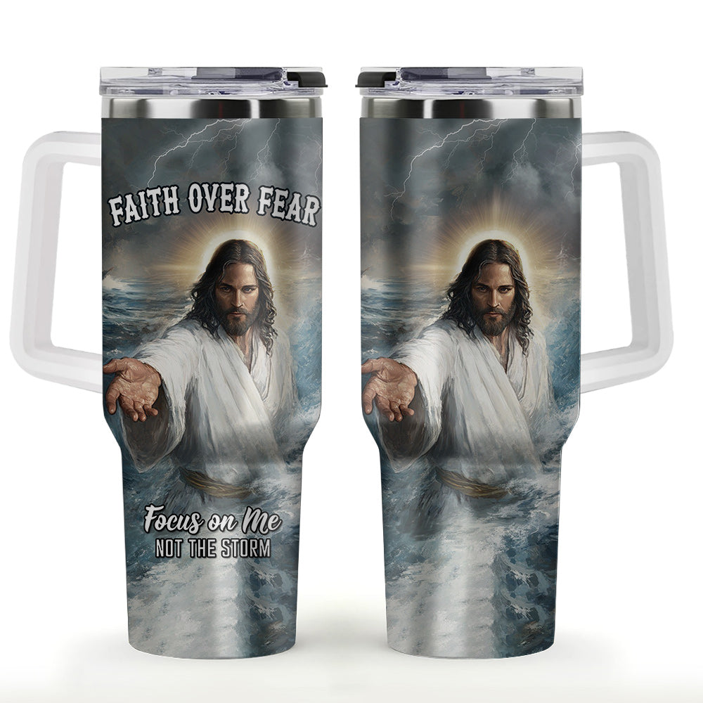 The statement "Focus on Me, Not the Storm" is a call to keep your eyes on Jesus, no matter the obstacles you face. Made from high-quality stainless steel, this tumbler is perfect for keeping your drinks hot or cold for hours, ensuring you stay refreshed while staying inspired.