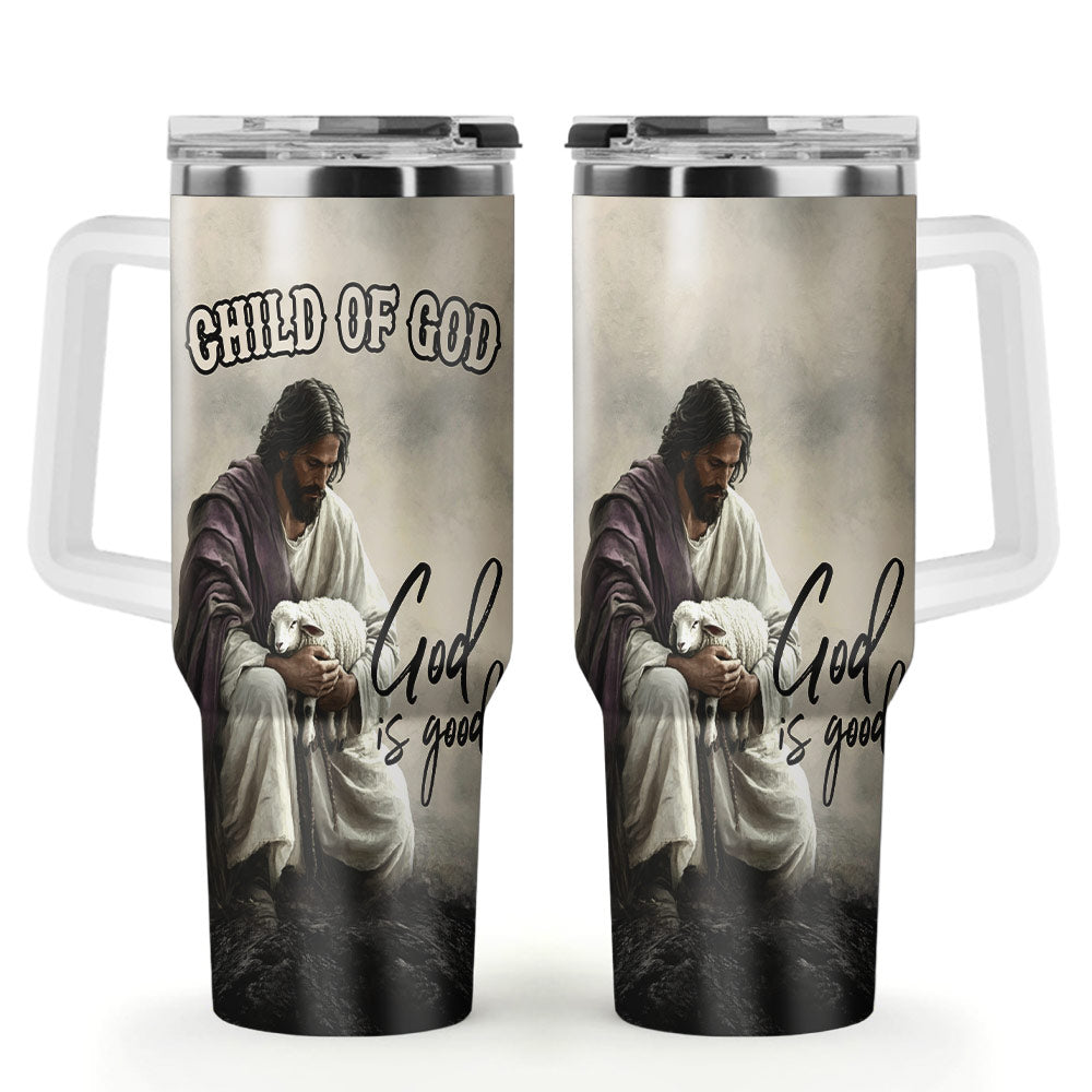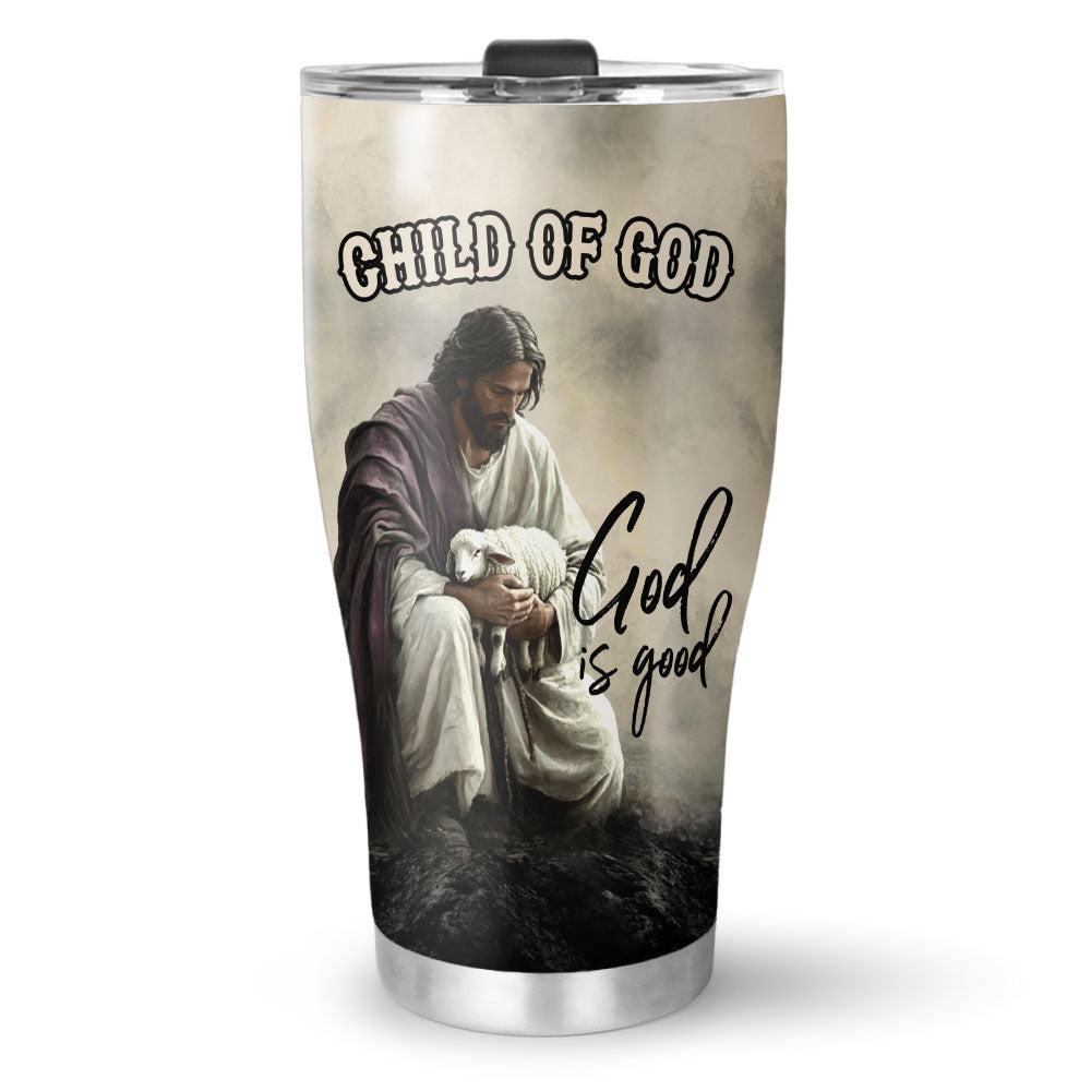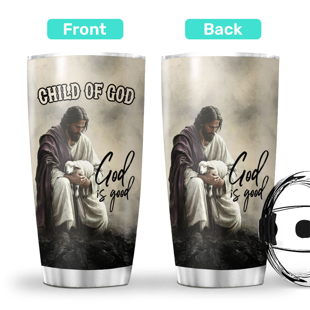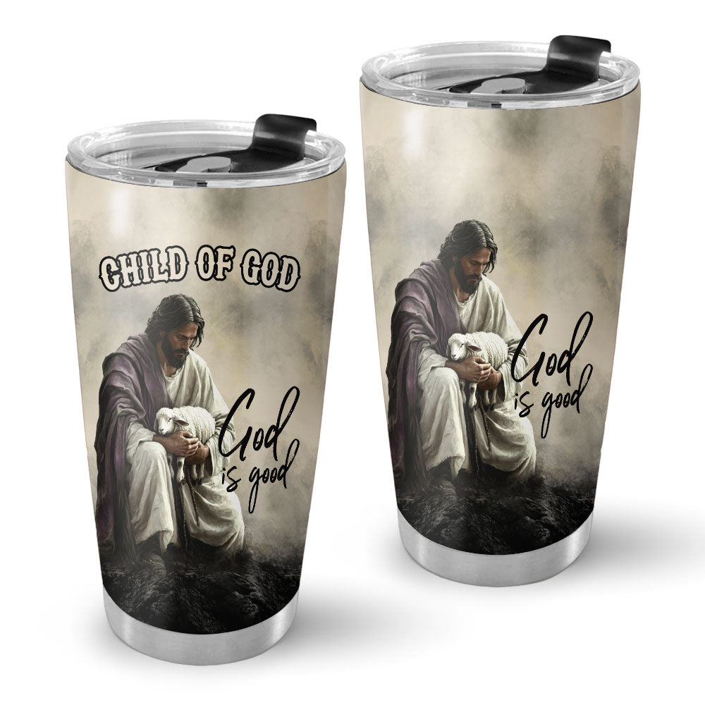 Embrace the warmth of faith with the Child of God Tumbler, featuring a heartfelt image of Jesus cradling a lamb, symbolizing God’s love, protection, and grace. The powerful message "God is Good" serves as a daily reminder of His never-ending goodness and care.