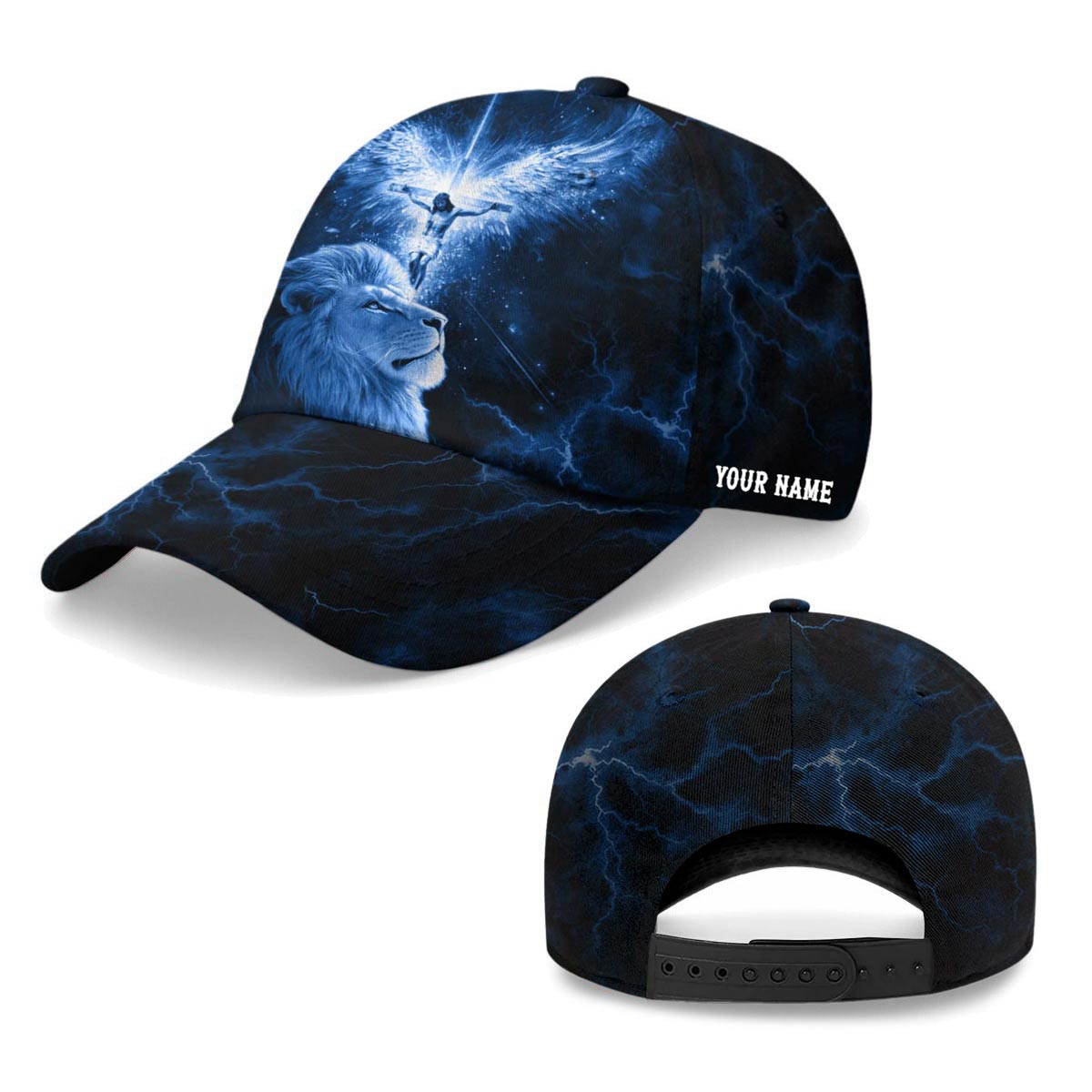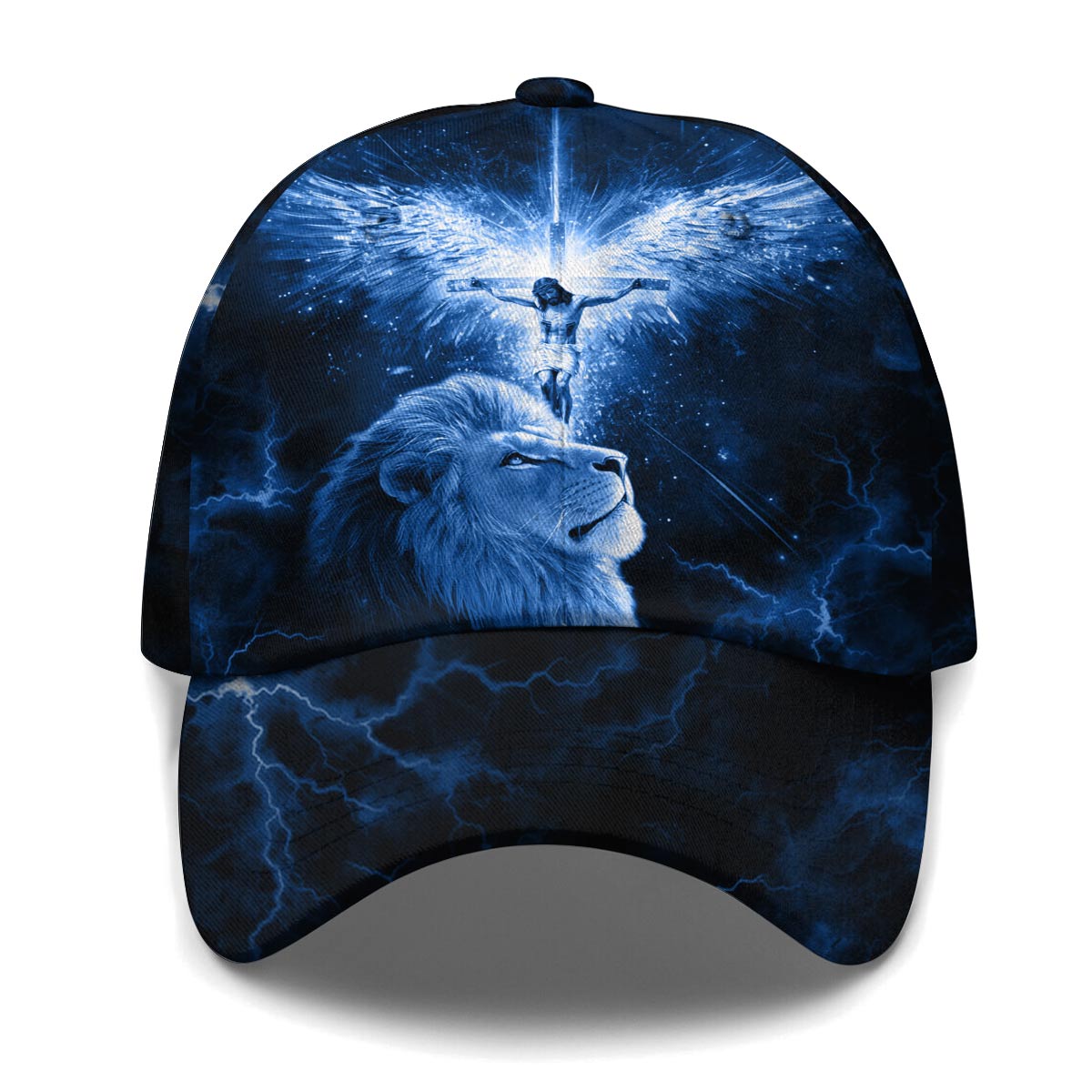 Stand firm in your faith with this bold and meaningful “Man of God” Baseball Cap. Designed with powerful imagery of Jesus on the cross, a roaring lion, and a lightning-charged sky — this cap is more than an accessory; it's a testimony.