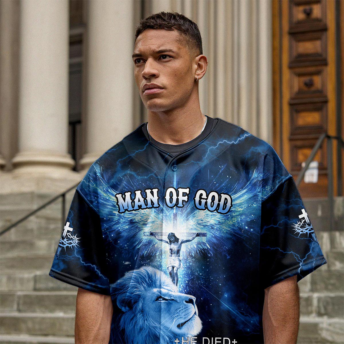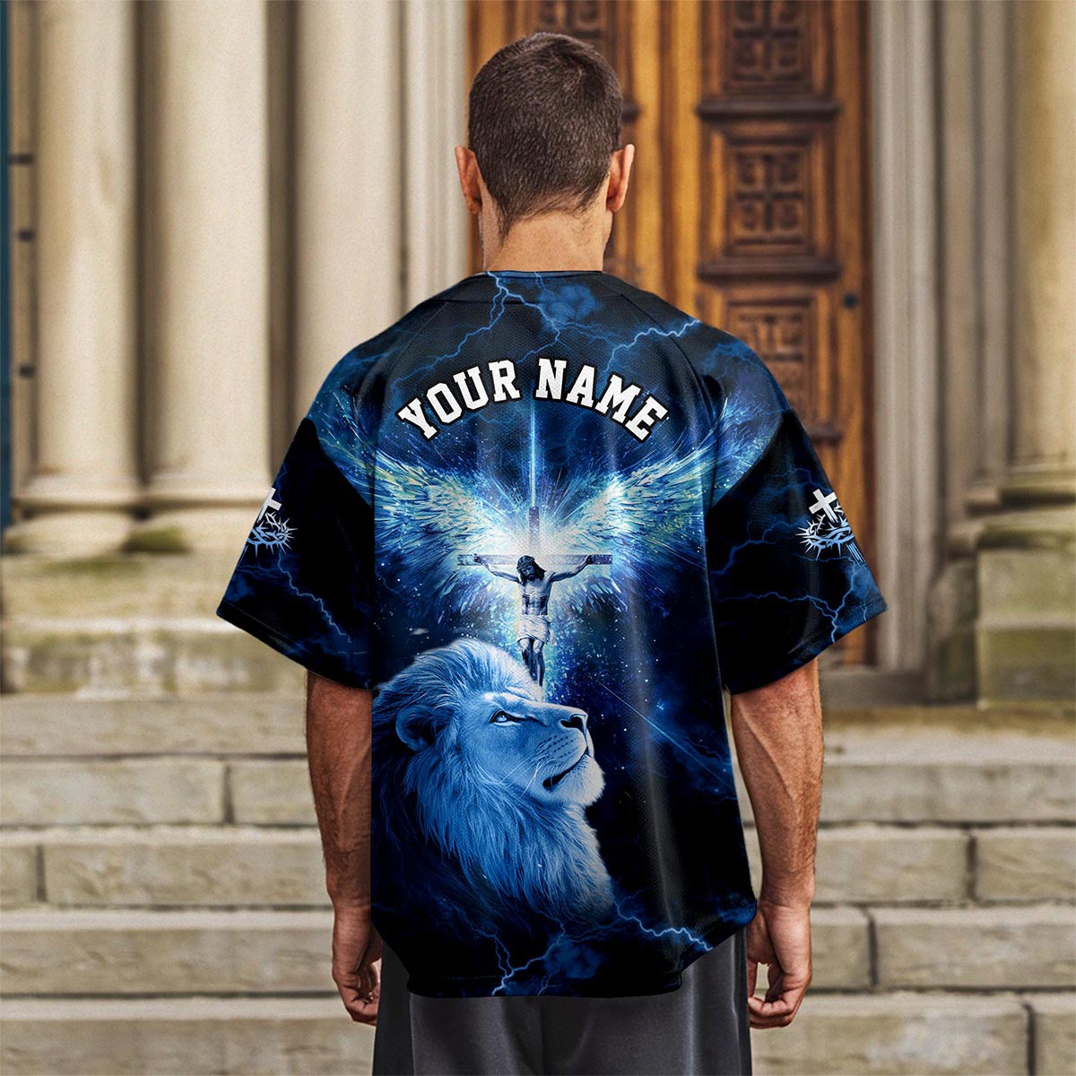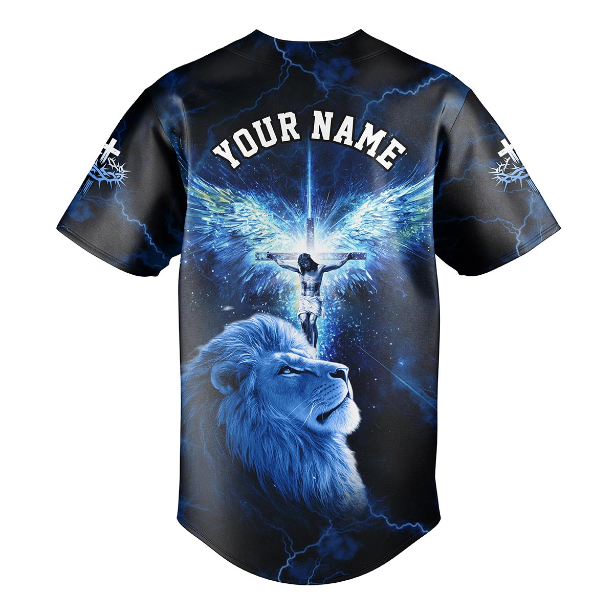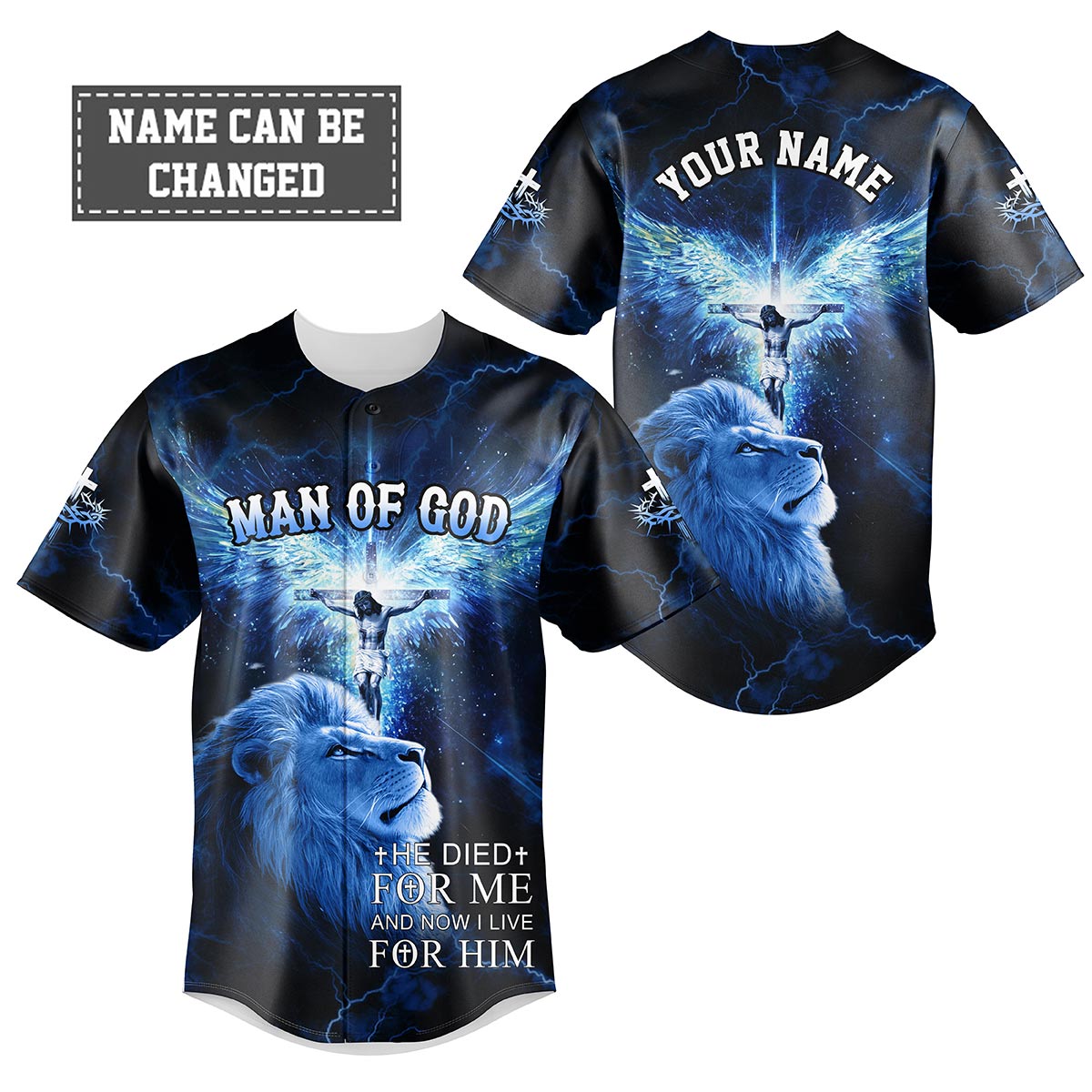 Honor your faith with the He Died For Me And Now I Live For Him Baseball Jersey. Featuring a breathtaking design of Jesus on the cross, illuminated by divine light, and a majestic lion symbolizing strength and courage, this jersey is a powerful declaration of devotion. With a stunning deep blue color scheme and lightning effects, this jersey stands out as a bold statement of unwavering belief.