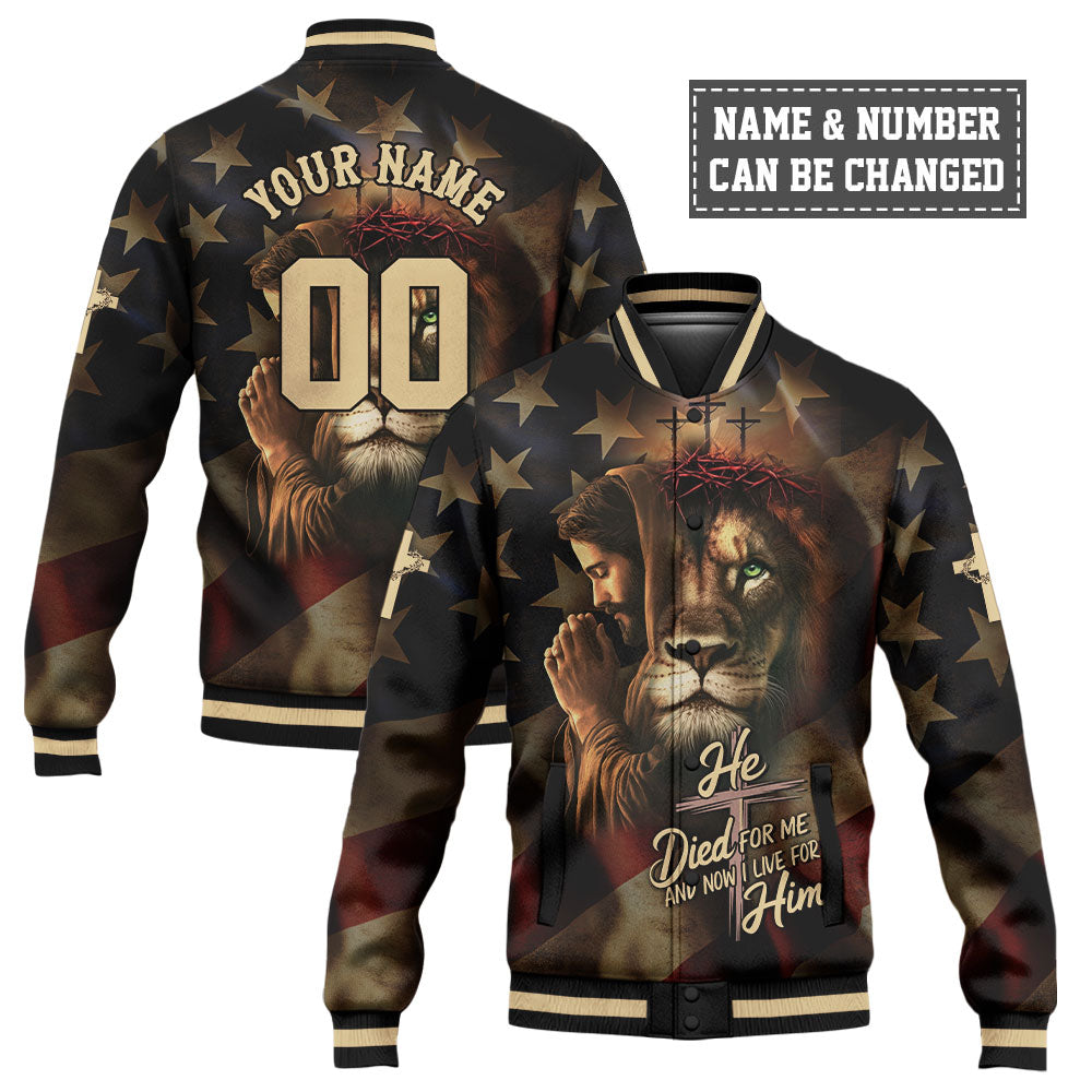 He Died For Me And Now I Live For Him Baseball Jacket - Custom Name & Number
