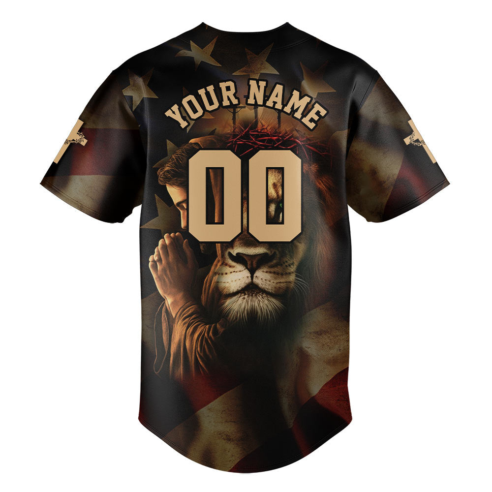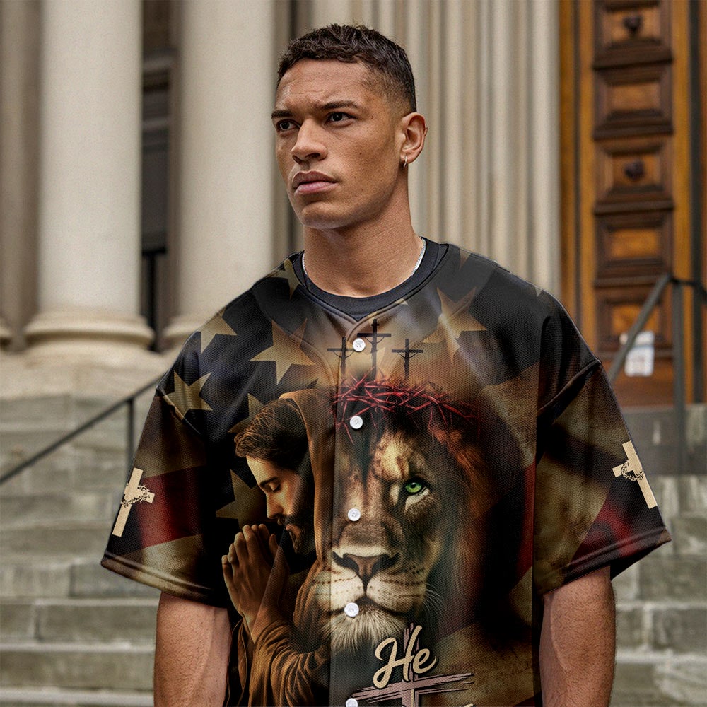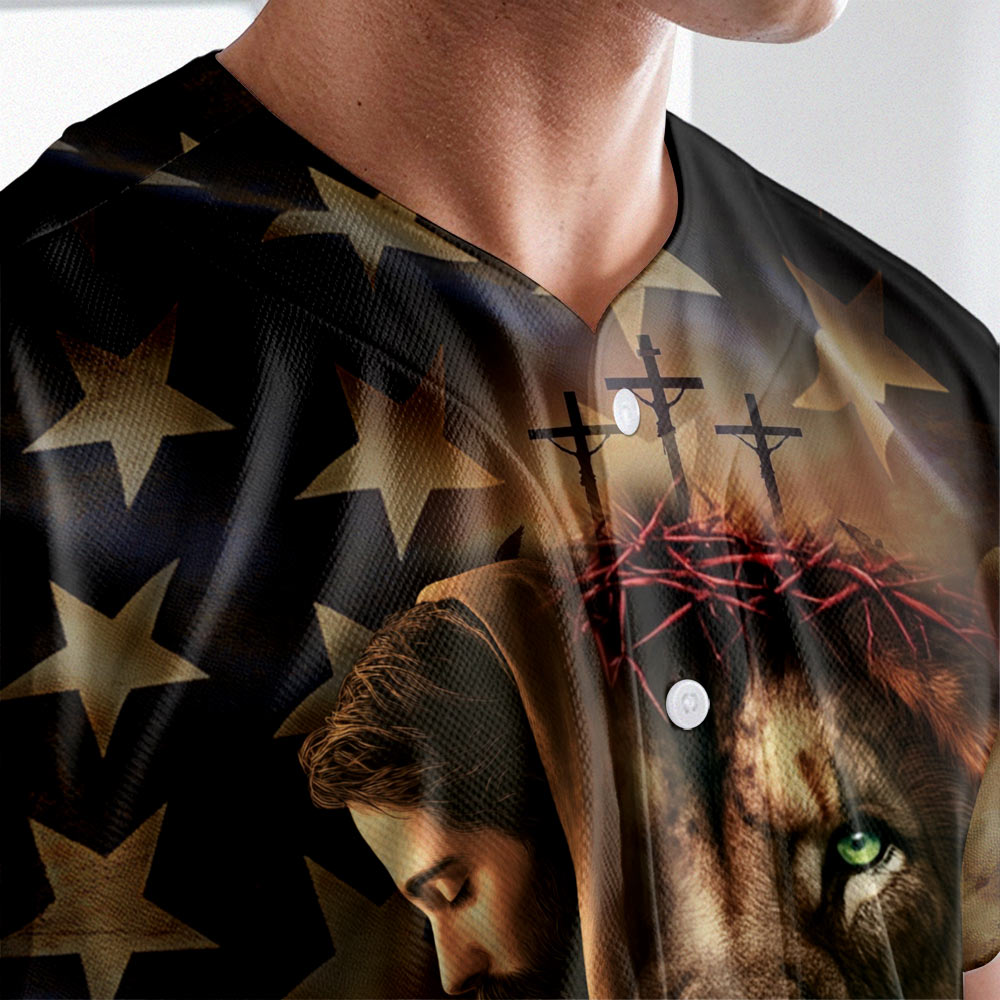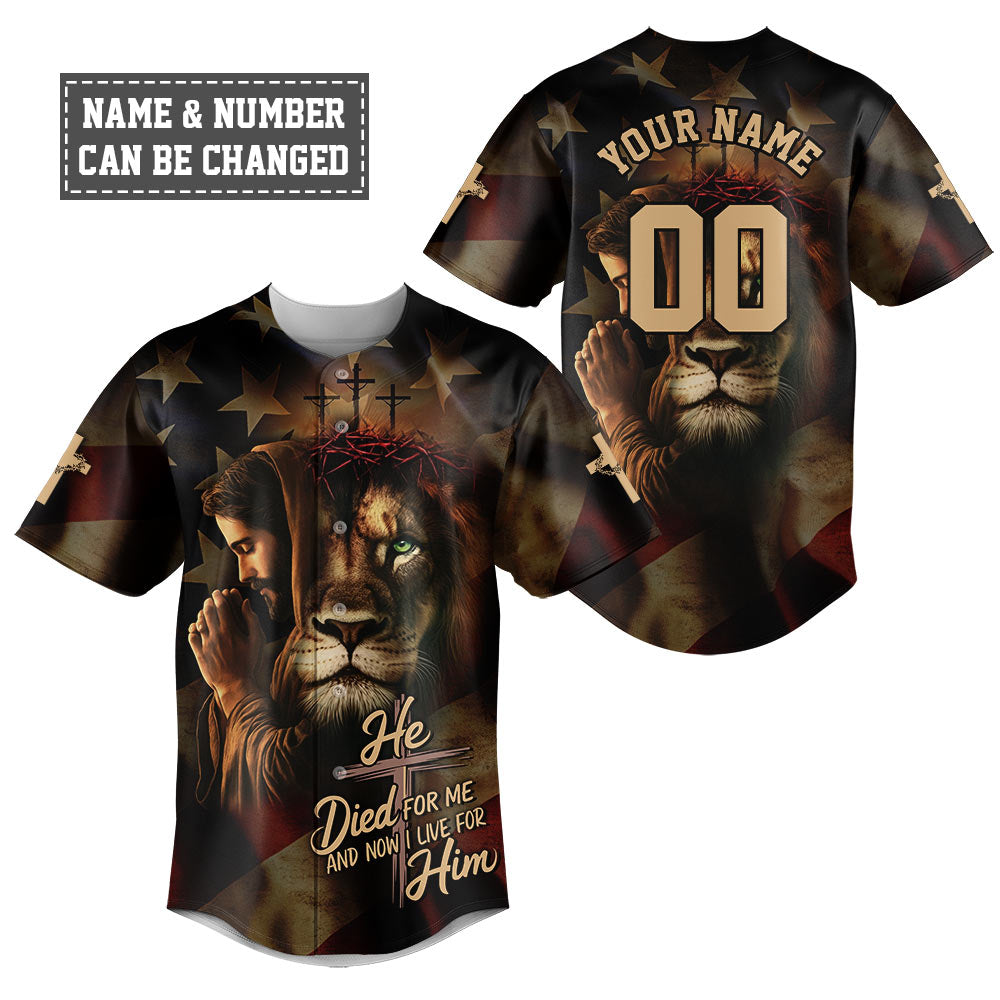 Show your unwavering faith with the He Died For Me And Now I Live For Him Baseball Jersey. This powerful design features a poignant image of Jesus with a crown of thorns, alongside a majestic lion, representing the sacrifice He made for us. Set against the backdrop of a distressed American flag, the jersey boldly displays the message, "He Died For Me And Now I Live For Him," a tribute to the life-changing power of Christ's love.