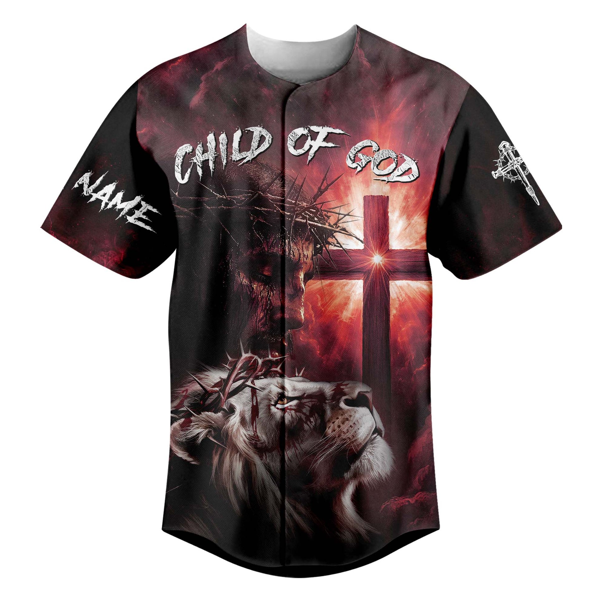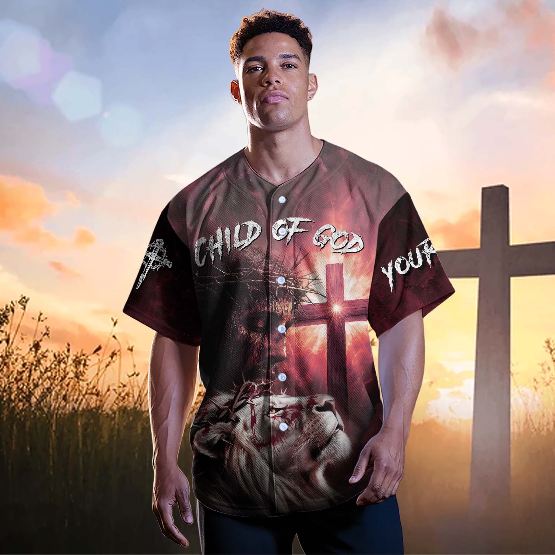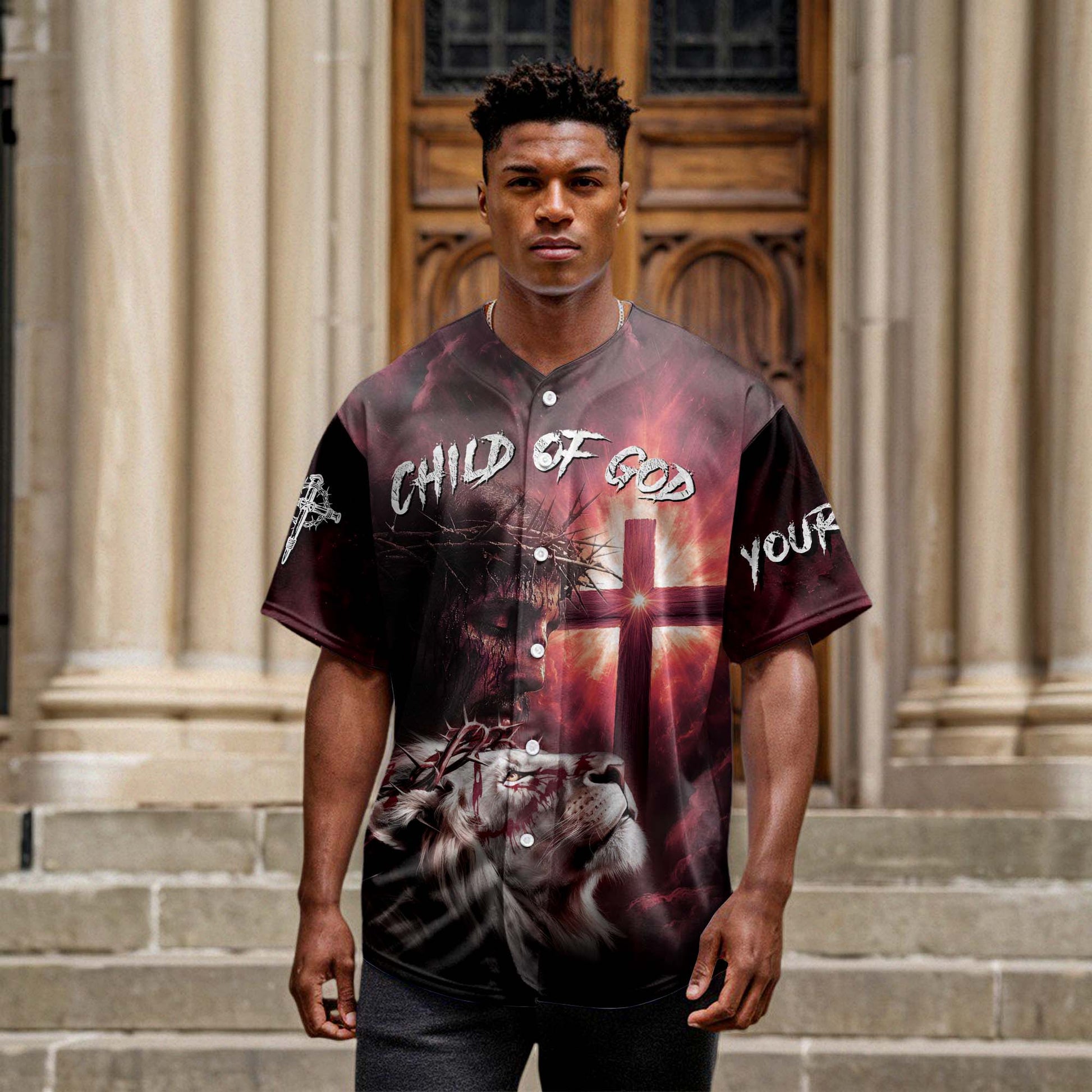 Featuring a striking design of Jesus with a crown of thorns alongside a lion — symbol of strength and resurrection — this jersey boldly declares: