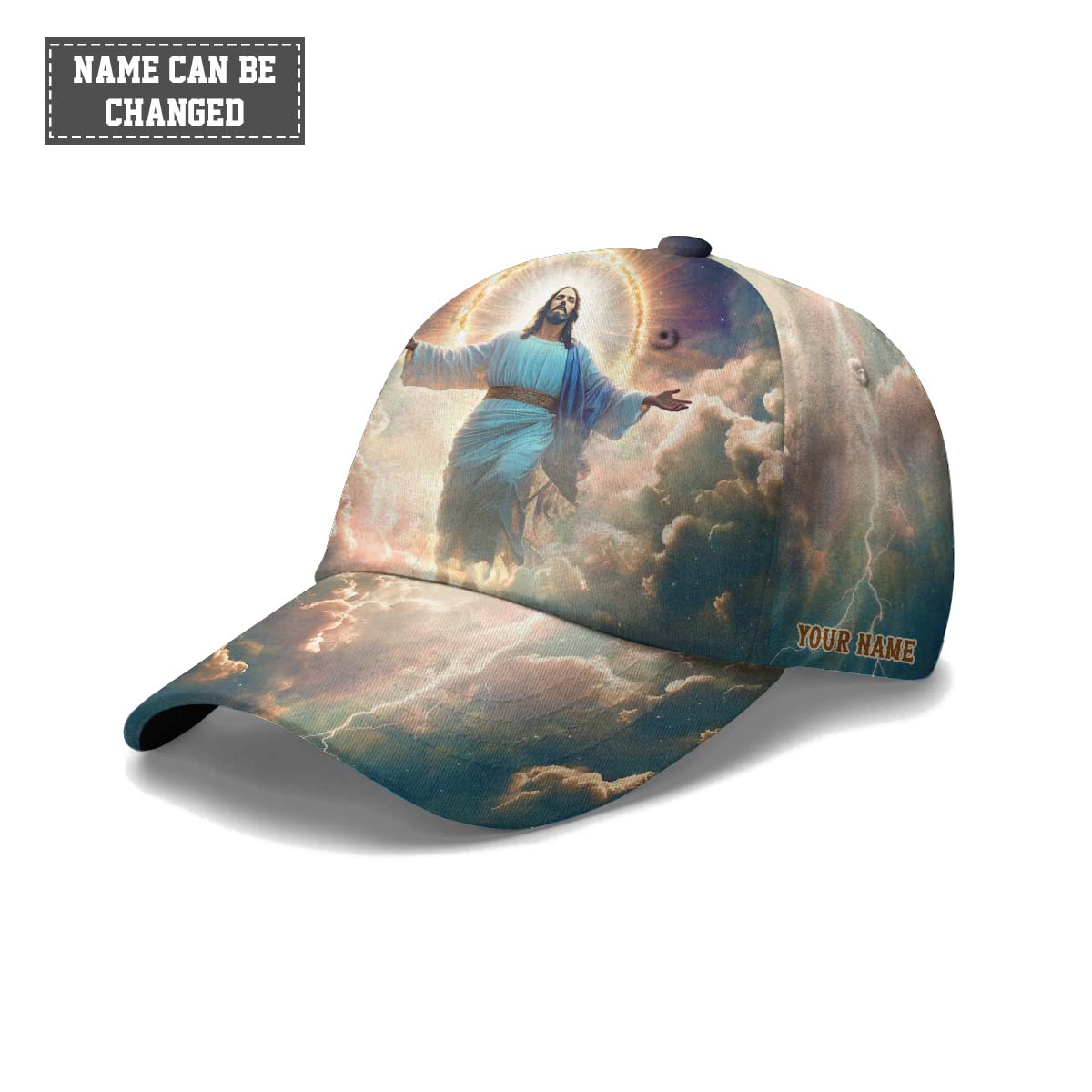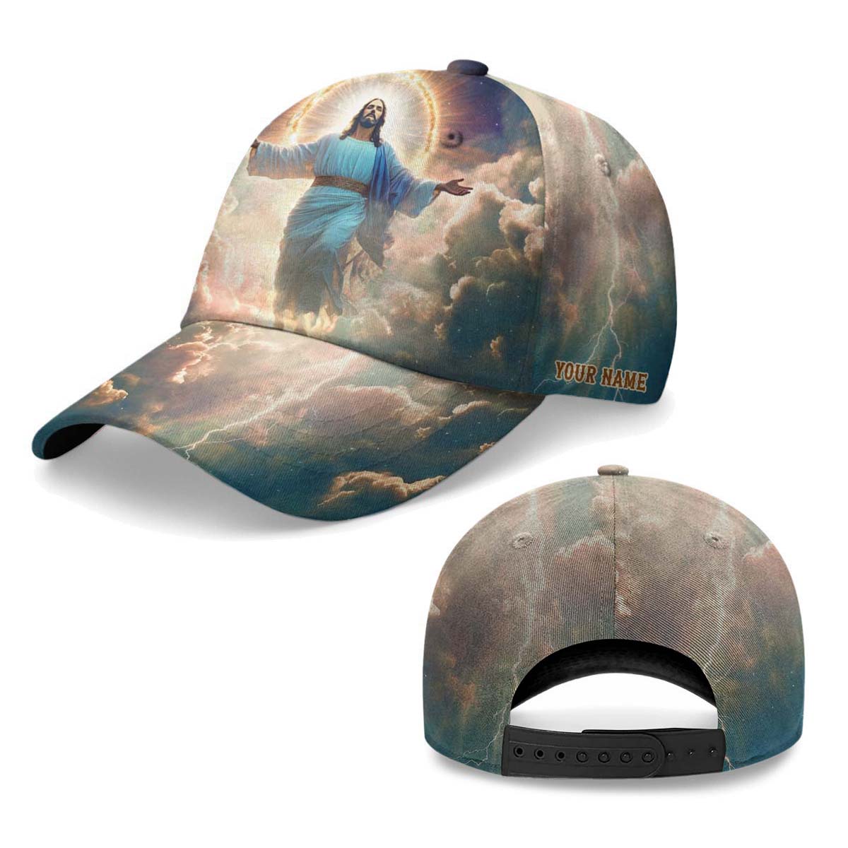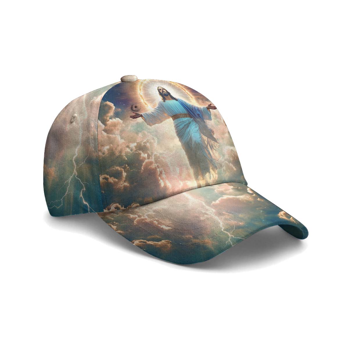 Featuring a radiant image of Jesus ascending into the clouds, surrounded by heavenly light, this cap captures the glory and hope of the resurrection. The powerful phrase “He is Risen” boldly proclaims your belief in Christ’s victory over death.