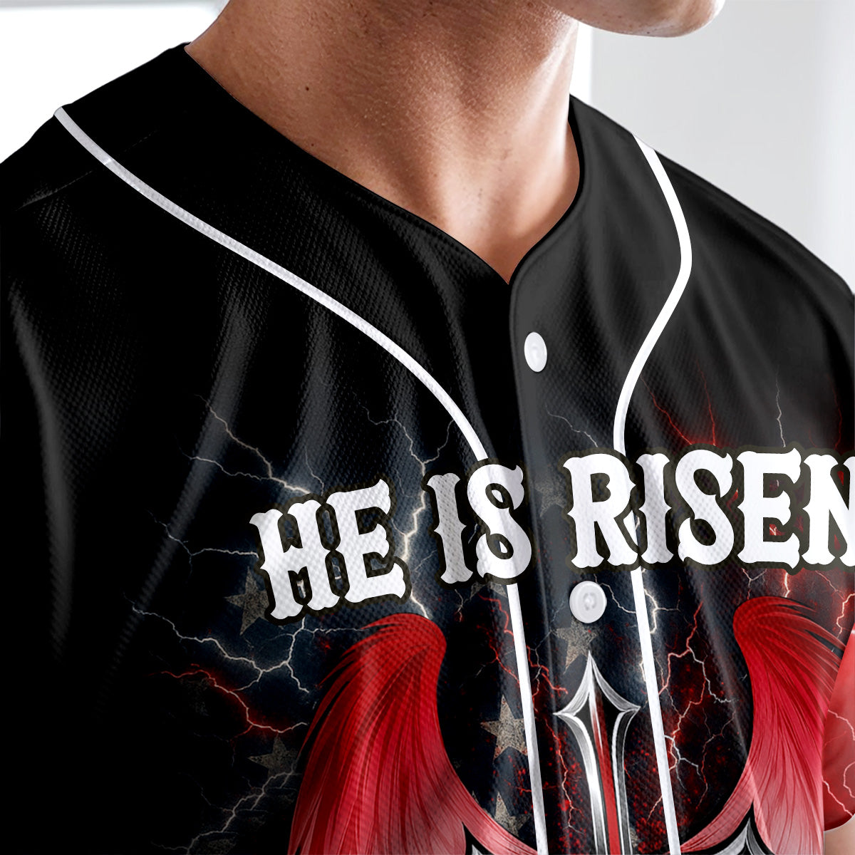 Boldly proclaim the resurrection with the “He Is Risen” Baseball Jersey — a powerful statement of victory, sacrifice, and salvation.