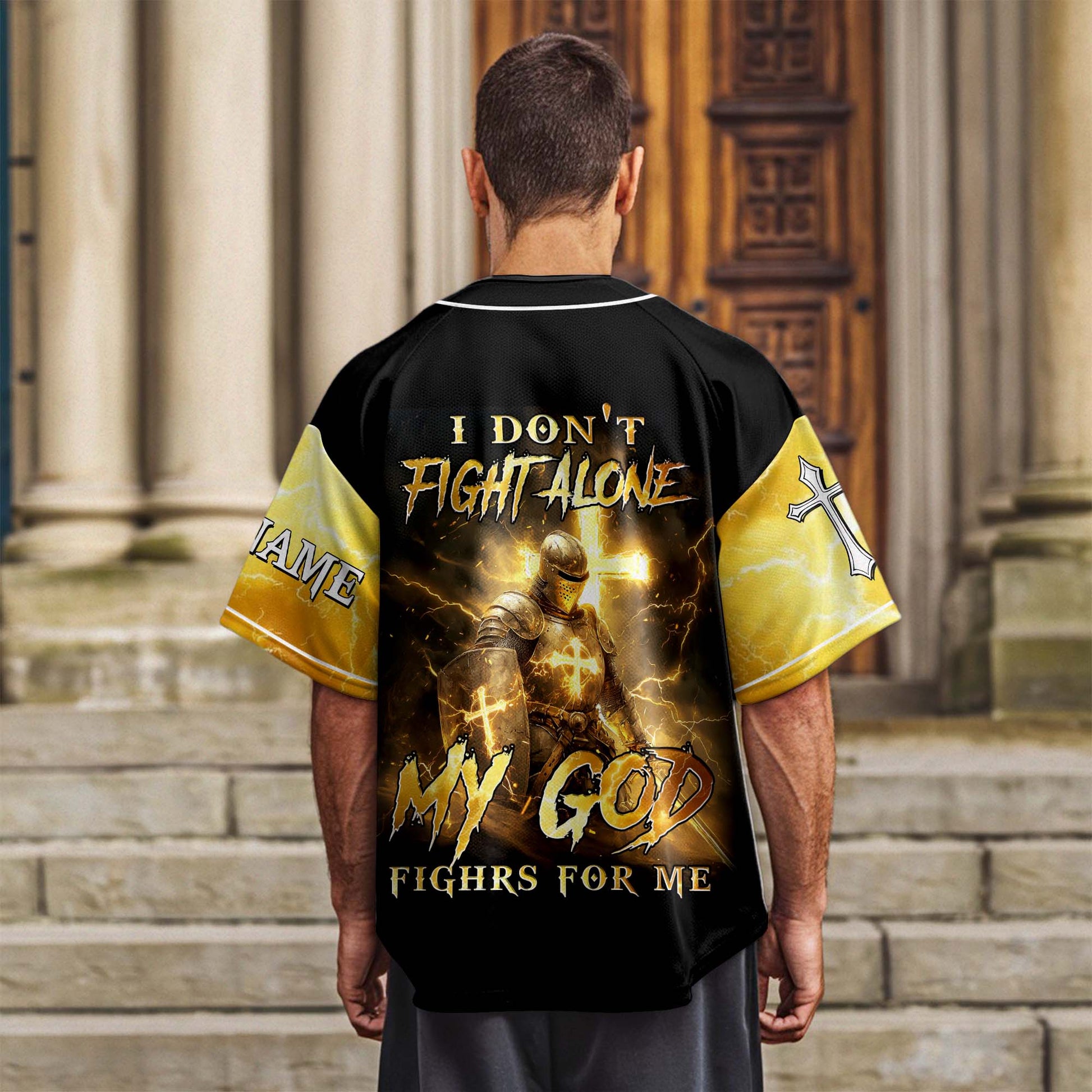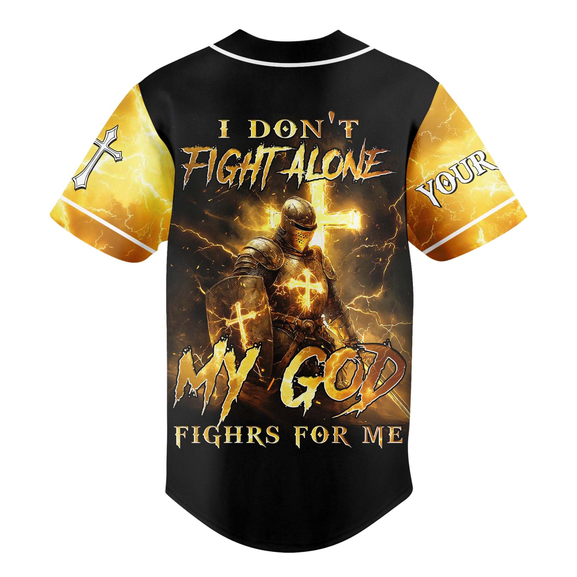 Step onto life’s battlefield with confidence, knowing you’re never alone. The “I Don’t Fight Alone” Custom Baseball Jersey is designed for warriors of faith who trust in God's power to lead every battle.