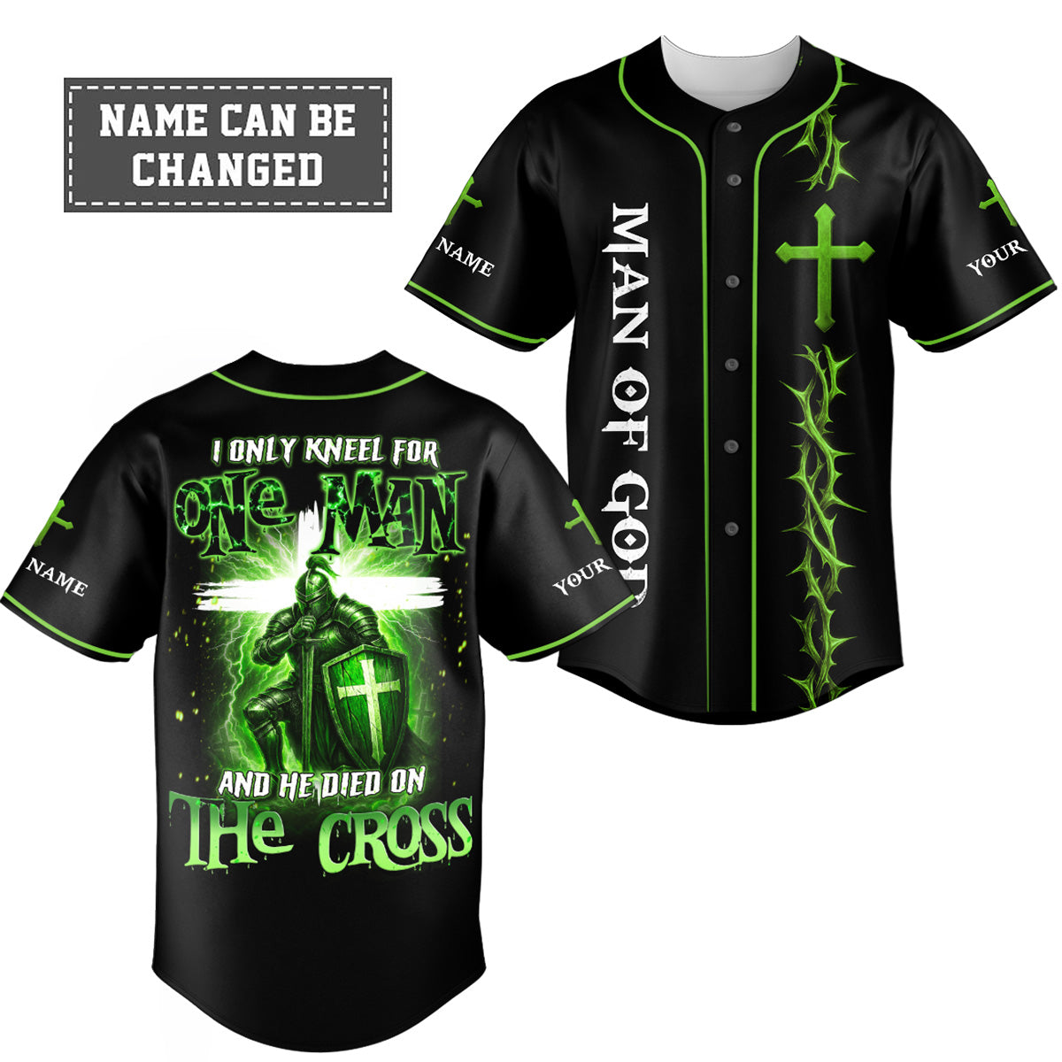 Boldly declare who you serve with the “I Only Kneel for One Man” Baseball Jersey — designed for true warriors of faith who bow only before the King of Kings.
