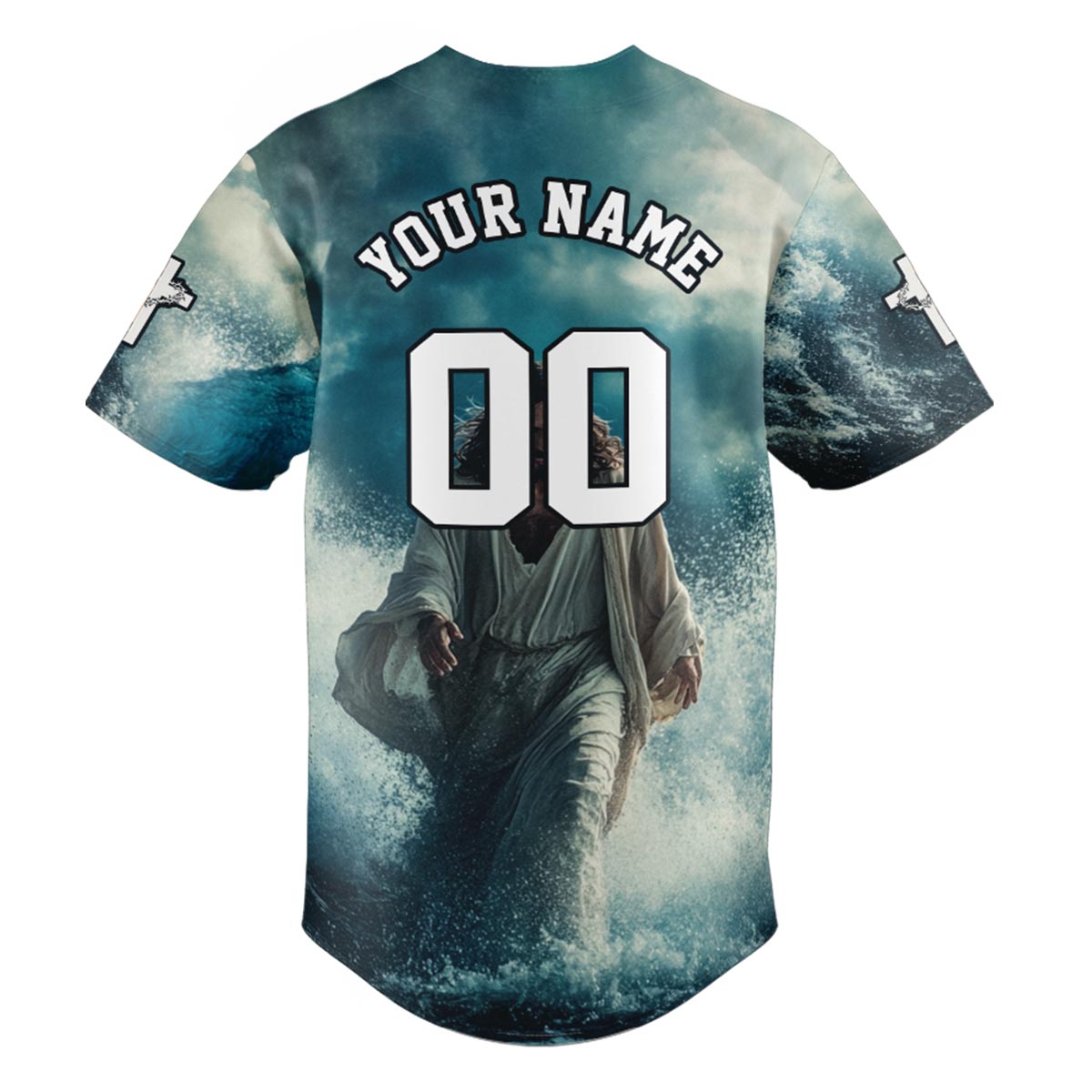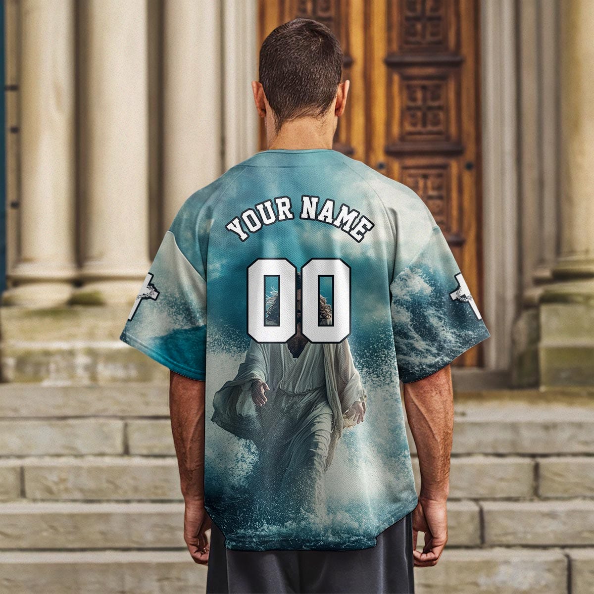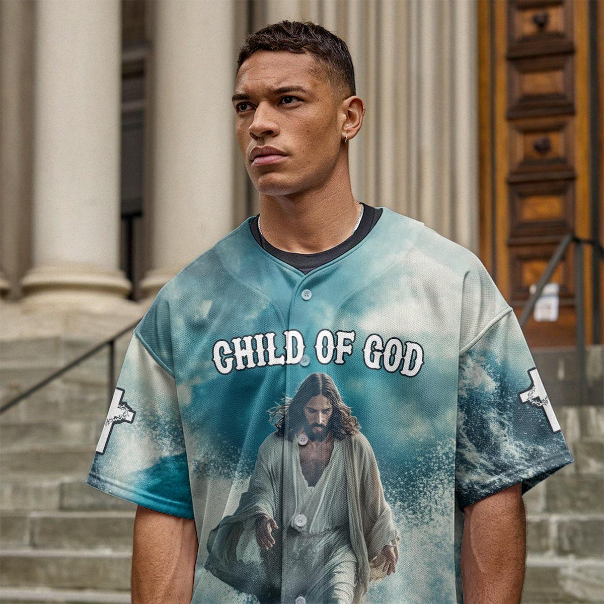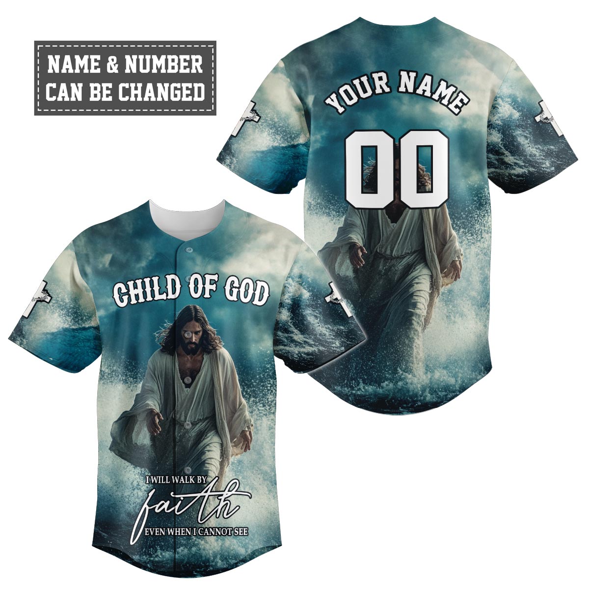 Walk in faith with this inspiring "I Will Walk by Faith Even When I Cannot See" baseball jersey. The design beautifully portrays Jesus walking on the water, a powerful symbol of faith in the midst of uncertainty. With the bold "Child of God" message across the top, this jersey reminds you of your identity as a child of God, called to walk by faith, even when the path ahead is unclear.