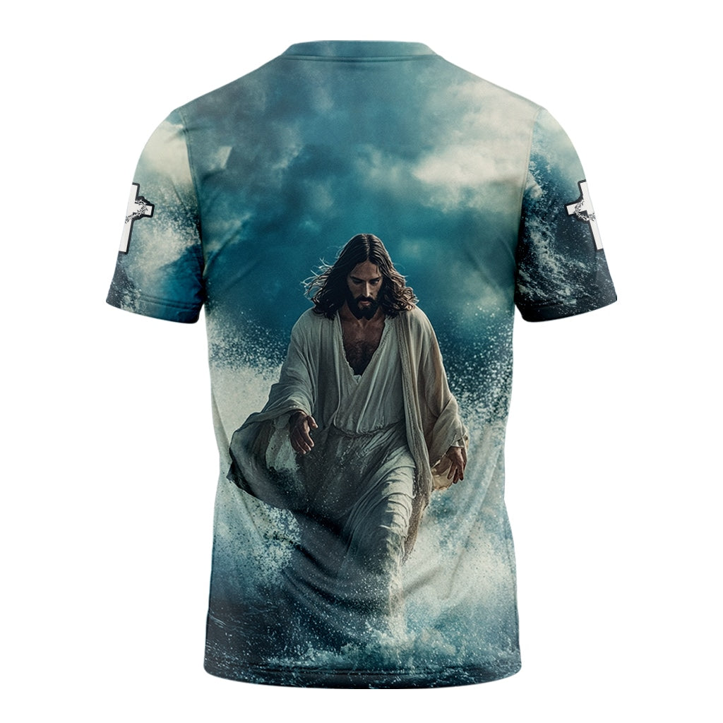 ✅ Inspiring design of Jesus walking on water with a faith-driven message