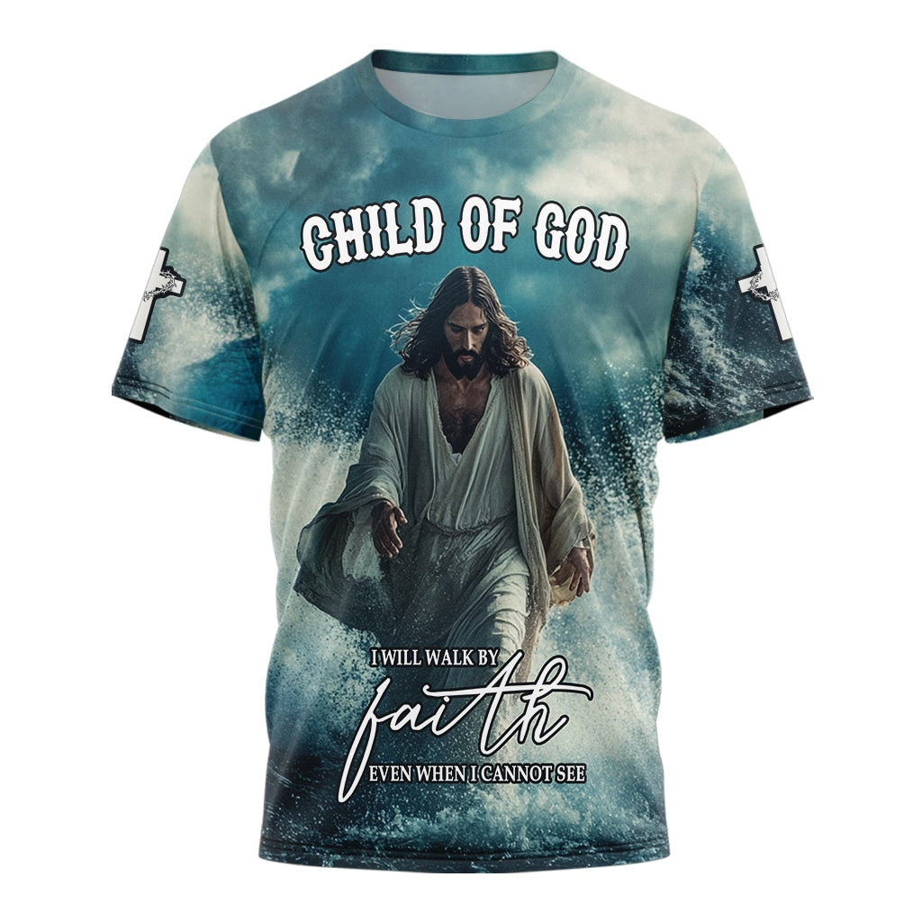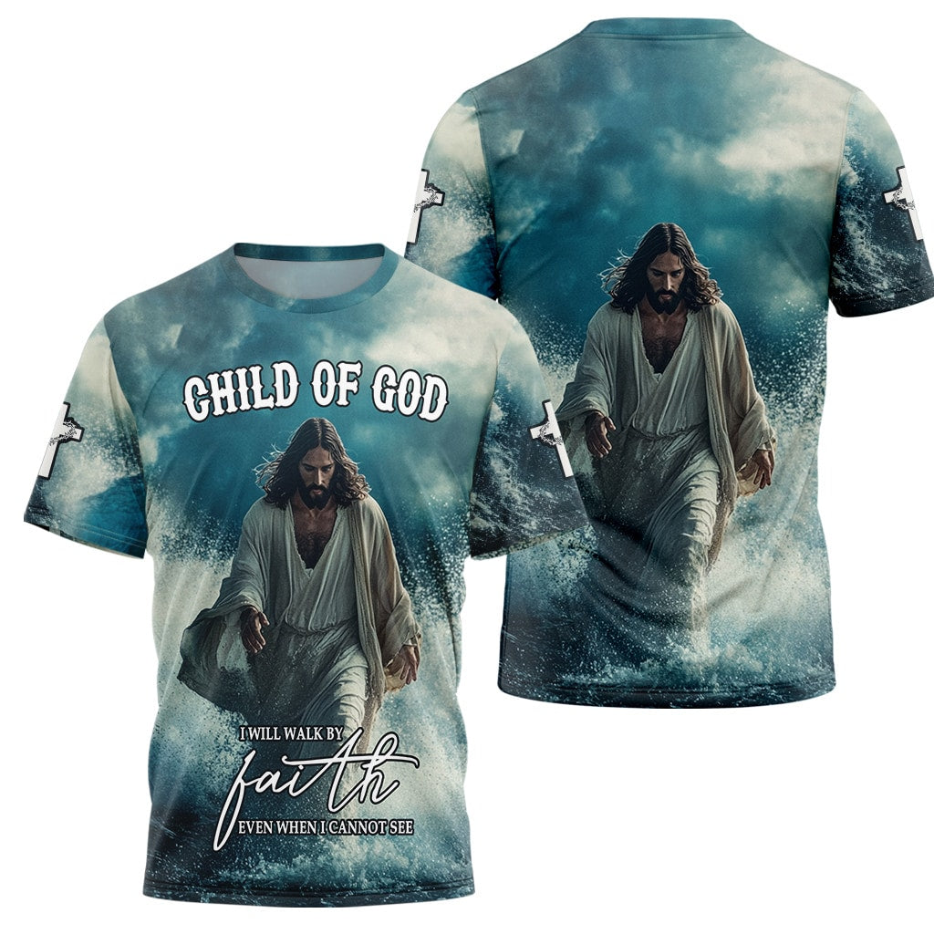 Stay strong in your faith with the I Will Walk by Faith Even When I Cannot See T-Shirt. This breathtaking design features Jesus walking on water, a powerful reminder to trust in Him even in life's stormiest moments. The stunning ocean backdrop and inspiring scripture message make this shirt perfect for believers who live by faith.