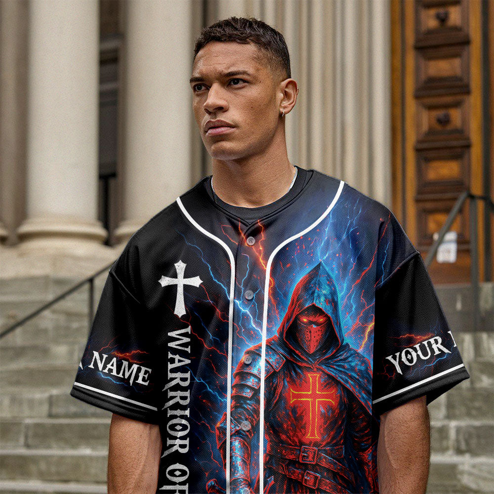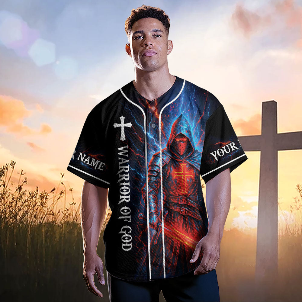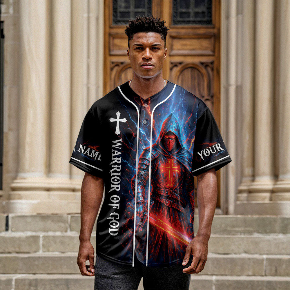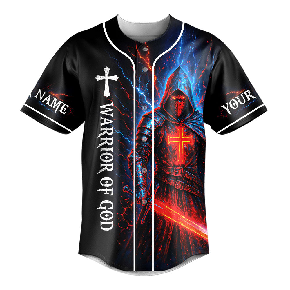The front reads “Warrior of God”, with both sleeves customizable with your name to make it truly yours.
