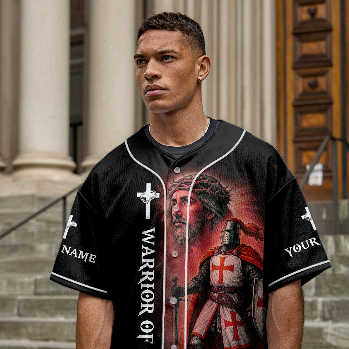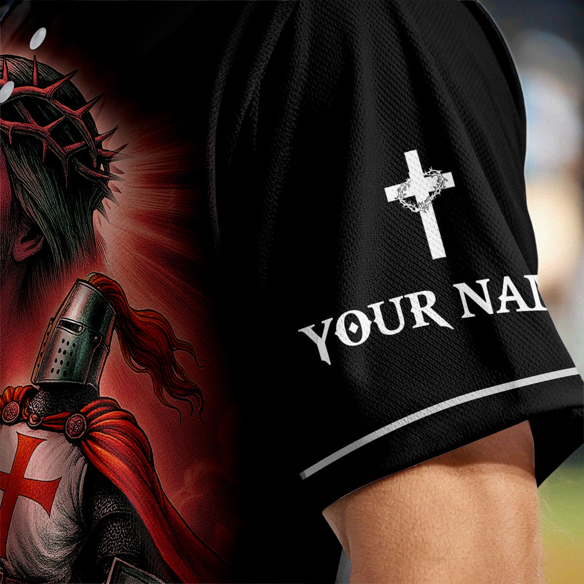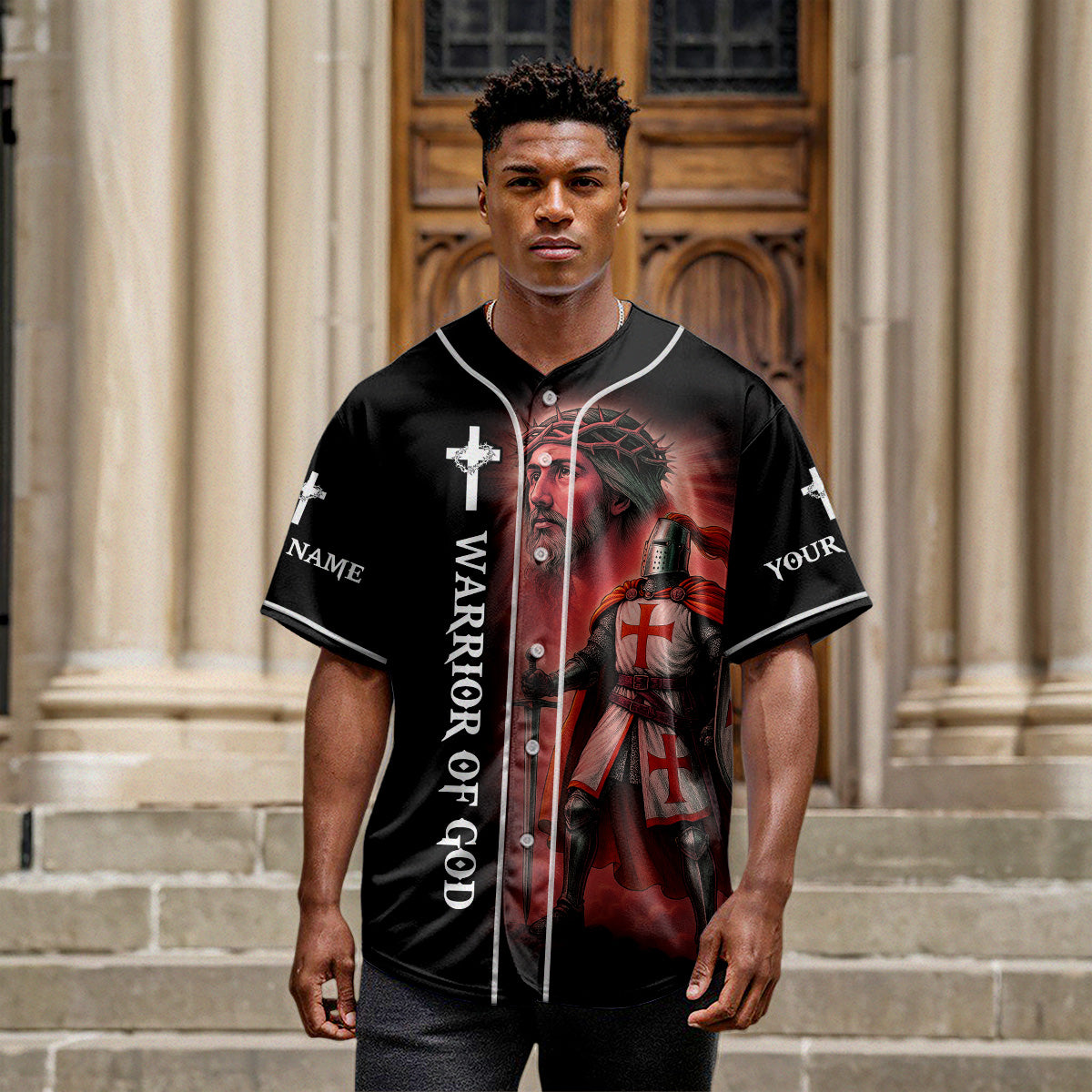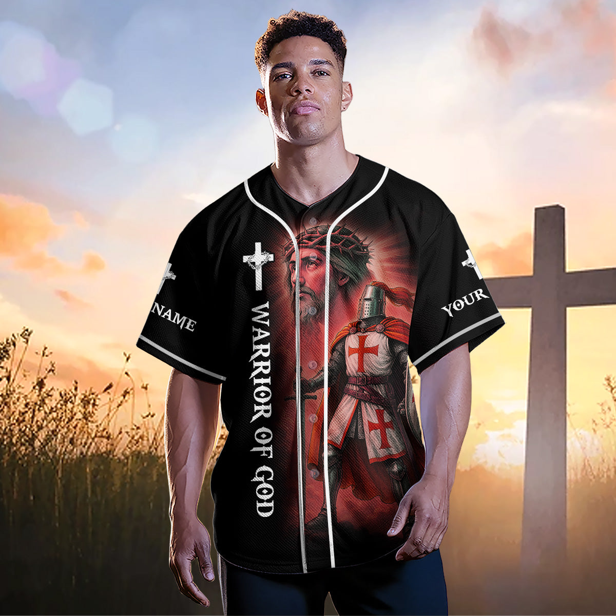 Stand firm and fight with faith in the It Ain’t Over Until God Says It’s Over Custom Name Baseball Jersey — a bold declaration of victory through God’s timing and power. Featuring a dramatic warrior angel kneeling with a shield and sword on the back, and a Crusader knight with Jesus on the front, this jersey is designed for spiritual warriors who never back down.
