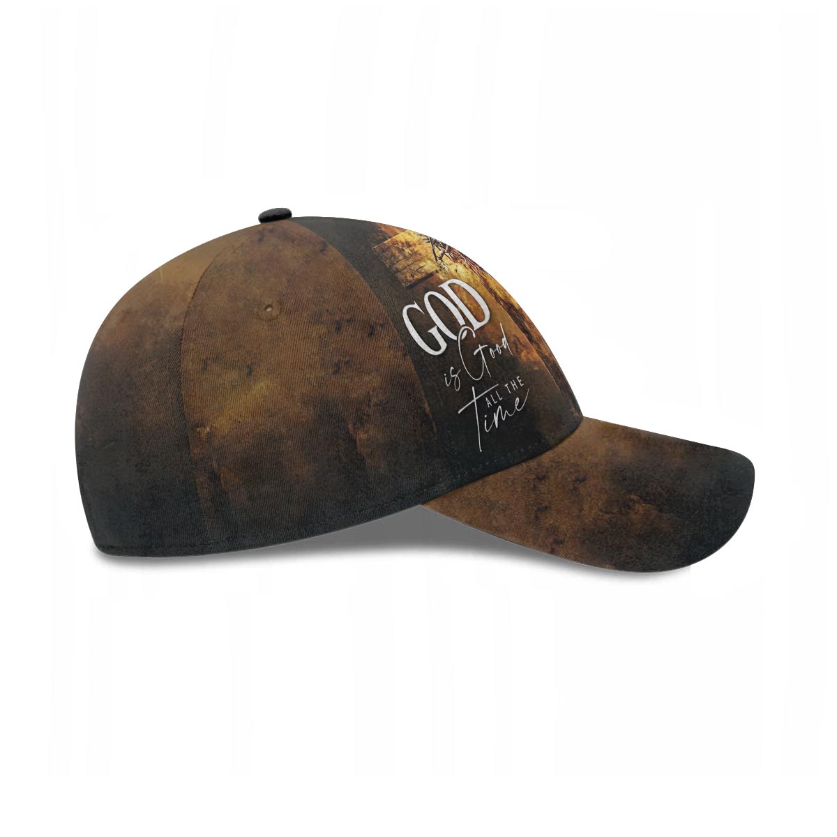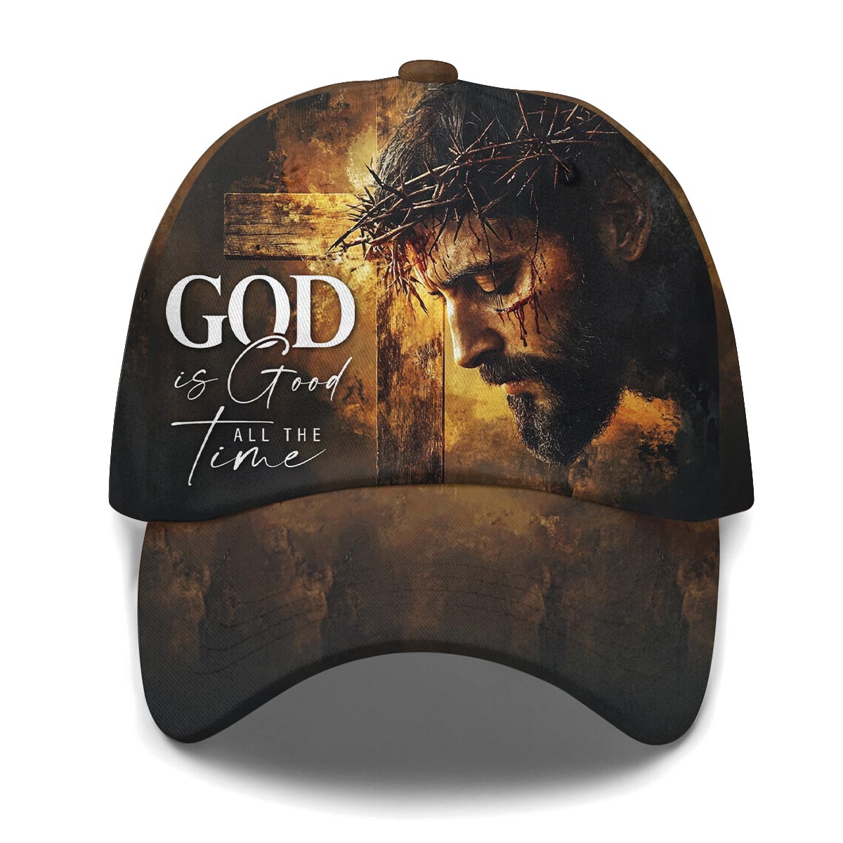 Celebrate unwavering faith with the God Is Good All The Time Baseball Cap. This powerful design features a solemn image of Jesus Christ wearing the crown of thorns, symbolizing sacrifice, redemption, and His eternal love. The earthy tones and deep shadows create a reverent and inspiring tribute to the Savior’s ultimate sacrifice.