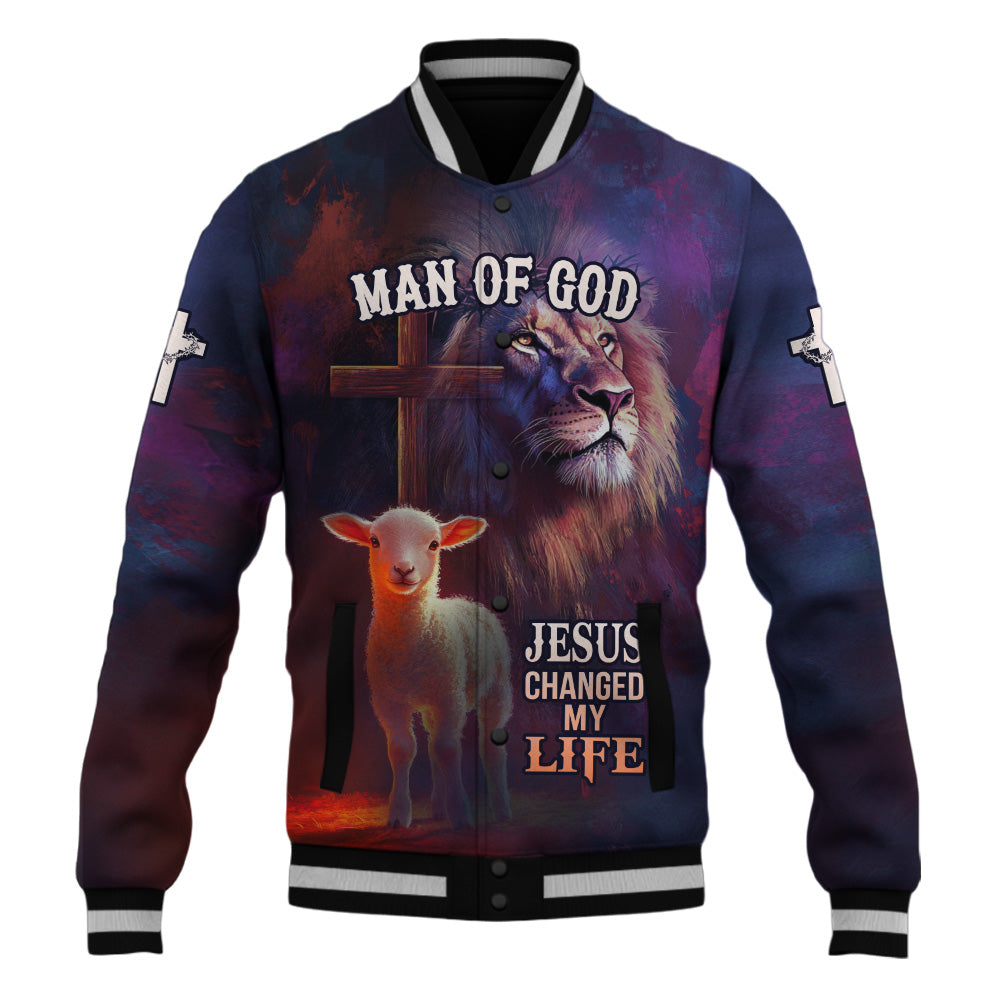 Wear your testimony with power and pride in the Jesus Changed My Life Baseball Jacket. Featuring a bold, spiritual design of a fierce lion, a gentle lamb, and the cross — this jacket beautifully represents the strength, peace, and transformation found in Christ. It’s more than just outerwear — it’s your personal story in motion.
