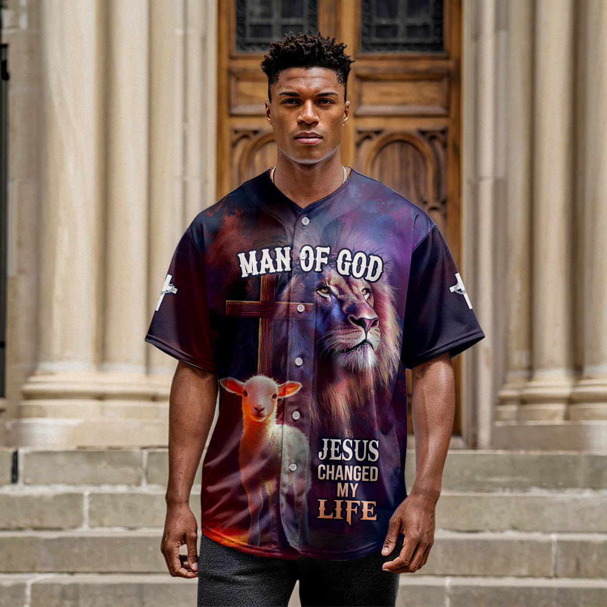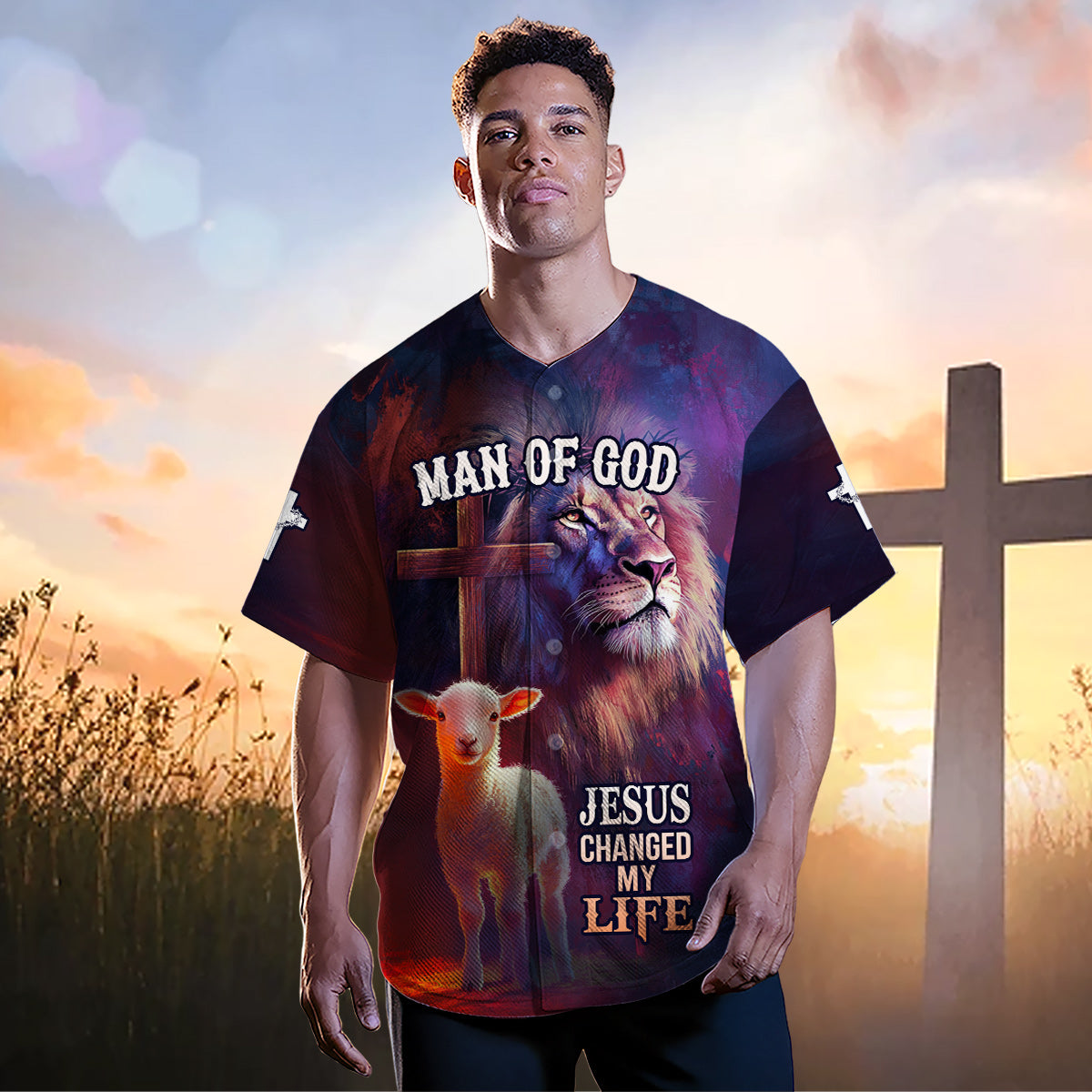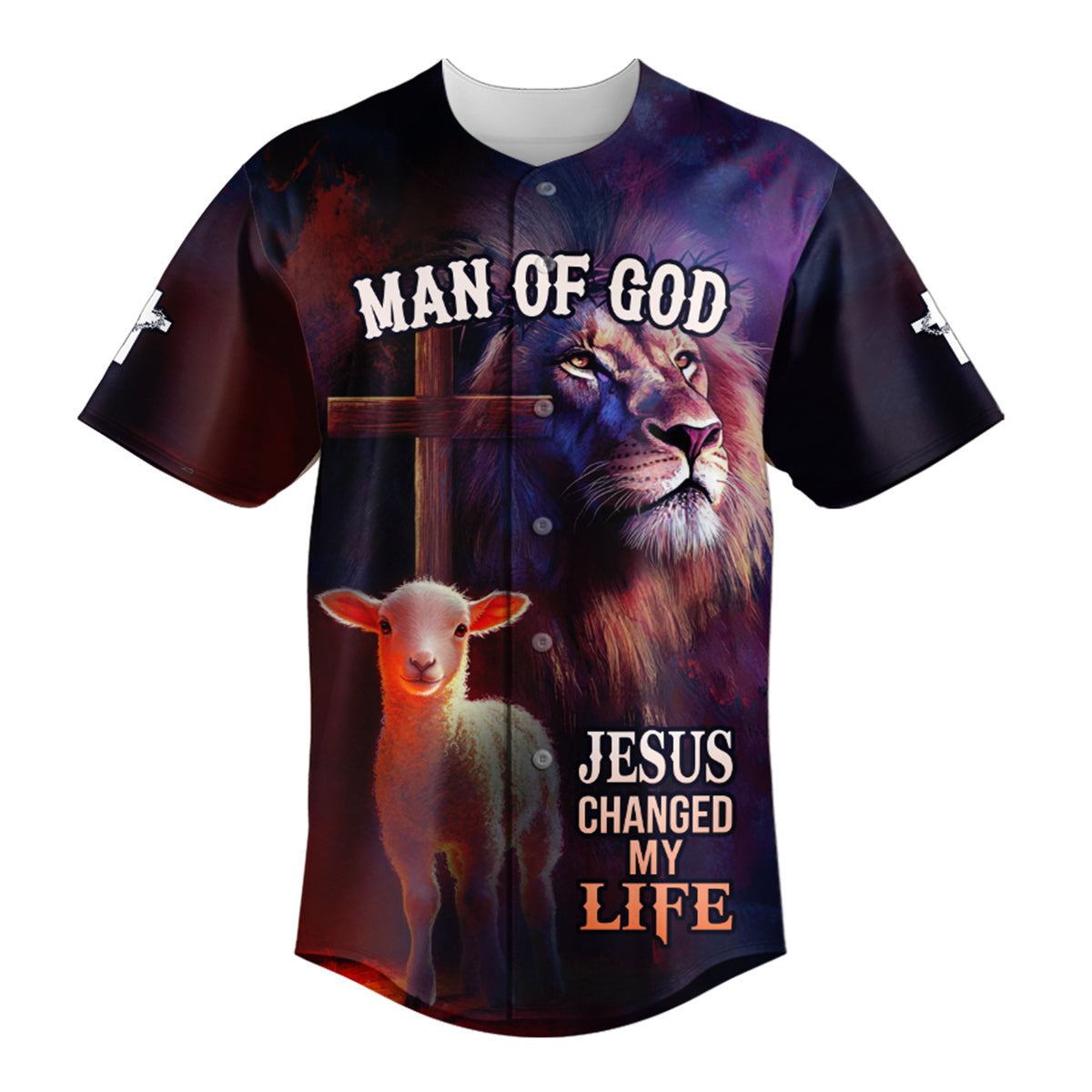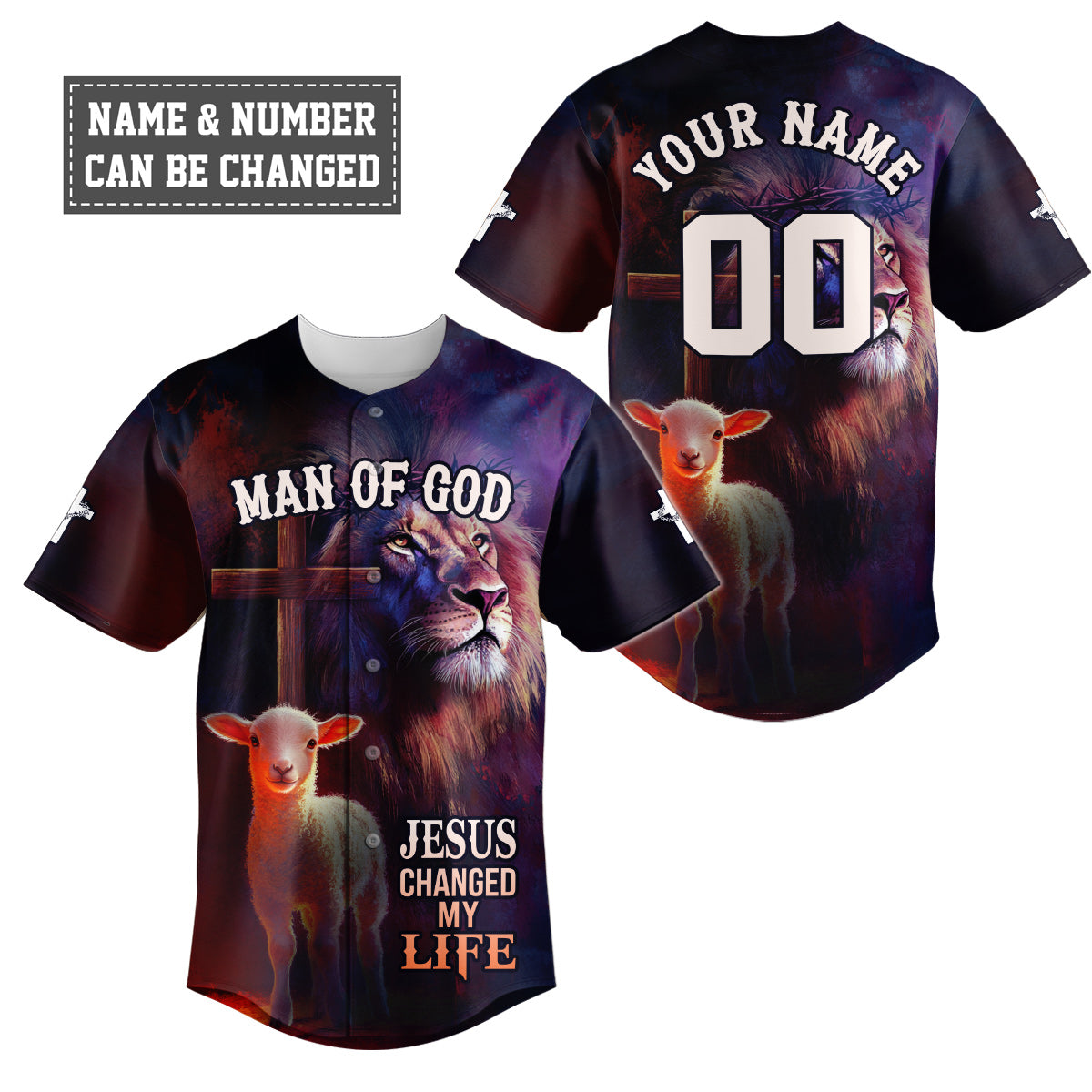Declare your faith boldly with the Jesus Changed My Life Baseball Jersey — a powerful, faith-filled design that speaks straight to the heart. Featuring a majestic lion, a gentle lamb, and the cross in the background, this jersey is a stunning symbol of Jesus’s power, peace, and transformative love.