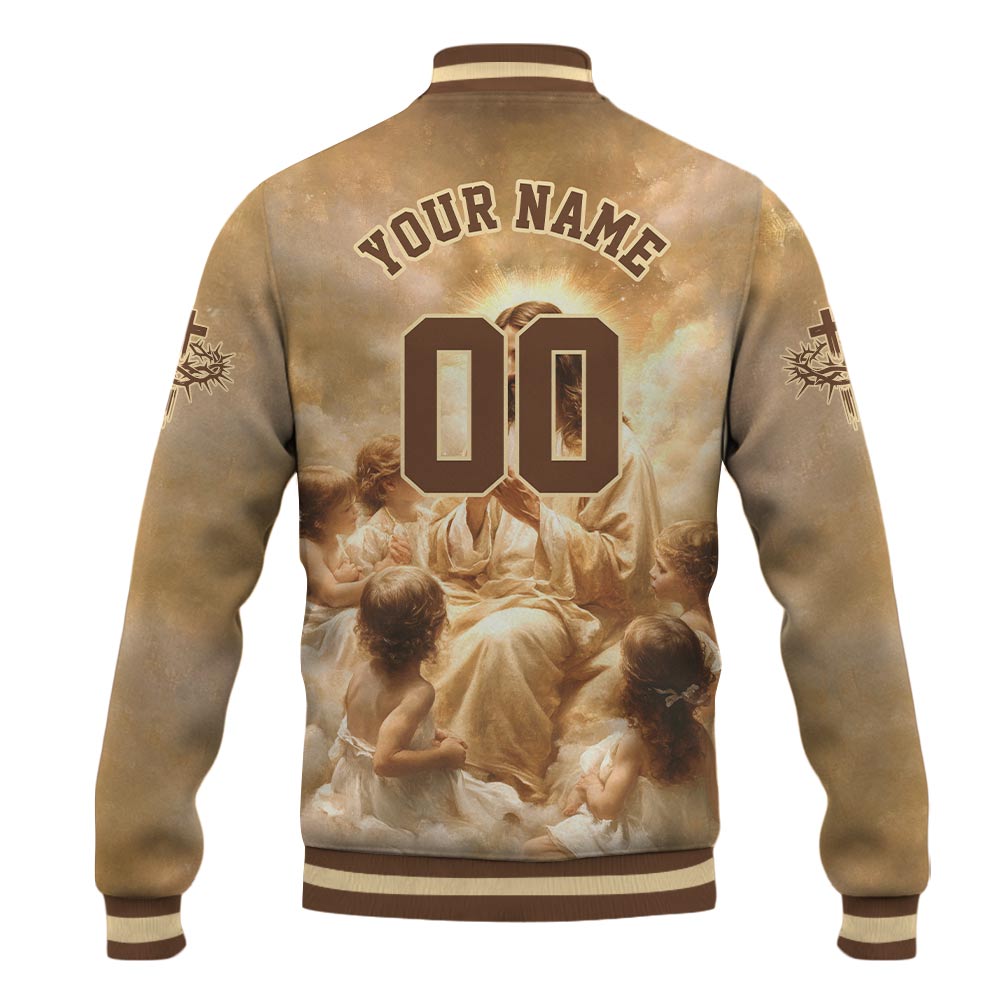 Show your devotion in bold, stylish fashion with the Jesus Child Of God Baseball Jacket. Featuring a majestic design of Jesus Christ surrounded by heavenly light, a powerful lion, and a peaceful lamb resting on the Holy Bible — this jacket beautifully captures the spirit of faith, strength, and grace.
