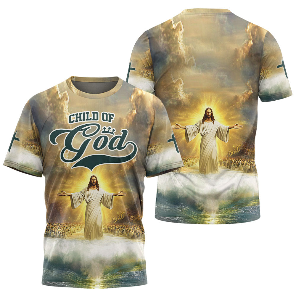 Embrace your divine identity with the Jesus Child Of God T-shirt. Featuring a stunning design of Jesus Christ and the powerful message "Child of God", this t-shirt serves as a bold reminder of your connection to the Creator and your place in His family.