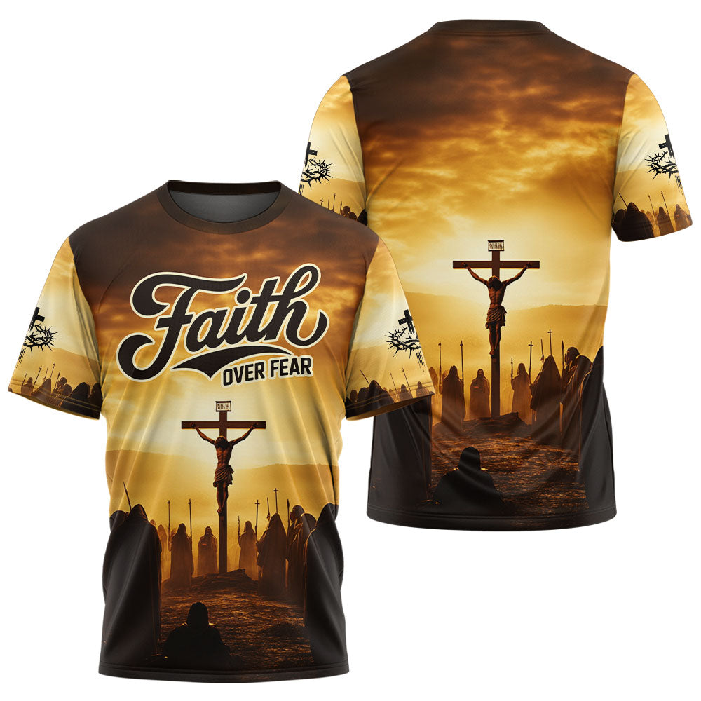 Embrace your devotion and inspire others with this Jesus Faith Over Fear T-shirt. A true statement of faith, courage, and love. ✝️💛