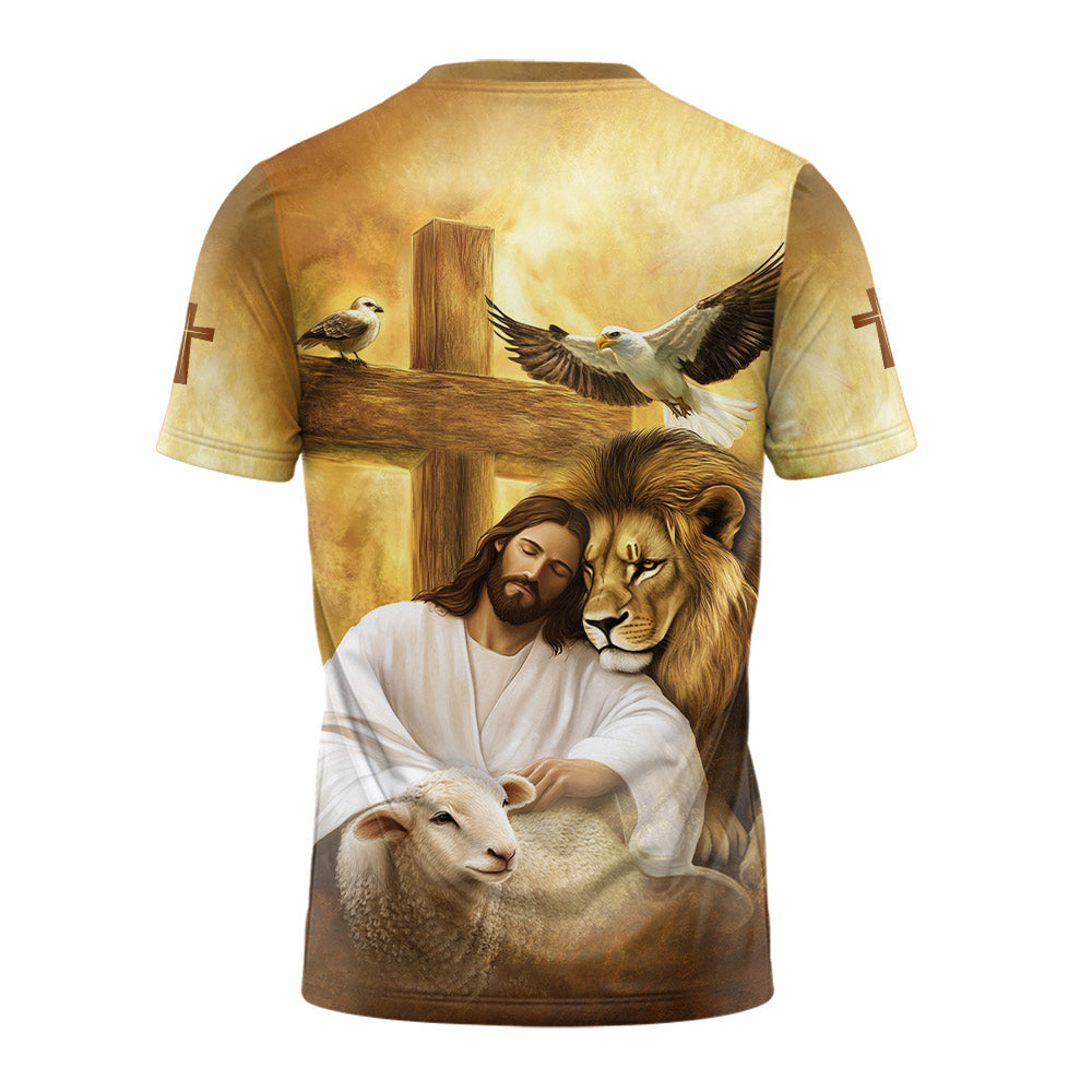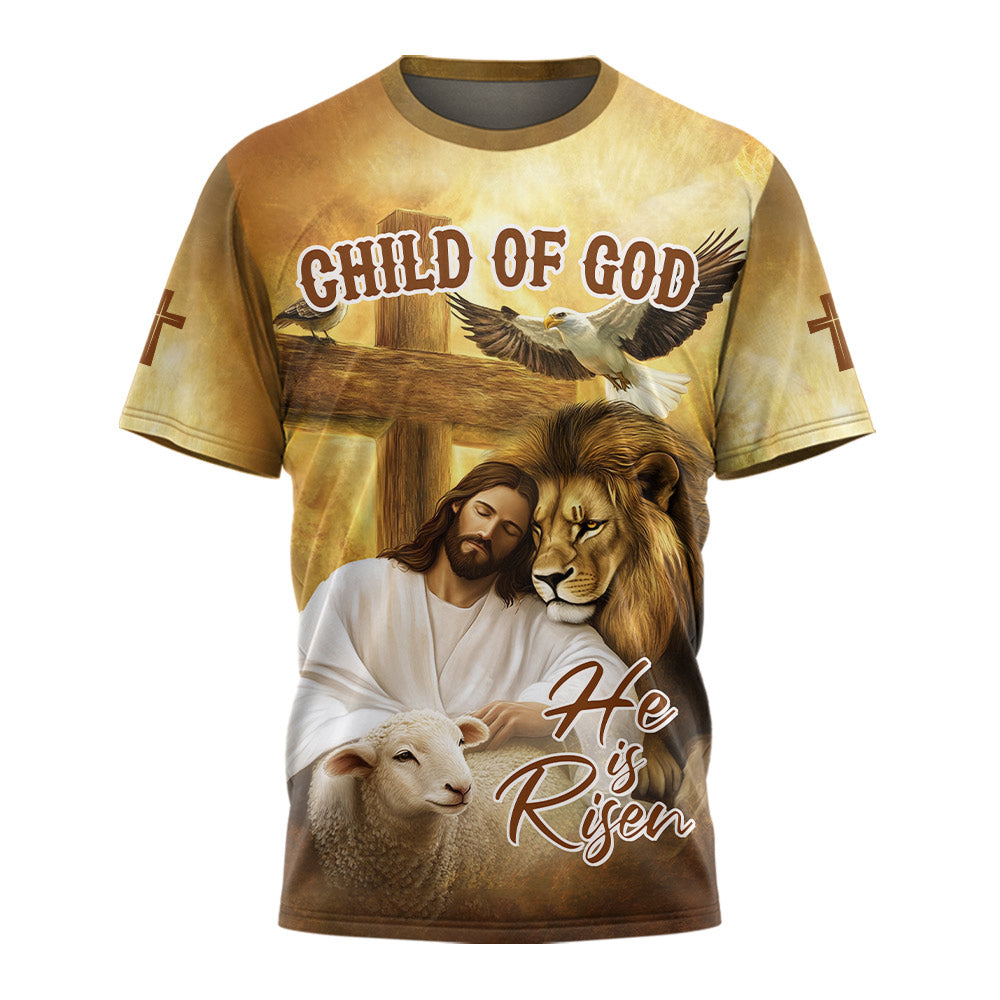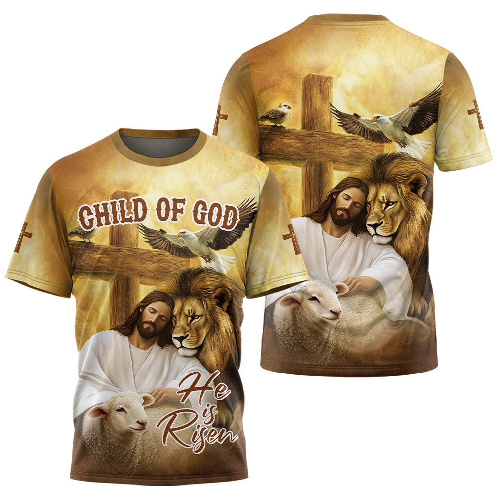 Celebrate the resurrection and your identity in Christ with the Jesus He Is Risen T-shirt — a peaceful yet powerful design filled with deep spiritual meaning. Featuring Jesus resting alongside a lion and a lamb, beneath a wooden cross and soaring dove, this artwork beautifully symbolizes victory, peace, and divine love. With the words "Child of God" and "He is Risen", this shirt reminds you daily of who you are and what He has done.