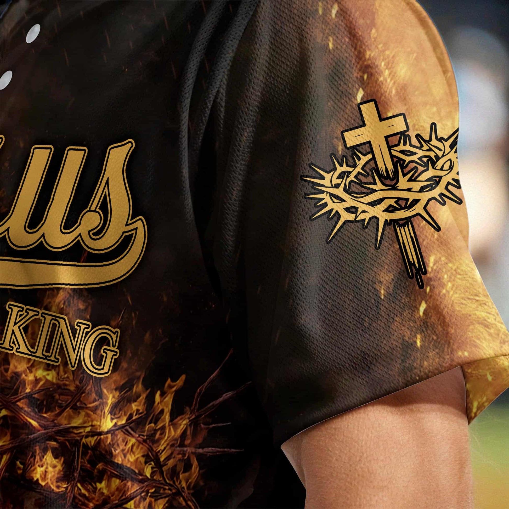 This jersey is a fierce testament to your belief in Jesus' reign and strength. Customize it with your name and number, and wear it proudly as a symbol of your faith in the King of Kings. Perfect for those who want to honor His power, sacrifice, and eternal kingship.