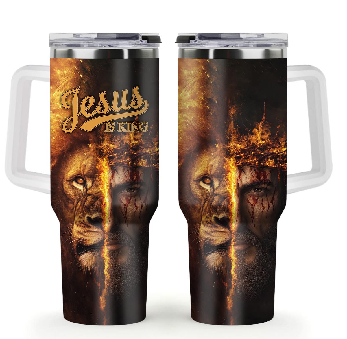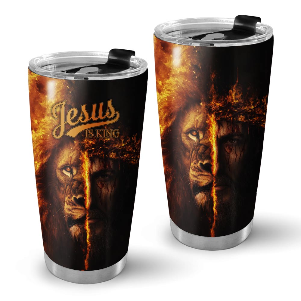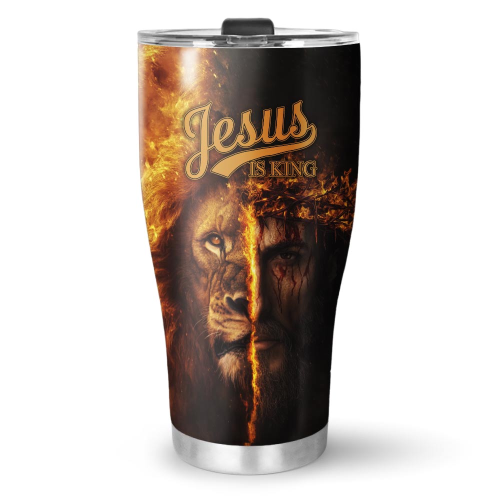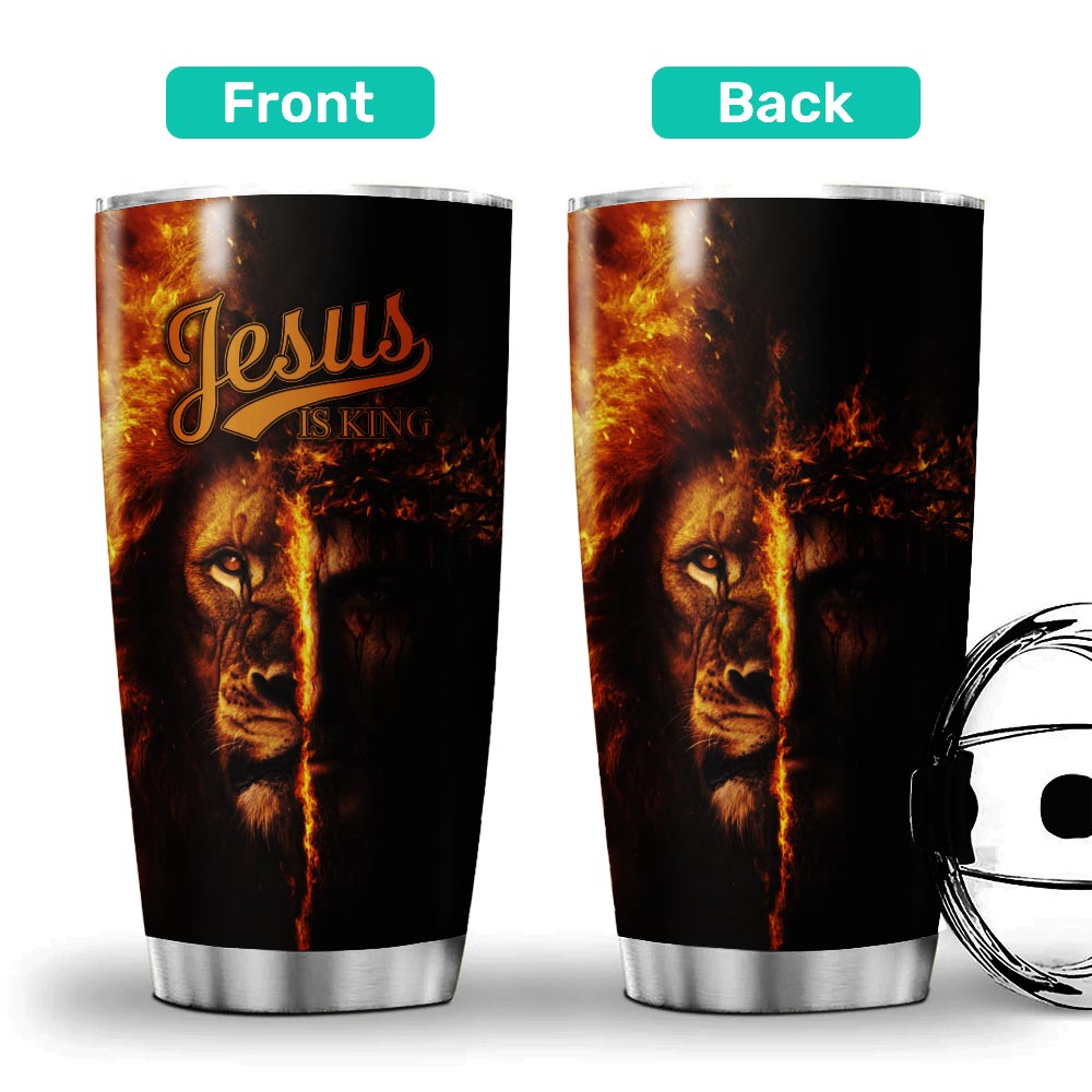 Jesus Is King Lion Stainless Steel Tumbler - A Bold Statement of Faith