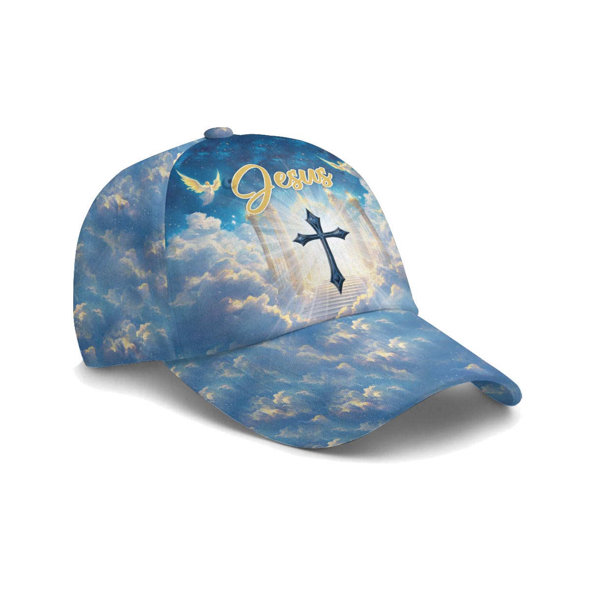 Embrace the promise of eternal life with the Jesus Is the Key to Heaven Baseball Cap. This divine design features a glowing cross leading to the gates of heaven, surrounded by radiant clouds and a soaring dove symbolizing the Holy Spirit. The serene blue tones create a peaceful and heavenly aesthetic, reminding us that Jesus is the only way to salvation.