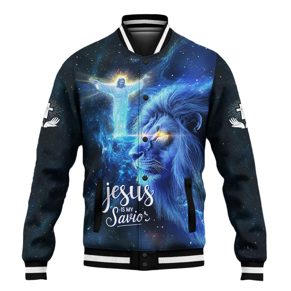 Declare your faith with the Jesus Is My Savior Baseball Jacket, a stunning representation of strength, devotion, and divine guidance. Featuring a breathtaking celestial design of Jesus shining in heavenly glory alongside a majestic lion, this jacket symbolizes power, protection, and unwavering faith. The "Jesus Is My Savior" message serves as a bold declaration of trust and salvation through Him.