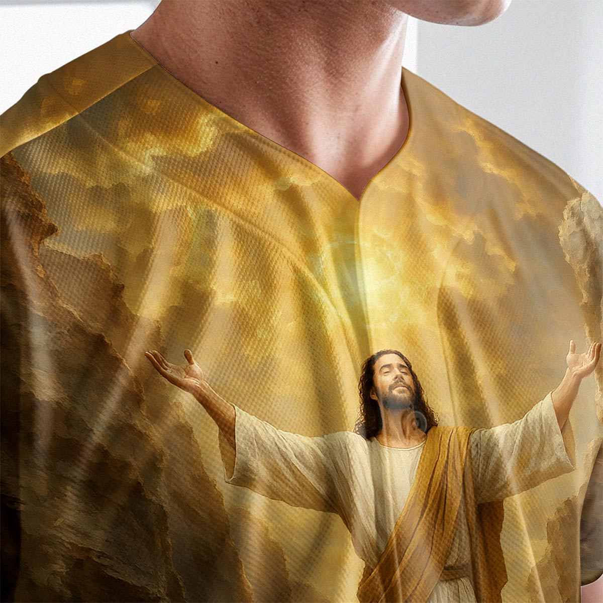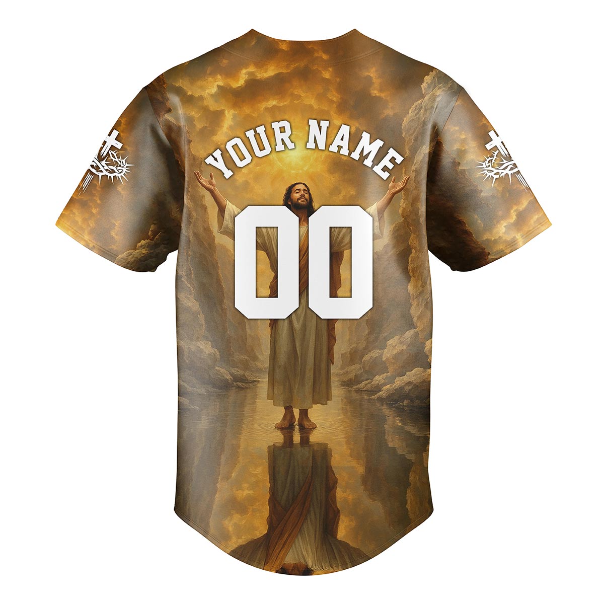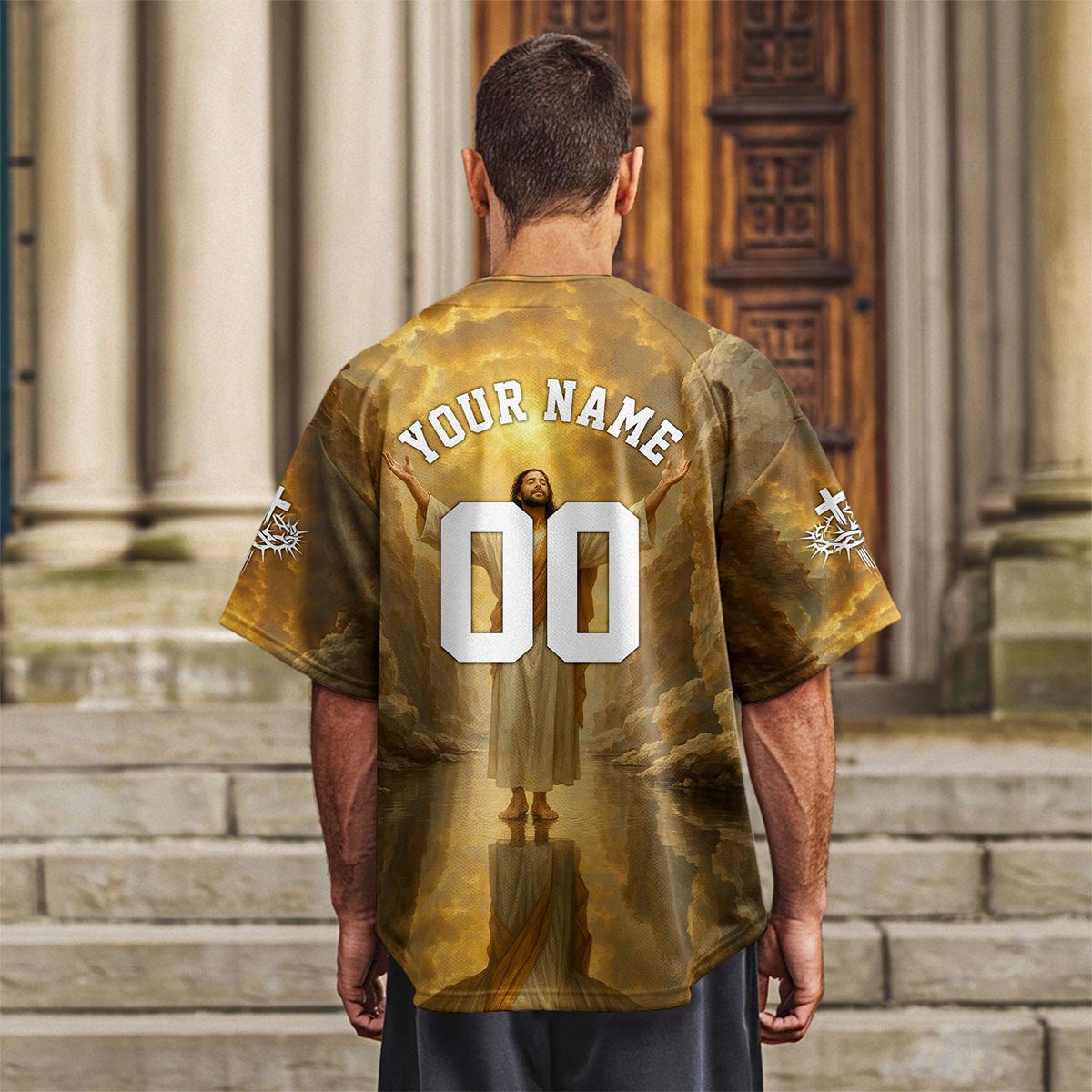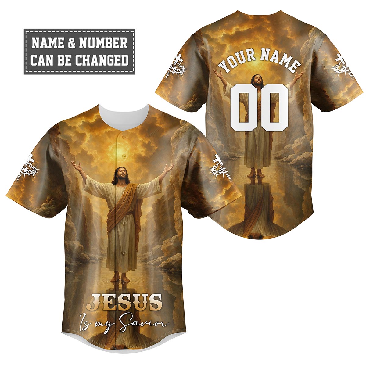 Let your faith shine in every step you take with the Jesus Is My Savior Baseball Jersey. Featuring a stunning full-body artwork of Jesus with arms raised in glory, surrounded by heavenly light and clouds, this jersey is a radiant symbol of salvation, hope, and eternal love.
