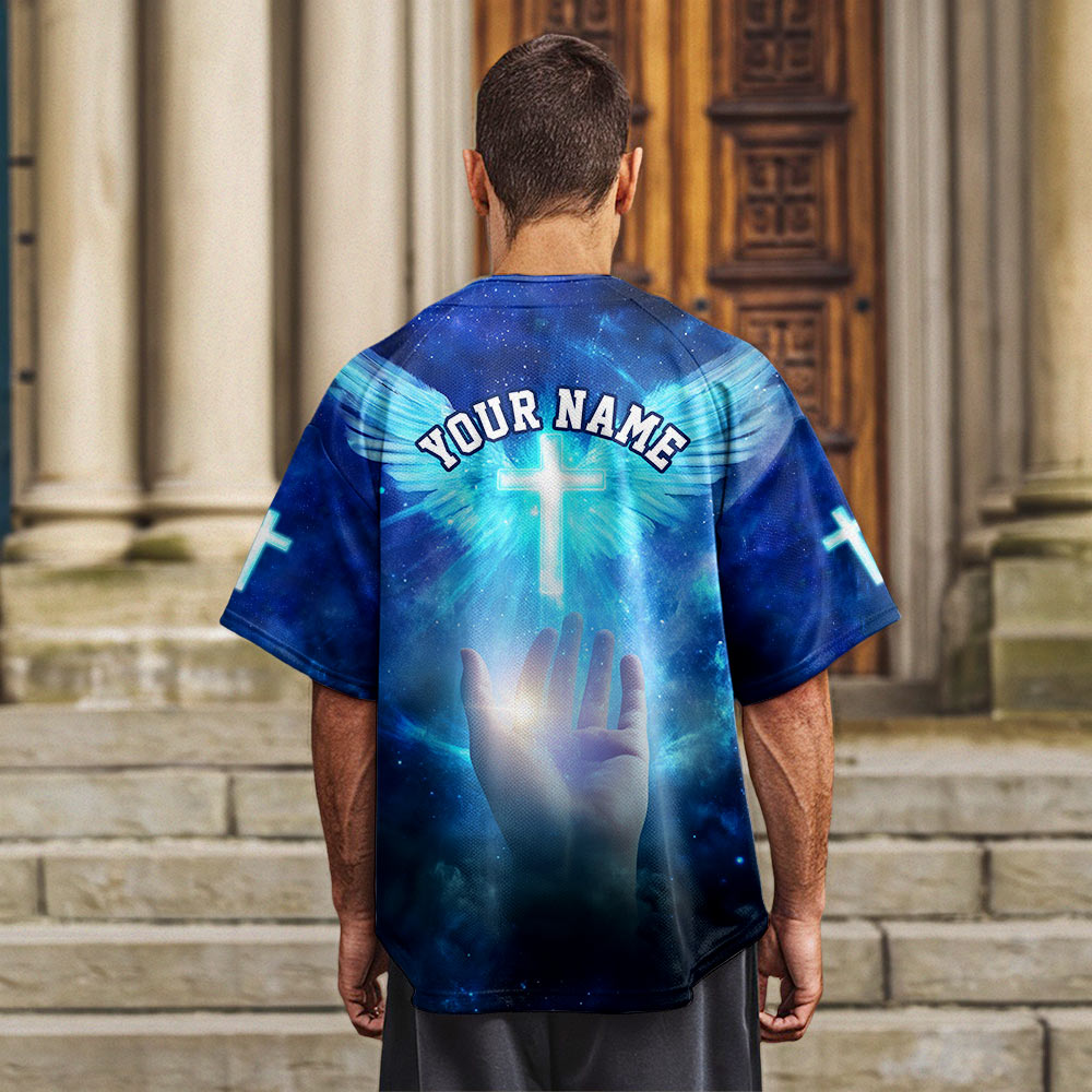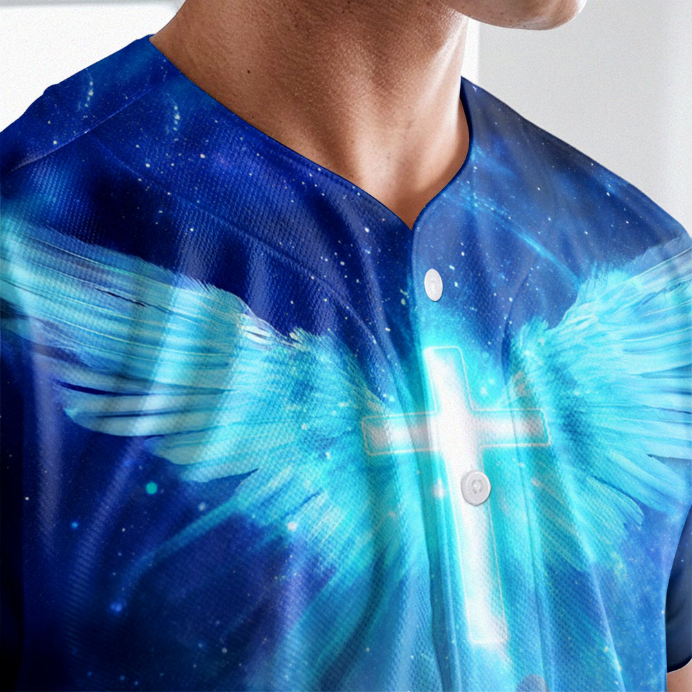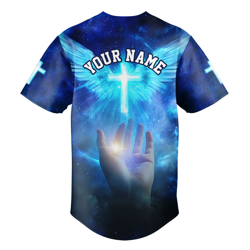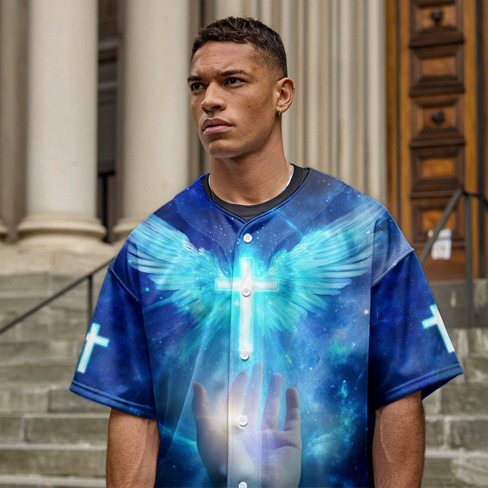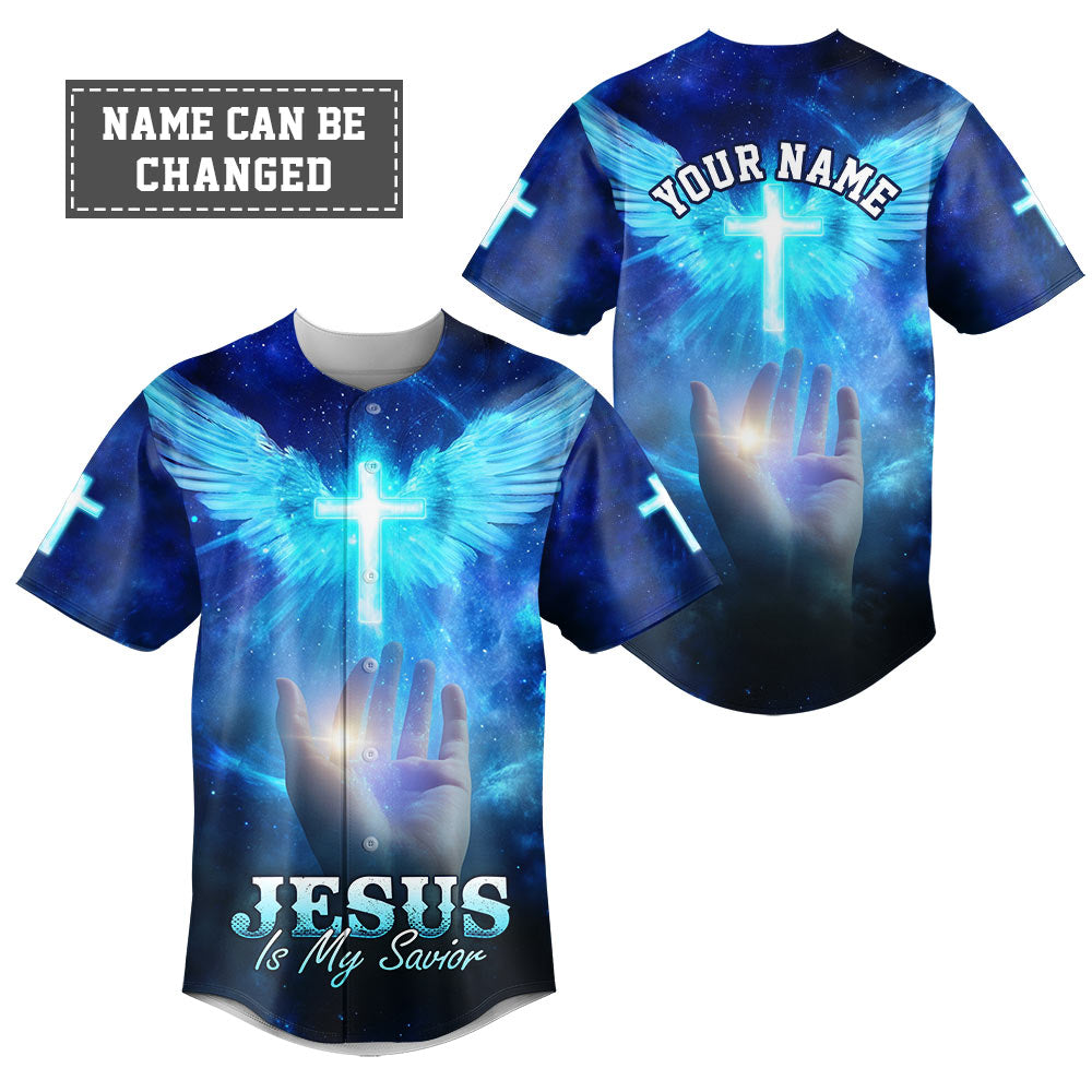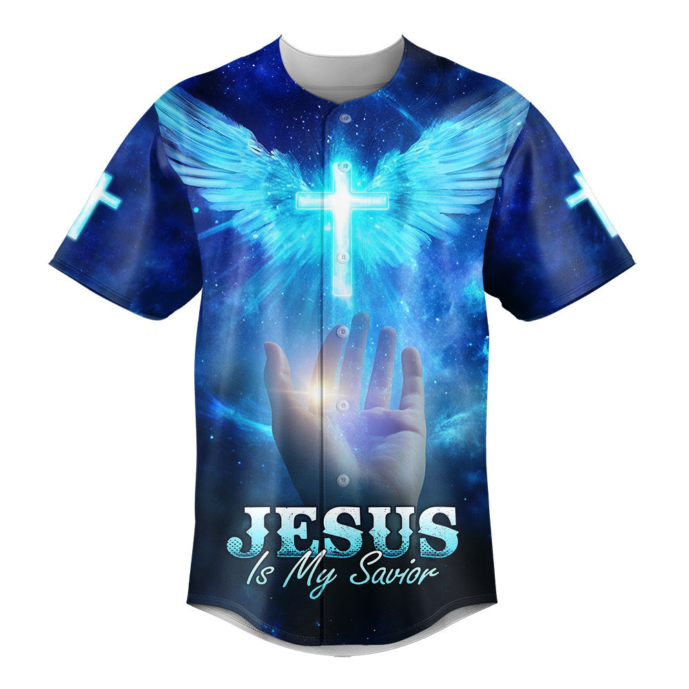 Declare your devotion with the Jesus Is My Savior Baseball Jersey — a heavenly fusion of faith and bold style. This radiant design features a glowing cross with angelic wings and a hand reaching toward heaven, set against a stunning galaxy background. It’s more than a jersey — it’s a visual testimony of your trust in the Savior.
