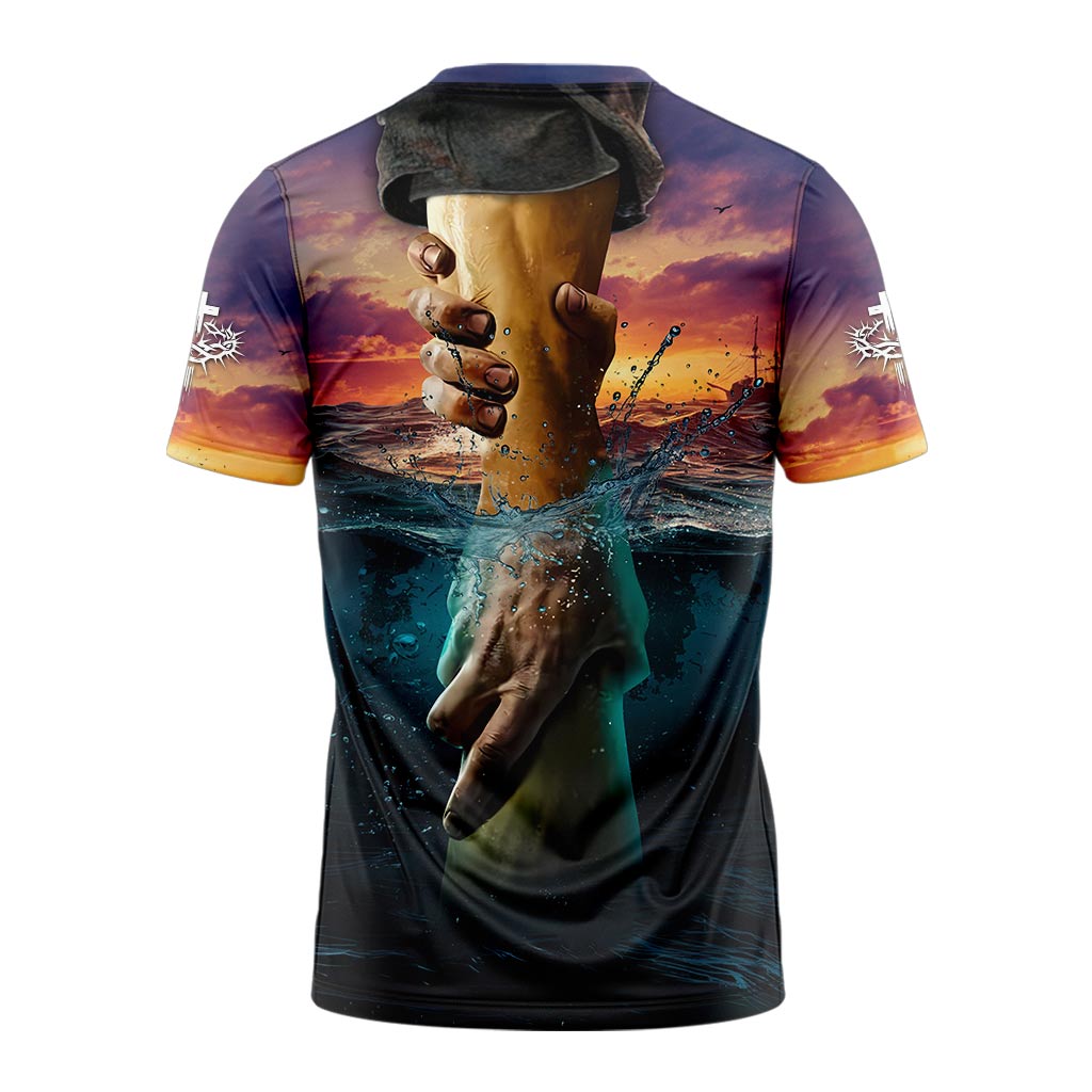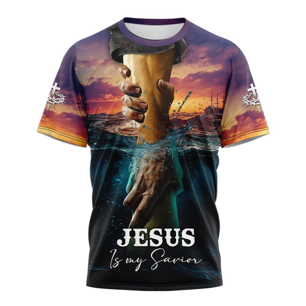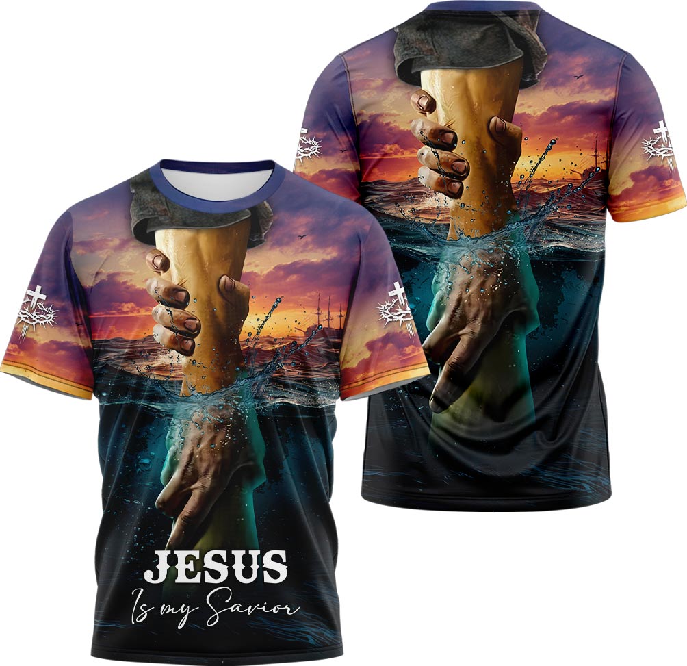 Let your faith shine with the Jesus Is My Savior T-shirt! This powerful design features a breathtaking illustration of Jesus reaching out His hand to save, symbolizing divine rescue and unwavering grace. The stunning sunset and ocean backdrop make this shirt a true testament to faith, hope, and salvation.
