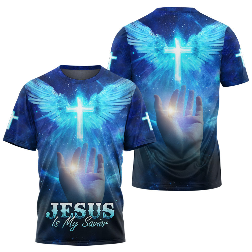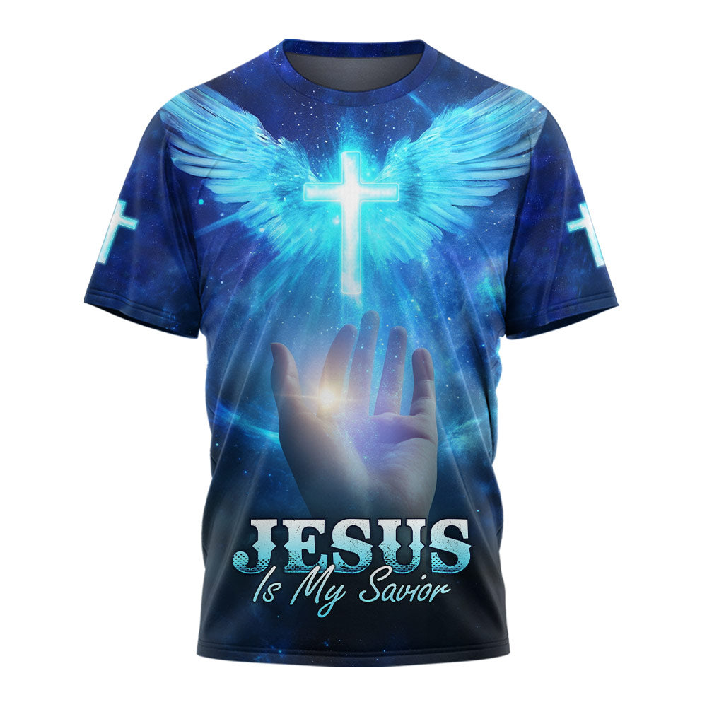 Shine your faith for the world to see with the Jesus Is My Savior T-shirt — a stunning and uplifting design that reflects the light of Christ. Featuring glowing angel wings surrounding a radiant cross and uplifted hands reaching toward heaven, this shirt symbolizes surrender, salvation, and divine connection in a breathtaking celestial setting.
