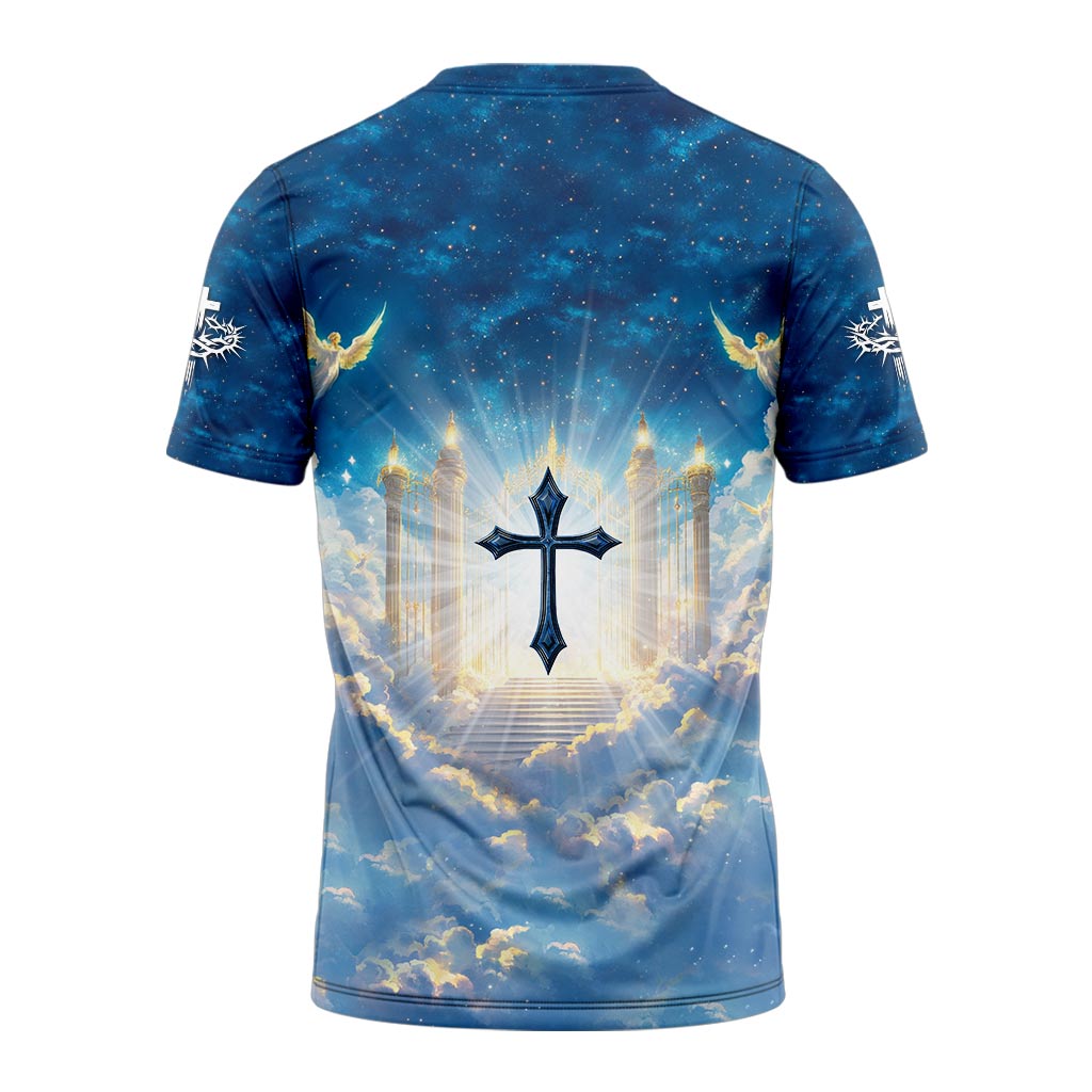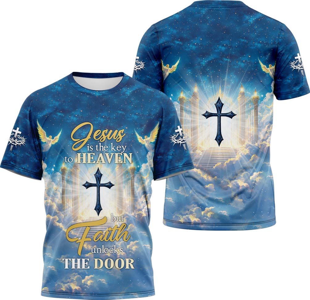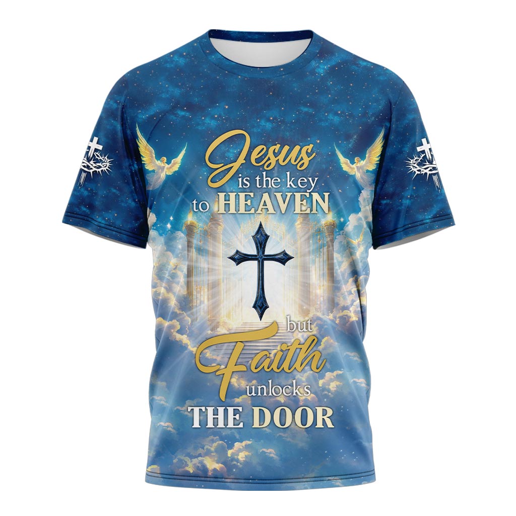 Step into faith with the Jesus Is the Key to Heaven T-shirt! Featuring a stunning celestial design with golden gates, angels, and a shining cross, this shirt beautifully represents the message: Jesus is the key to Heaven, but faith unlocks the door. A perfect way to share your belief and inspire others.