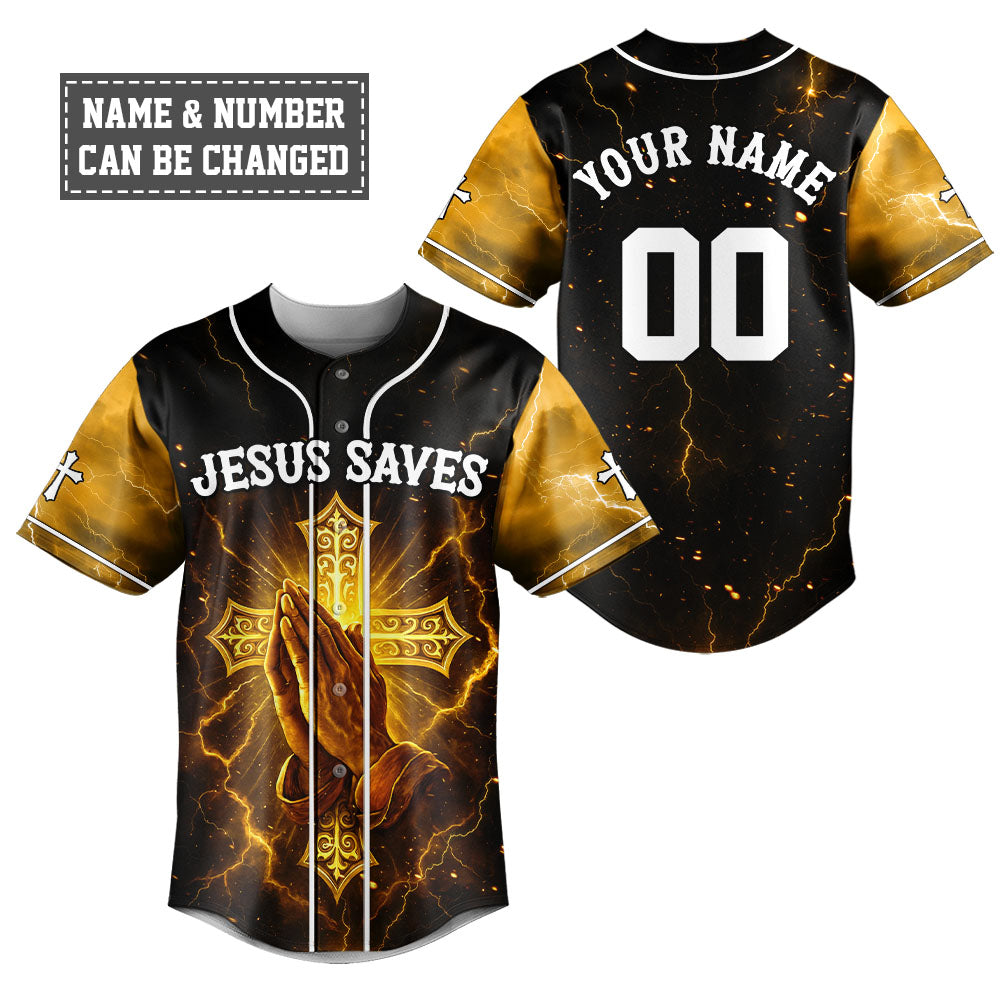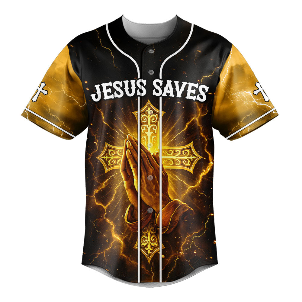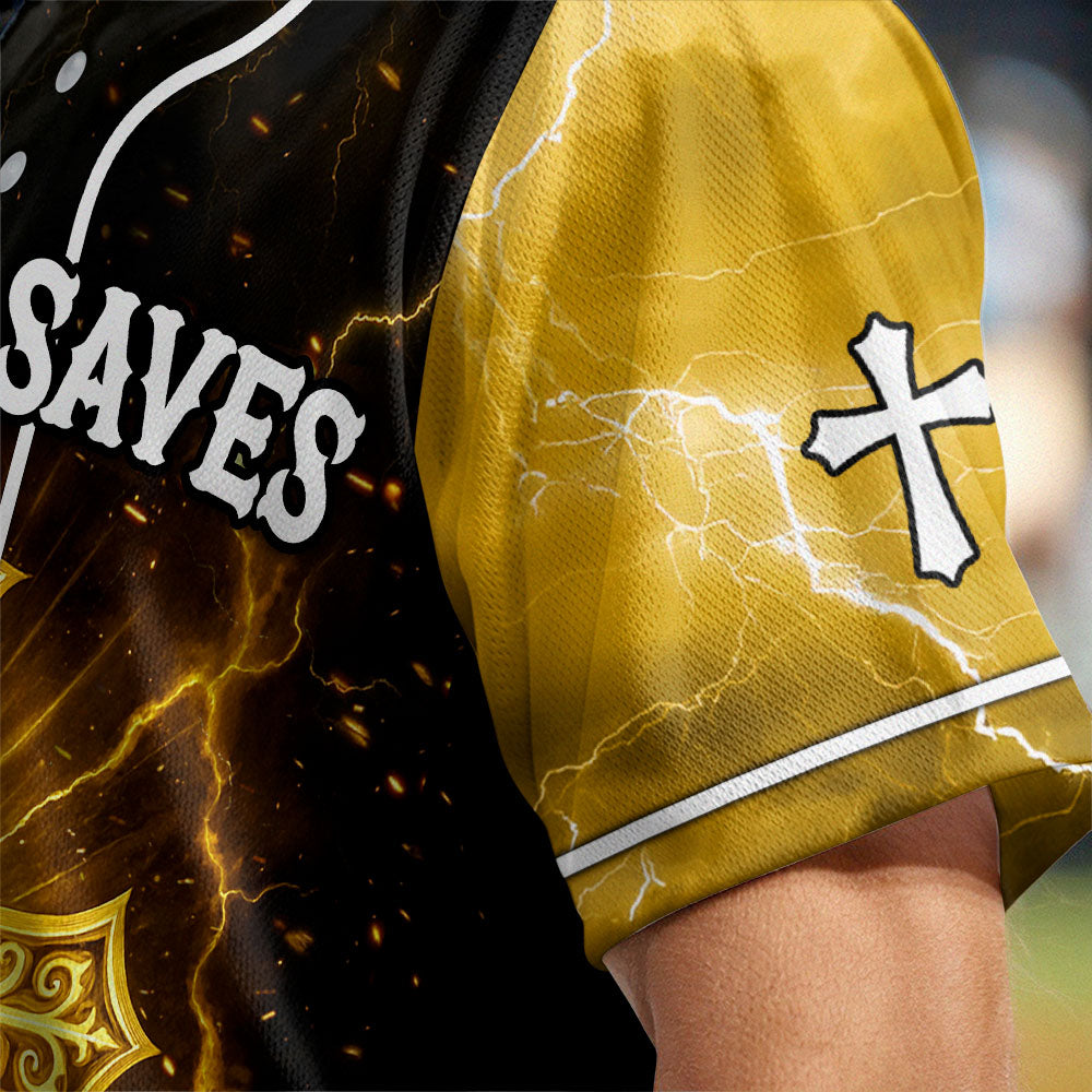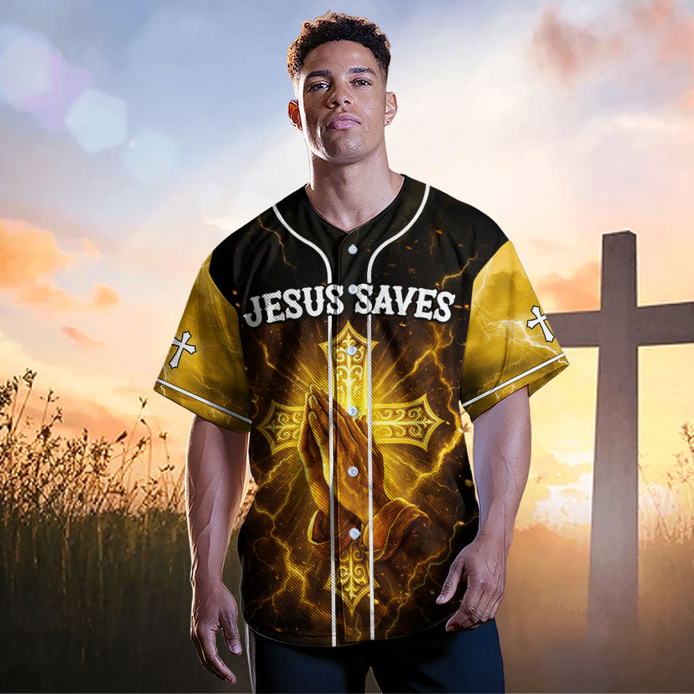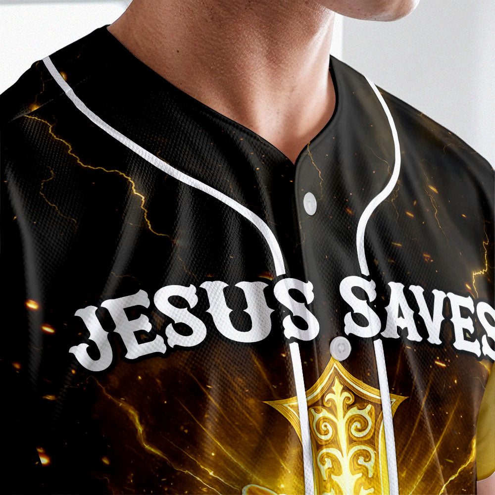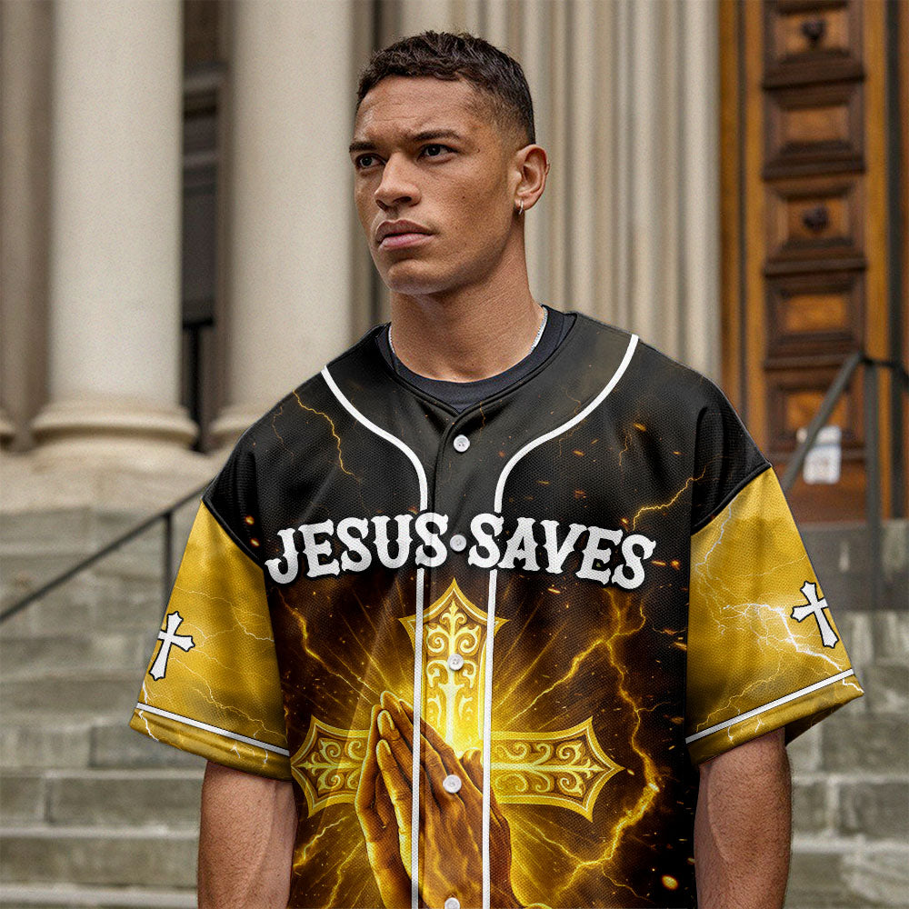 Declare the message that changes everything with the “Jesus Saves” Baseball Jersey — designed for those who live by faith, pray without ceasing, and boldly proclaim the name of the Savior.