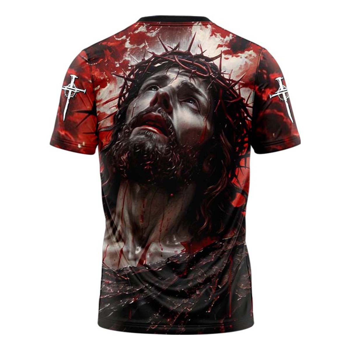 Honor the ultimate sacrifice and wear your faith with bold reverence in the Lord Jesus Christ of Nazareth T-Shirt. Featuring a moving portrait of Jesus wearing the crown of thorns, this design captures the depth of His love and the pain He endured to save us all.