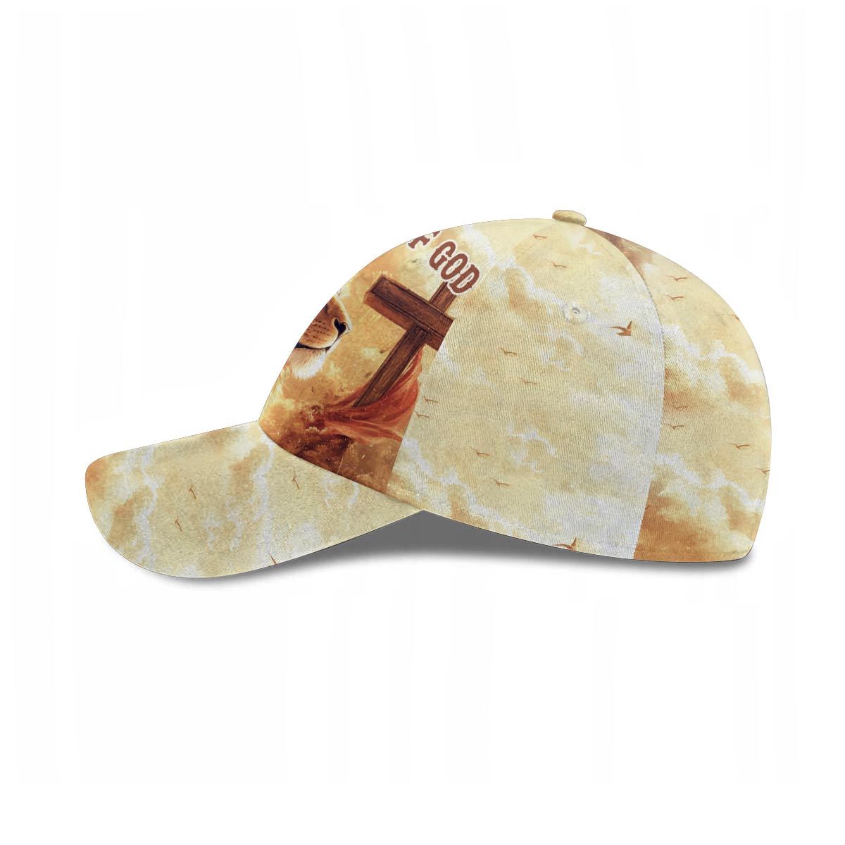 Embrace strength and faith with the Be Strong and Courageous Baseball Cap. This stunning design features a majestic lion gazing at the cross, symbolizing unwavering faith, courage, and divine guidance. The warm golden tones and heavenly backdrop create a powerful reminder to trust in God's plan and face every challenge with boldness.