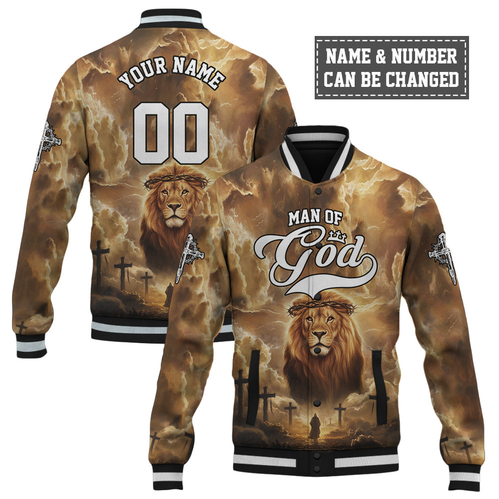 Man of God – Lion’s Courage Baseball Jacket - Custom Name & Number